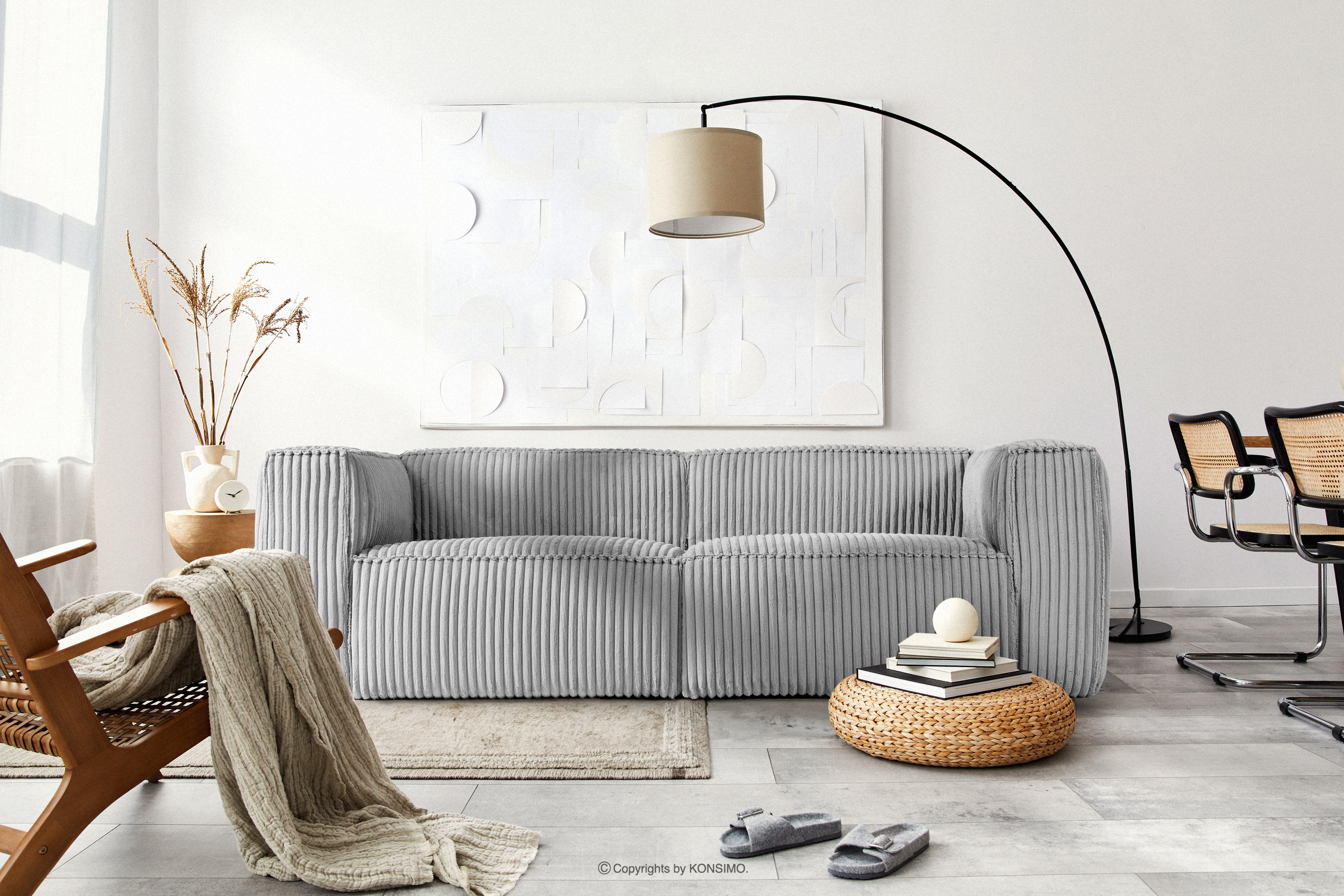 FEROX Objav celú kolekciu Veľká svetlosivá pohovka z manšestrovej tkaniny- farba svetlosivá