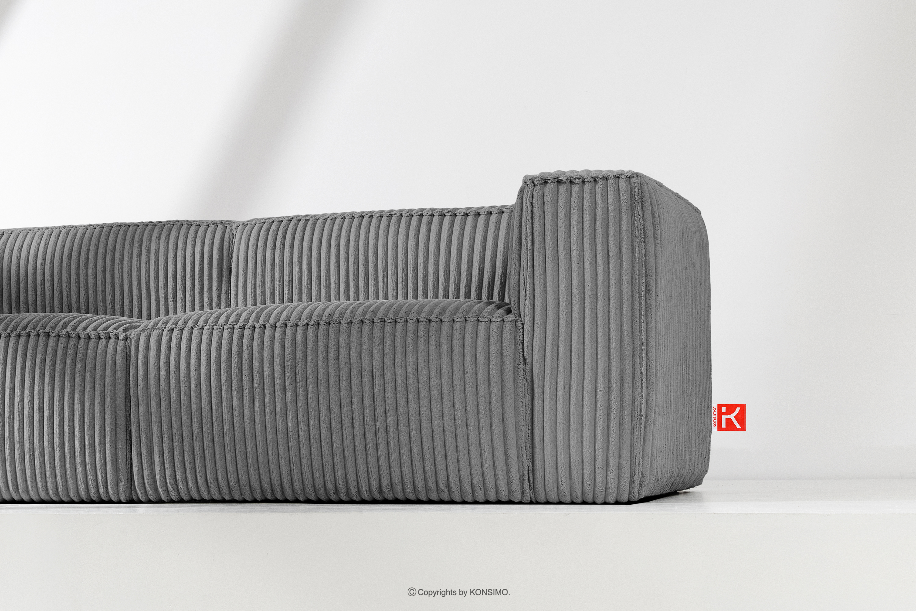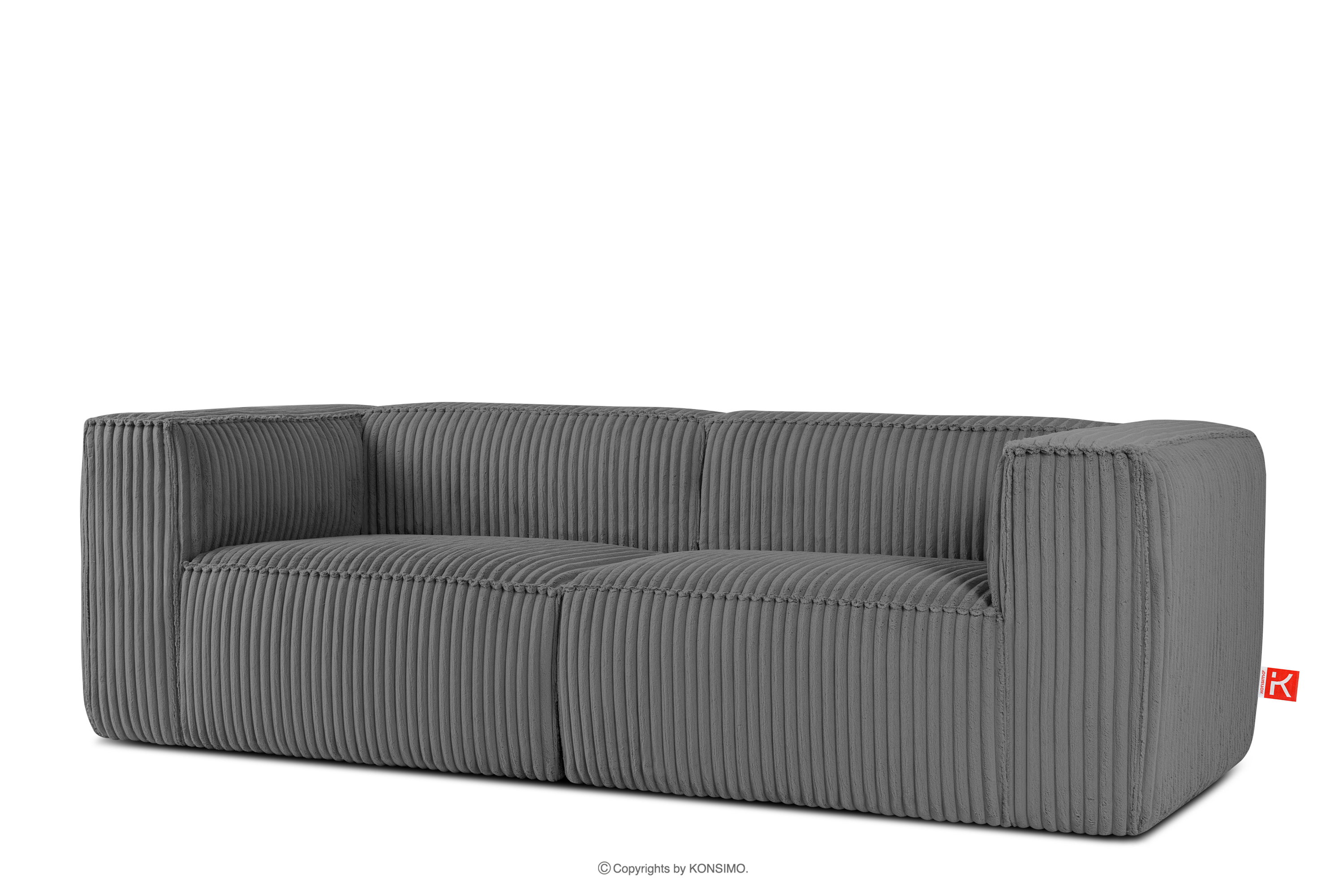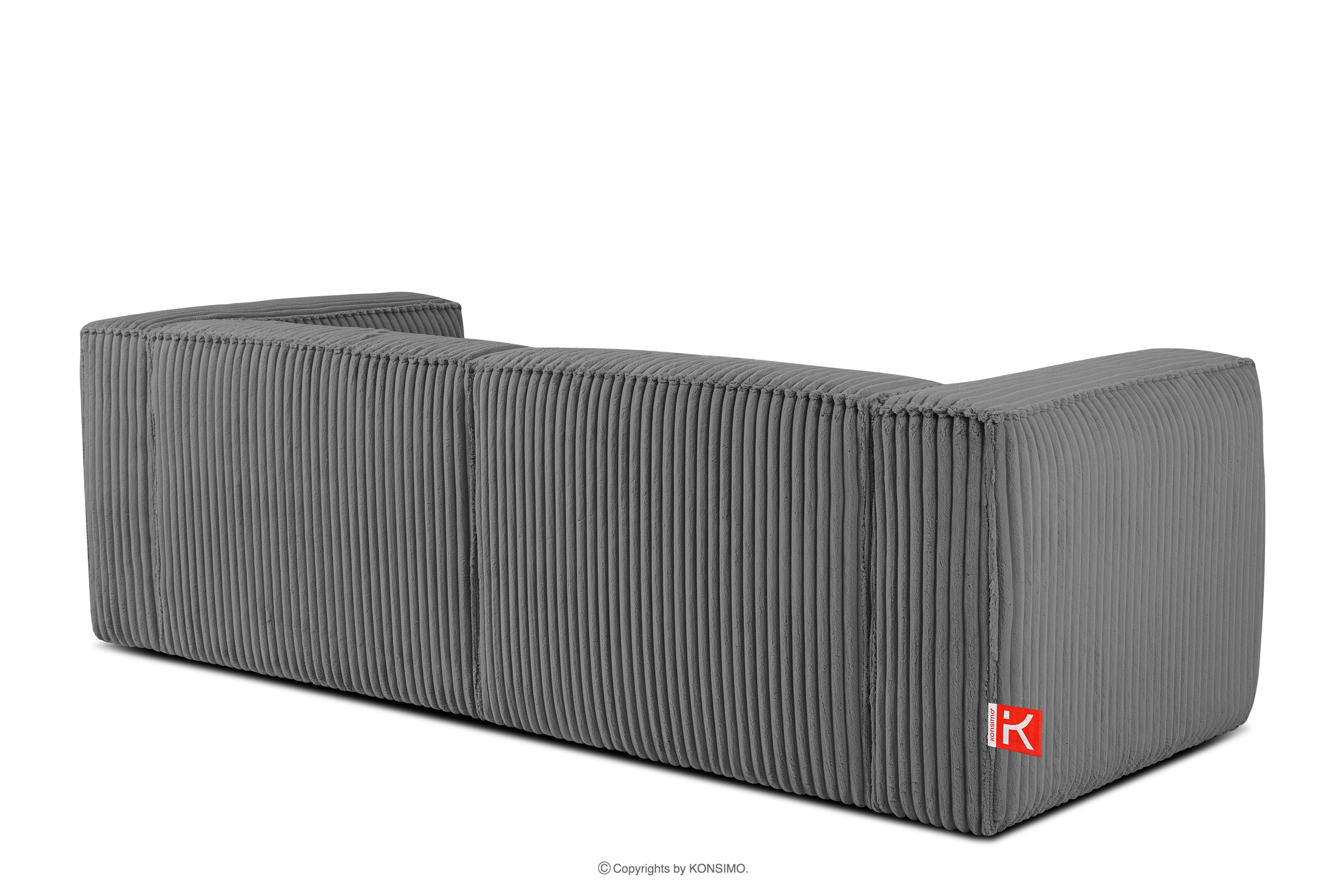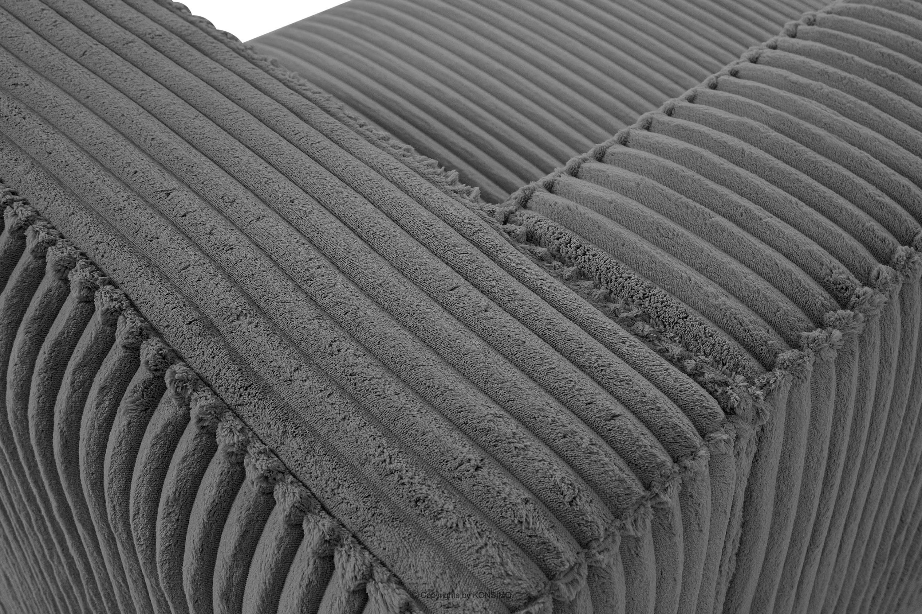 Veľká tmavosivá pohovka z manšestrovej látky s pevnou konštrukciou a výnimočným dizajnom. Rám tohto elegantného kusu nábytku je vyrobený z kombinácie borovicového a bukového dreva, čo zaručuje nielen estetický vzhľad, ale aj odolnosť na dlhé roky. Interiér podporuje pevná konštrukcia na báze drevotrieskových a drevovláknitých dosiek, ktorá zaručuje stabilitu a komfort pri používaní.