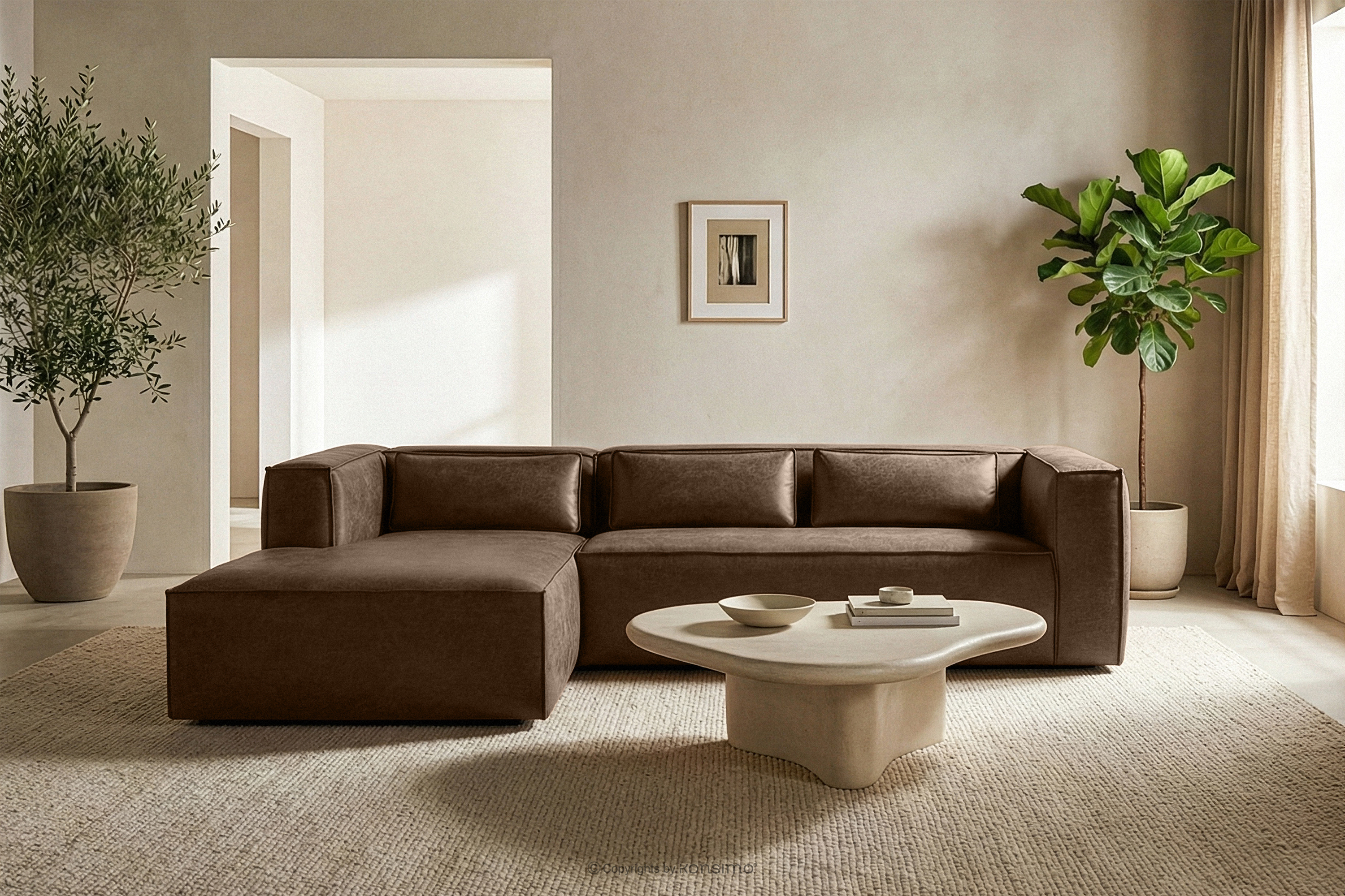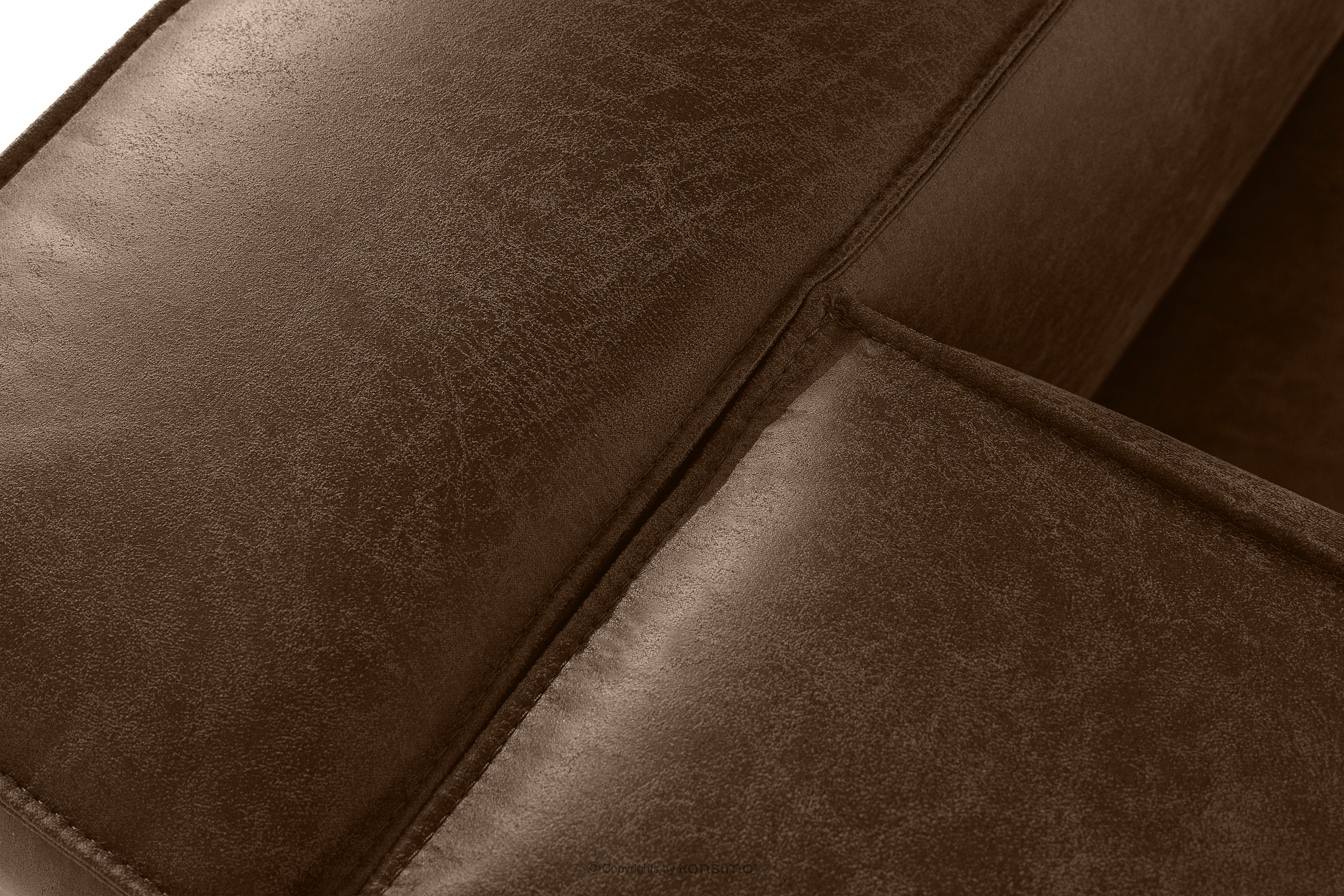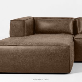 Rohová pohovka v štýle loft látka podobná koži tmavohnedá ľavá s pevnou konštrukciou a jedinečným dizajnom. Rám tohto elegantného kusu nábytku je vyrobený z kombinácie borovicového a bukového dreva, čo zaručuje nielen estetický vzhľad, ale aj odolnosť na dlhé roky. Interiér je podopretý pevnou konštrukciou na báze dreva, drevotriesky a drevovláknitej dosky, čo zaručuje stabilitu a pohodlie pri používaní.