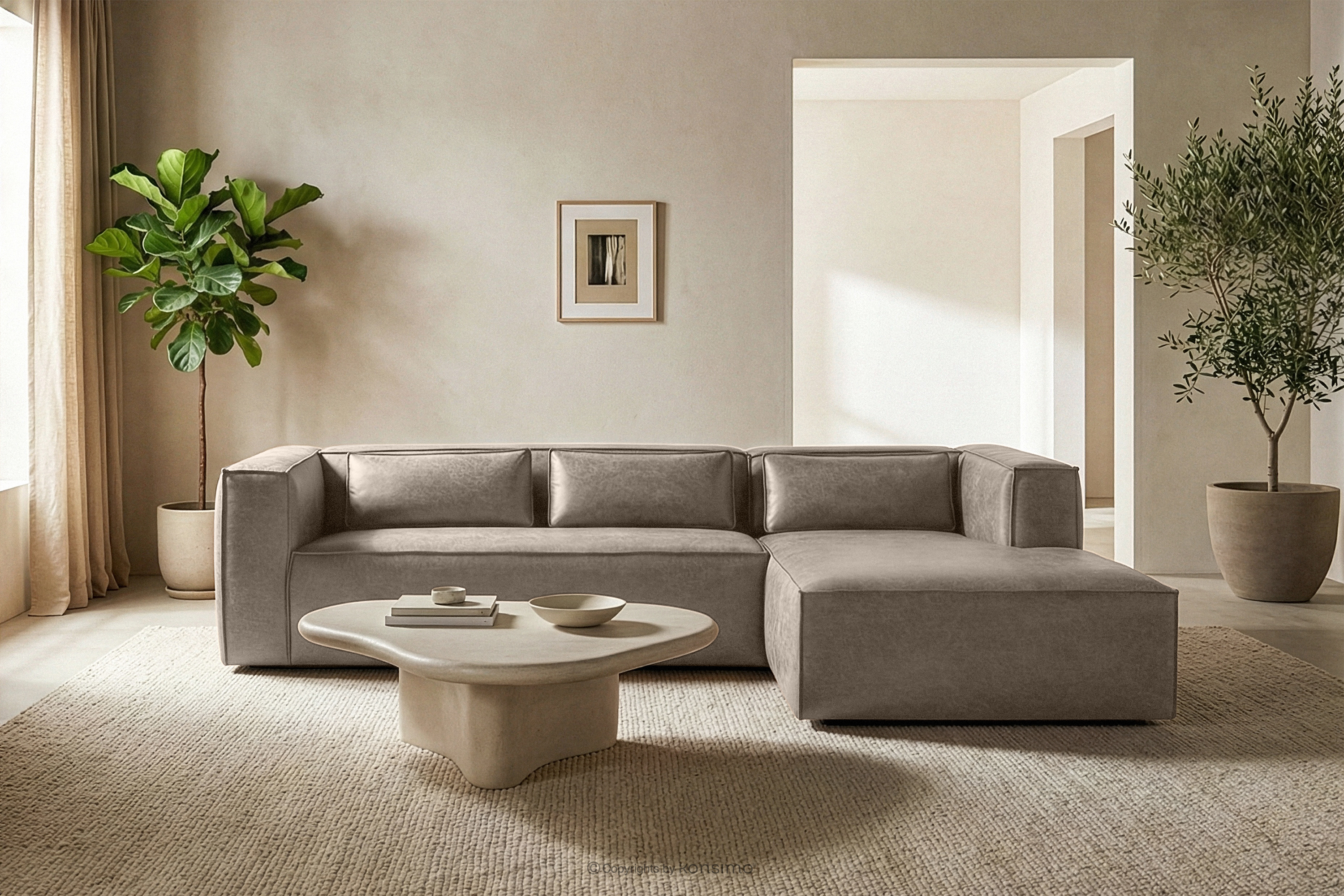 Rohová pohovka v štýle loft látka podobná koži svetlo sivá pravá s pevnou konštrukciou a jedinečným dizajnom. Rám tohto elegantného kusu nábytku je vyrobený z kombinácie borovicového a bukového dreva, čo zaručuje nielen estetický vzhľad, ale aj odolnosť na dlhé roky. Interiér je podopretý pevnou konštrukciou na báze dreva, drevotriesky a drevovláknitej dosky, čo zaručuje stabilitu a pohodlie pri používaní.