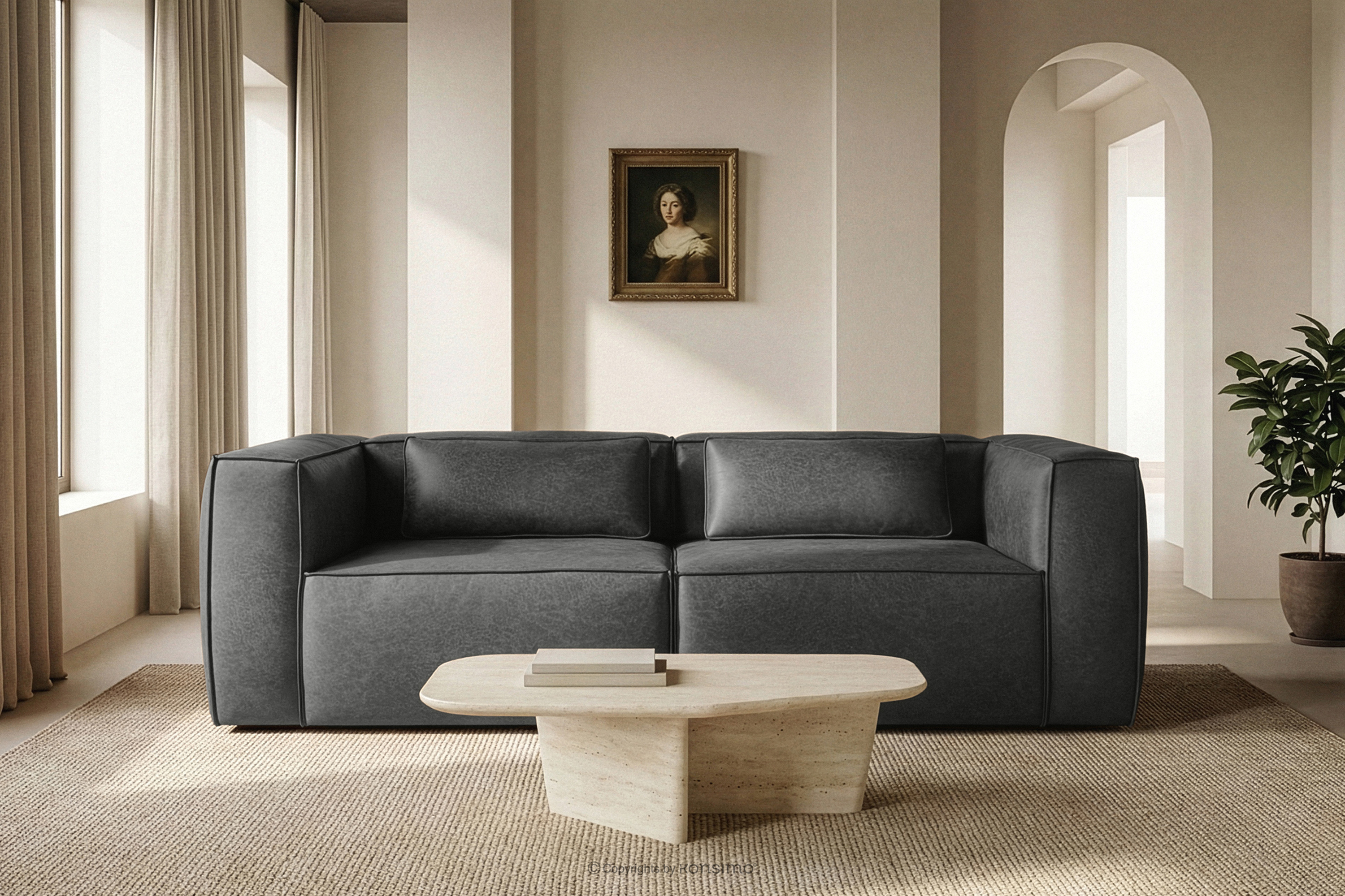 FEROX Objav celú kolekciu Trojmiestna pohovka v štýle loft kožená látka tmavo sivá- farba tmavo šedá