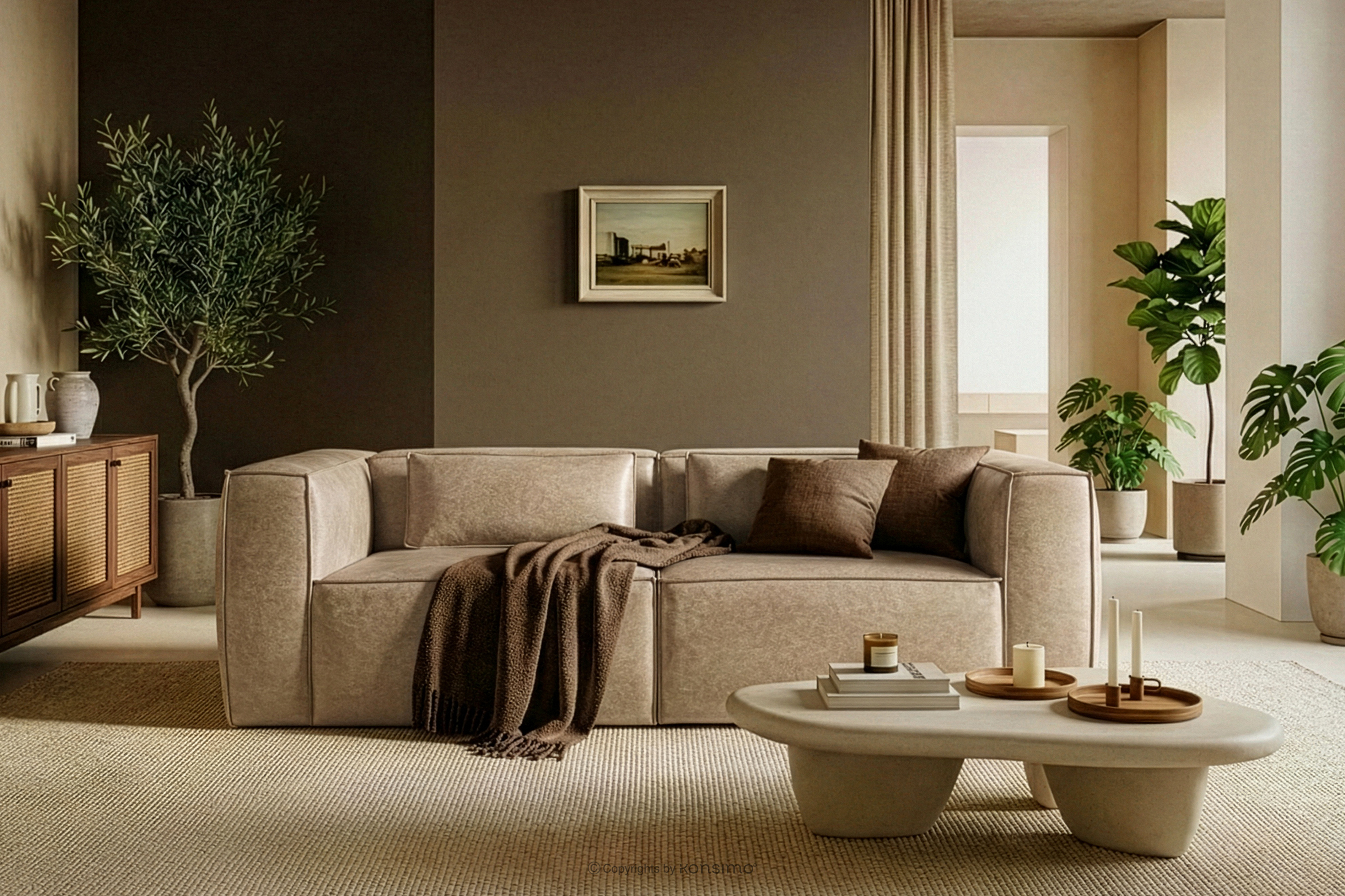Trojmiestna pohovka v štýle loft kožená látka béžová s pevnou konštrukciou a jedinečným dizajnom. Rám tohto elegantného kusu nábytku je vyrobený z kombinácie borovicového a bukového dreva, čo zaručuje nielen estetický vzhľad, ale aj odolnosť na dlhé roky. Interiér je podopretý pevnou konštrukciou na báze dreva, drevotriesky a drevovláknitej dosky, čo zaručuje stabilitu a pohodlie pri používaní.