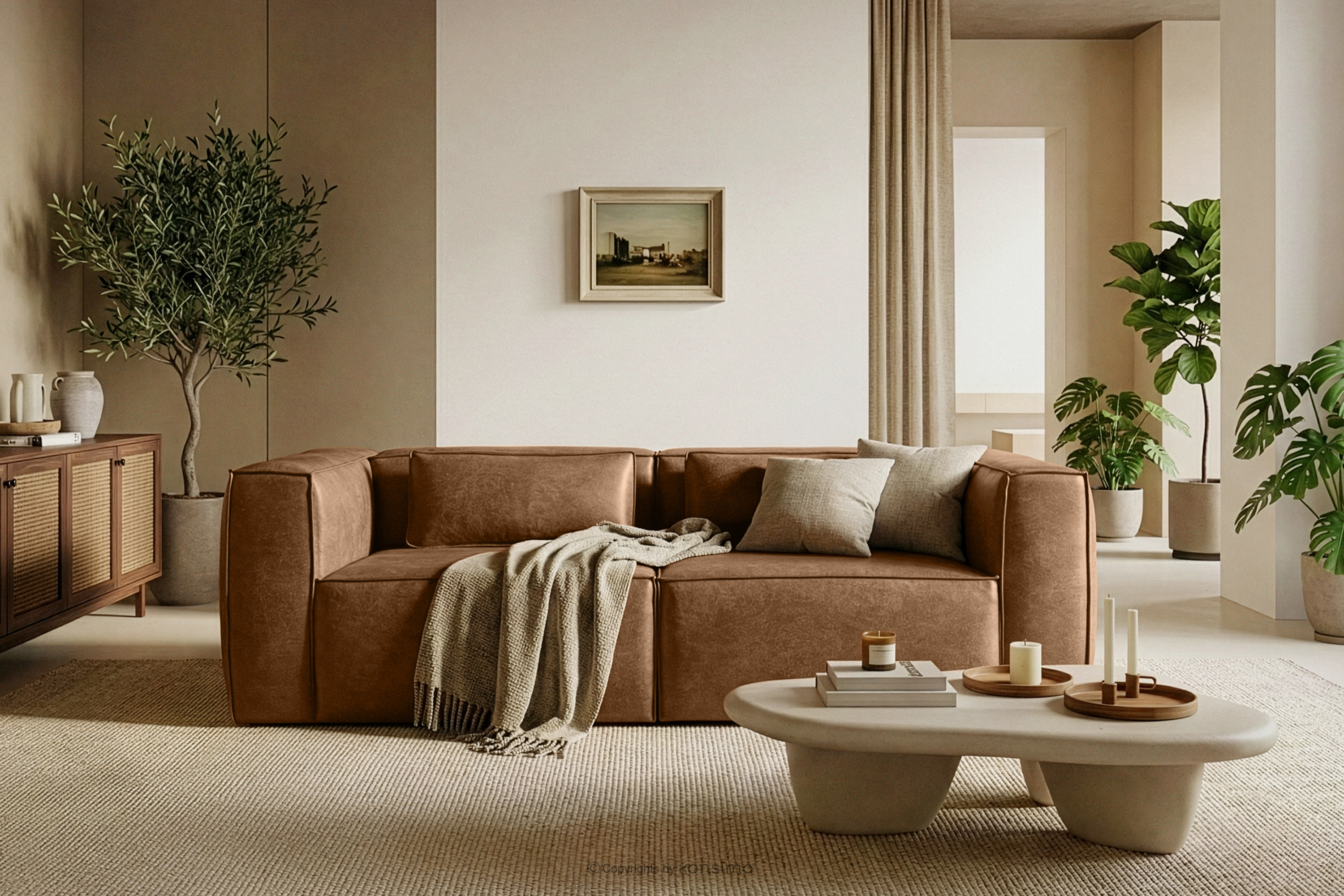 Trojmiestna pohovka v štýle loft látka podobná koži hnedá s pevnou konštrukciou a jedinečným dizajnom. Rám tohto elegantného kusu nábytku je vyrobený z kombinácie borovicového a bukového dreva, čo zaručuje nielen estetický vzhľad, ale aj odolnosť na dlhé roky. Interiér je podopretý pevnou konštrukciou na báze dreva, drevotriesky a drevovláknitej dosky, čo zaručuje stabilitu a pohodlie pri používaní.