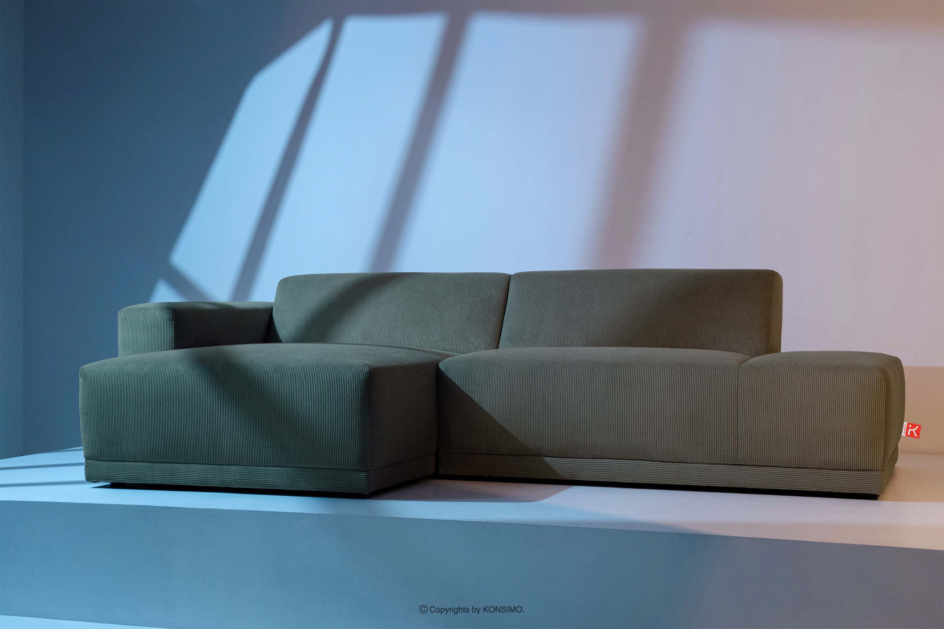 MUDI Objav celú kolekciu Rohová pohovka boho štýl khaki vľavo- farba khaki
