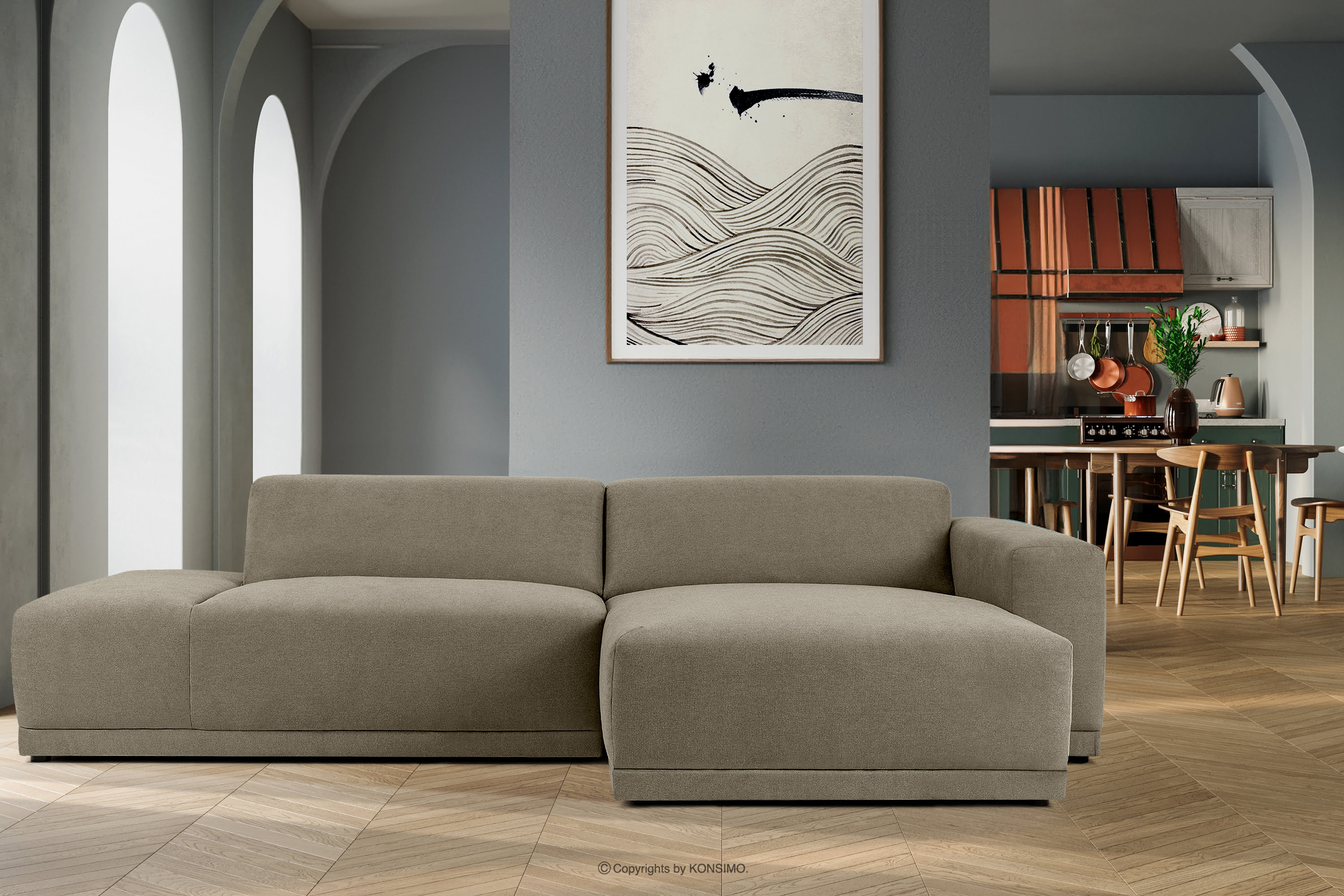 produktu Moderný roh obývacej izby svetlo béžová tkaná látka tkaná vpravo