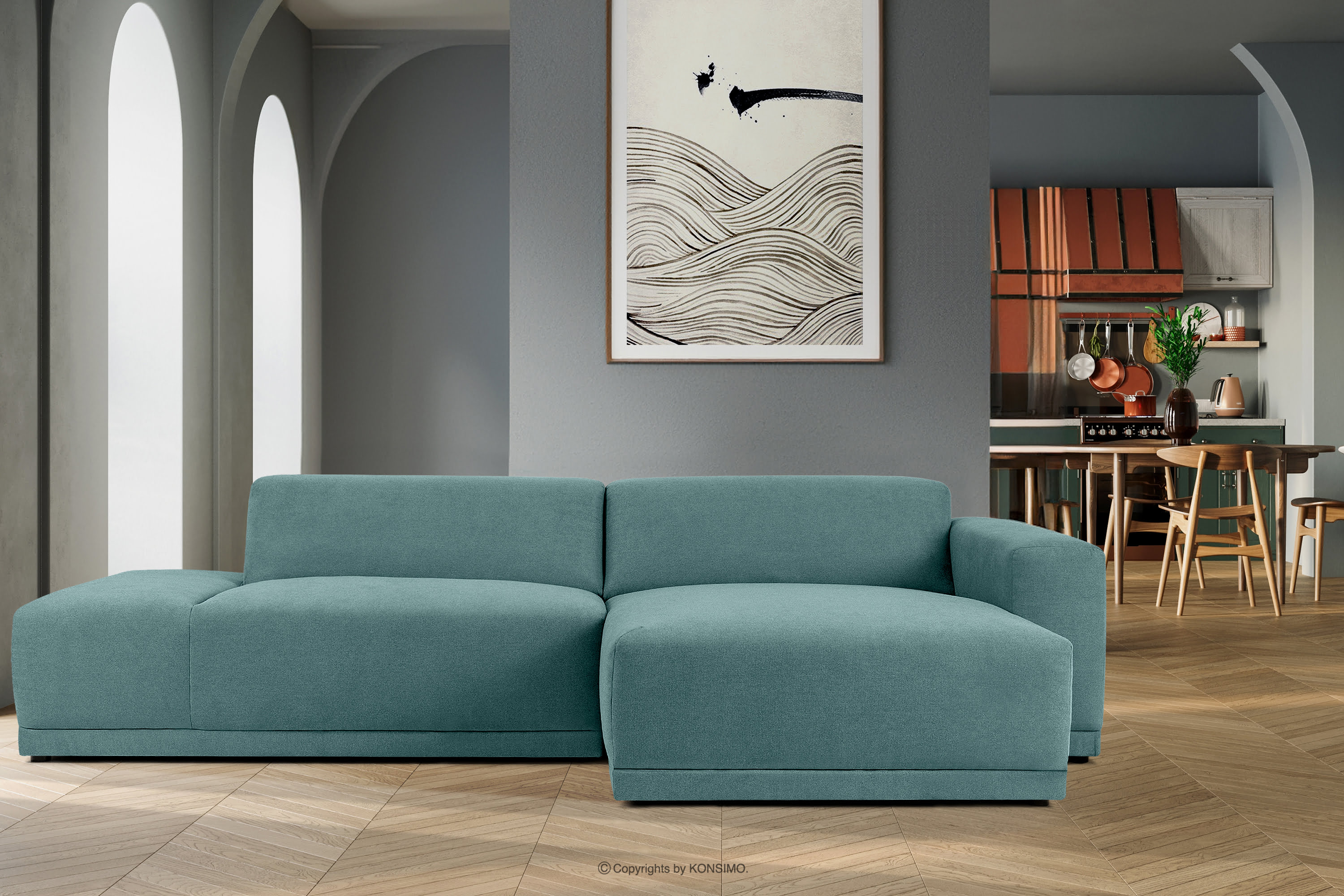 MUDI Objav celú kolekciu Moderný roh obývacej izby modrá tkaná látka vpravo- farba modrá