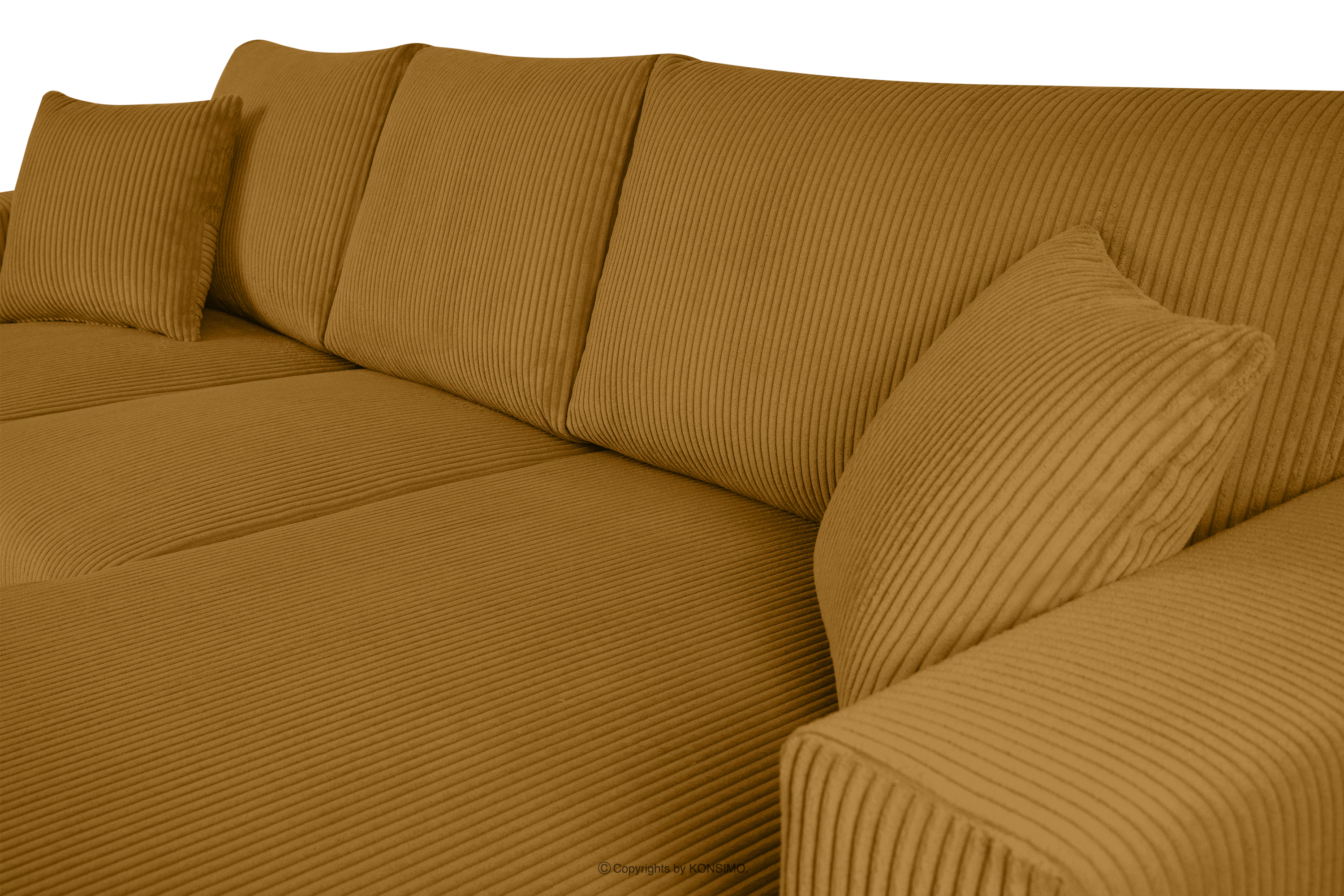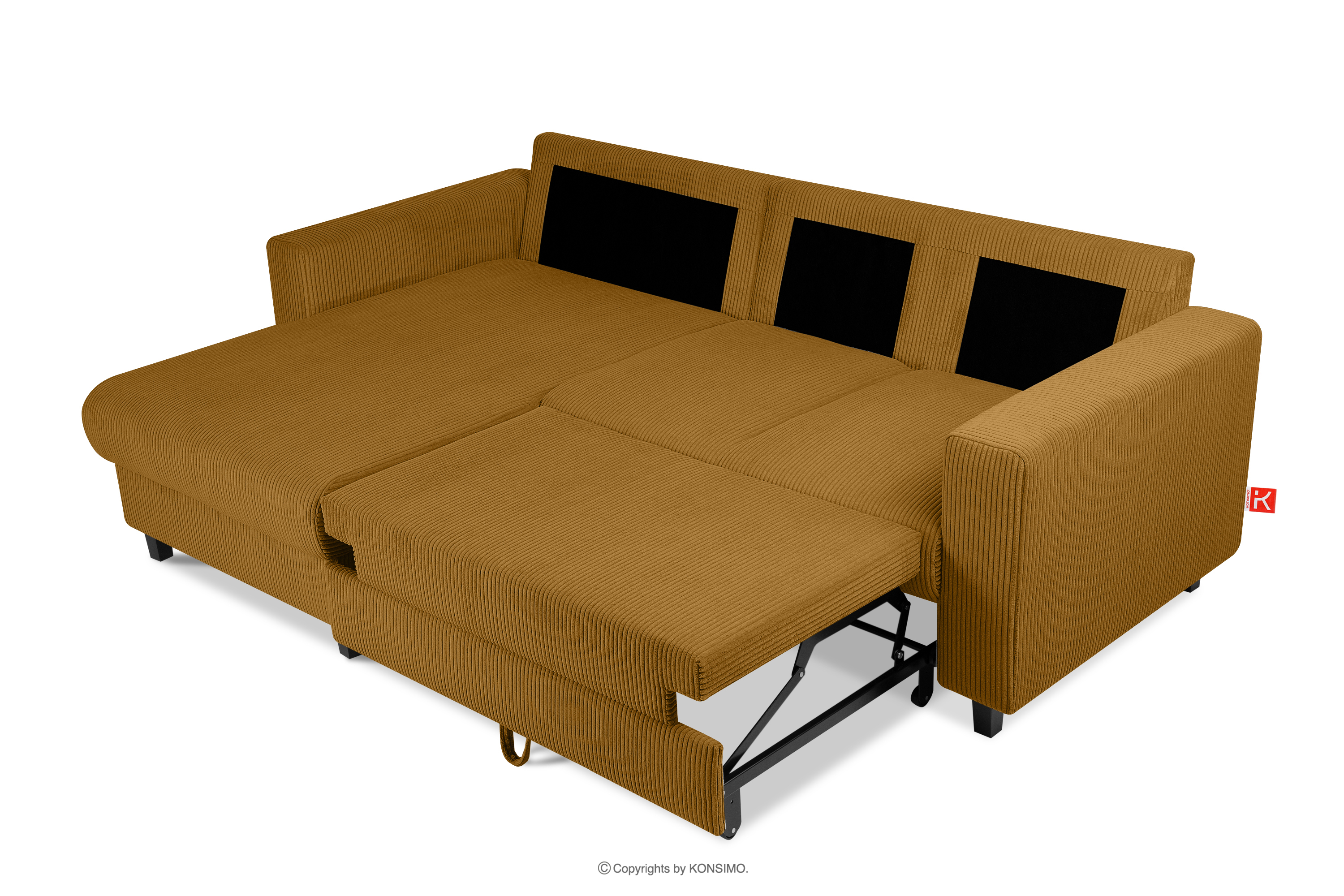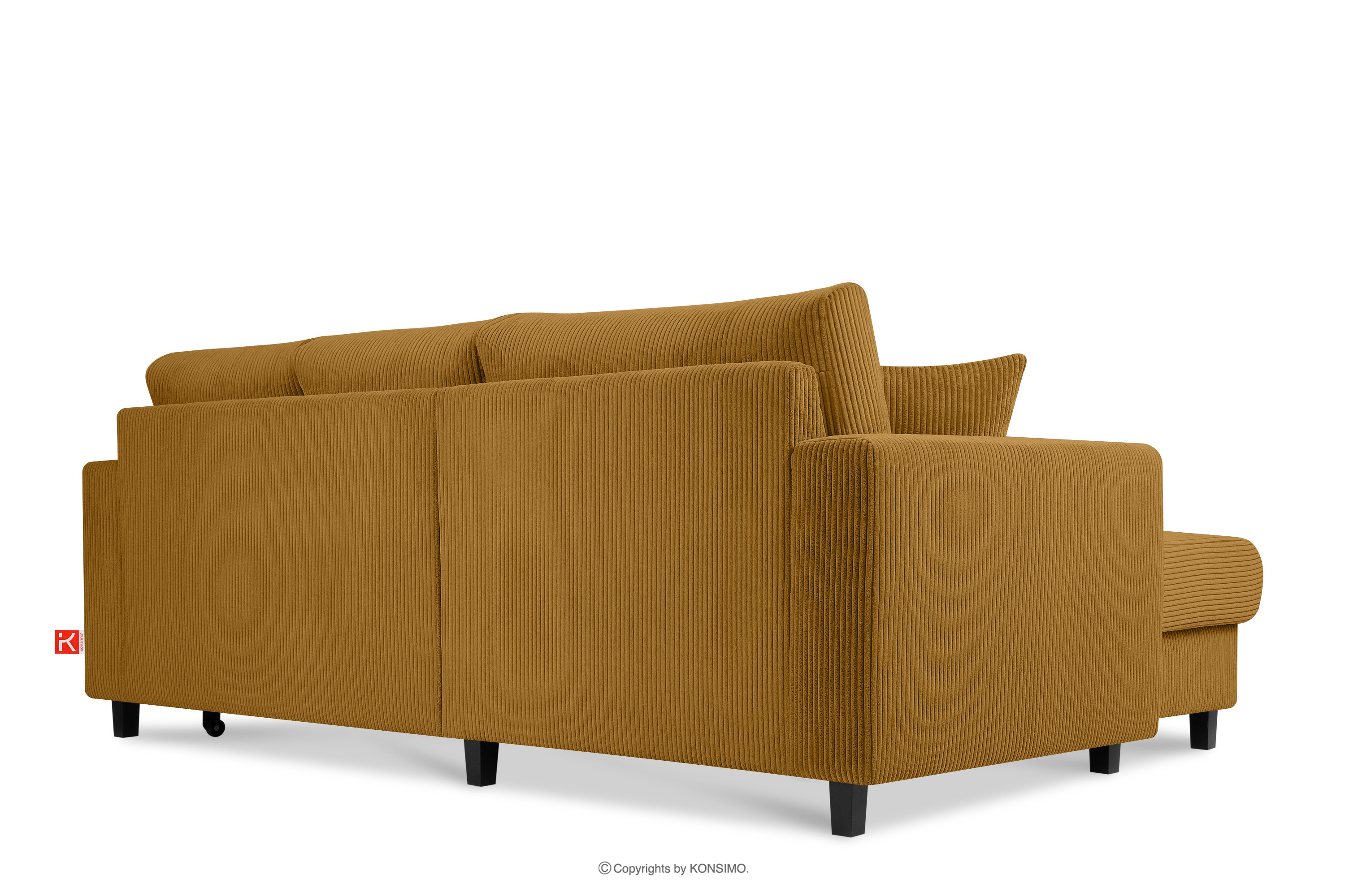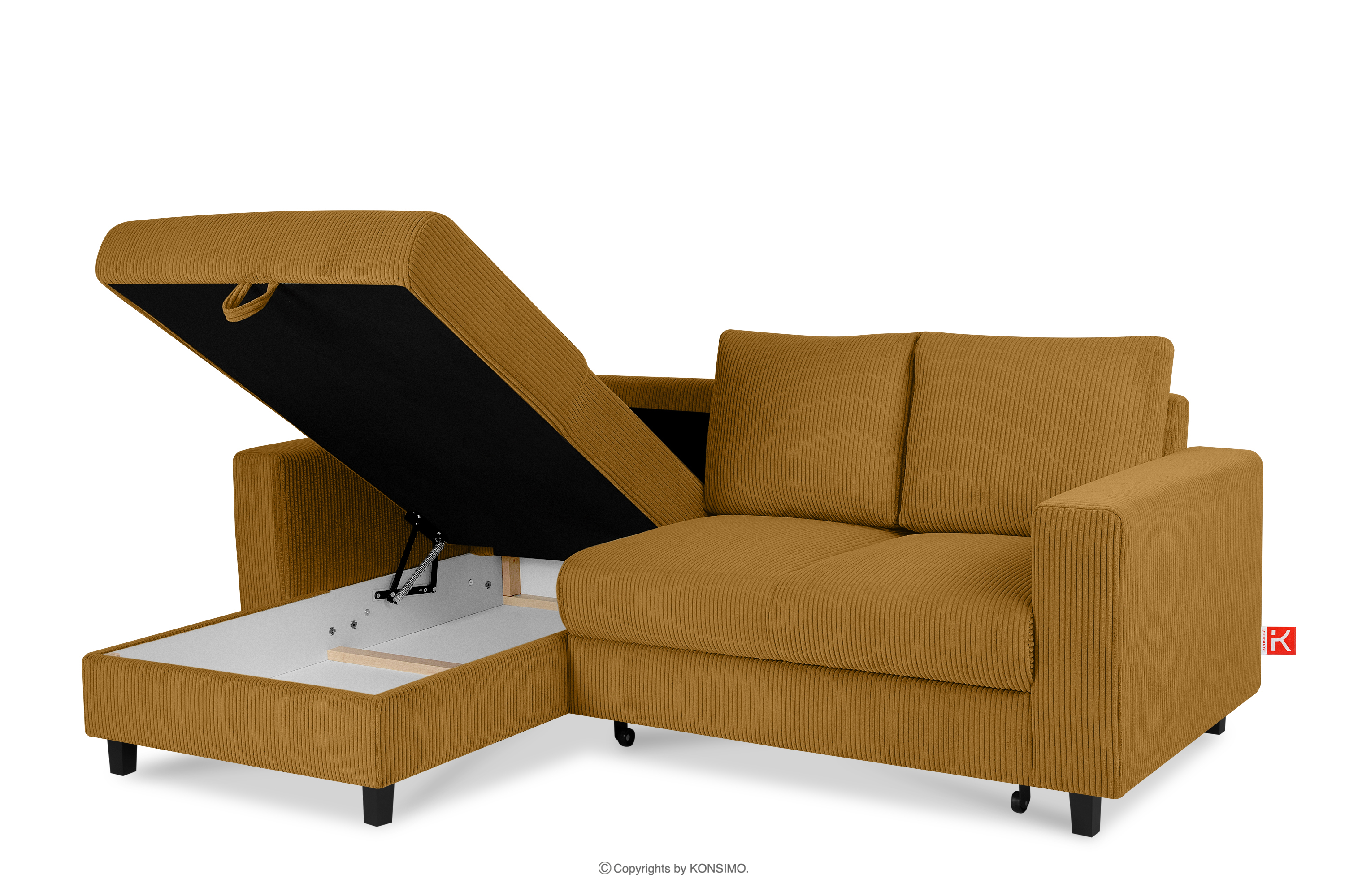 EGRET Objav celú kolekciu Rozkladacia rohová pohovka na manšestrových nohách žltá vľavo- farba žltá
