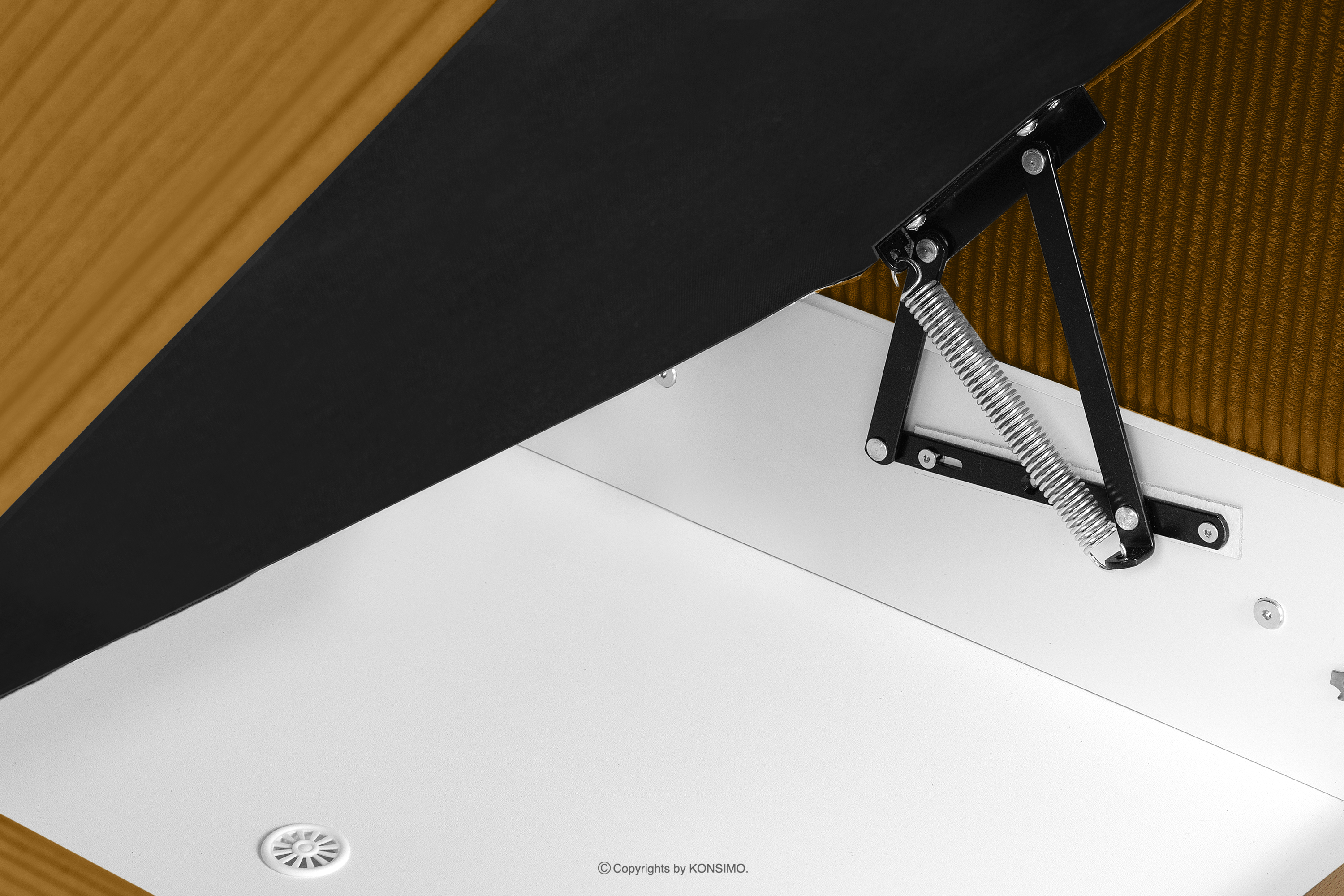 Rozkladacia rohová pohovka na nožičkách v manšestrovej žltej farbe vľavo je jedinečnou kombináciou funkčnosti, pohodlia a elegancie. Rám z borovicového a bukového dreva zaručuje odolnosť a pevnosť konštrukcie, vďaka čomu je nábytok ideálny na každodenné používanie. Materiály použité pri výrobe, ako sú drevotrieskové a drevovláknité dosky, boli starostlivo vybrané, aby sa zabezpečila ich dlhodobá použiteľnosť.