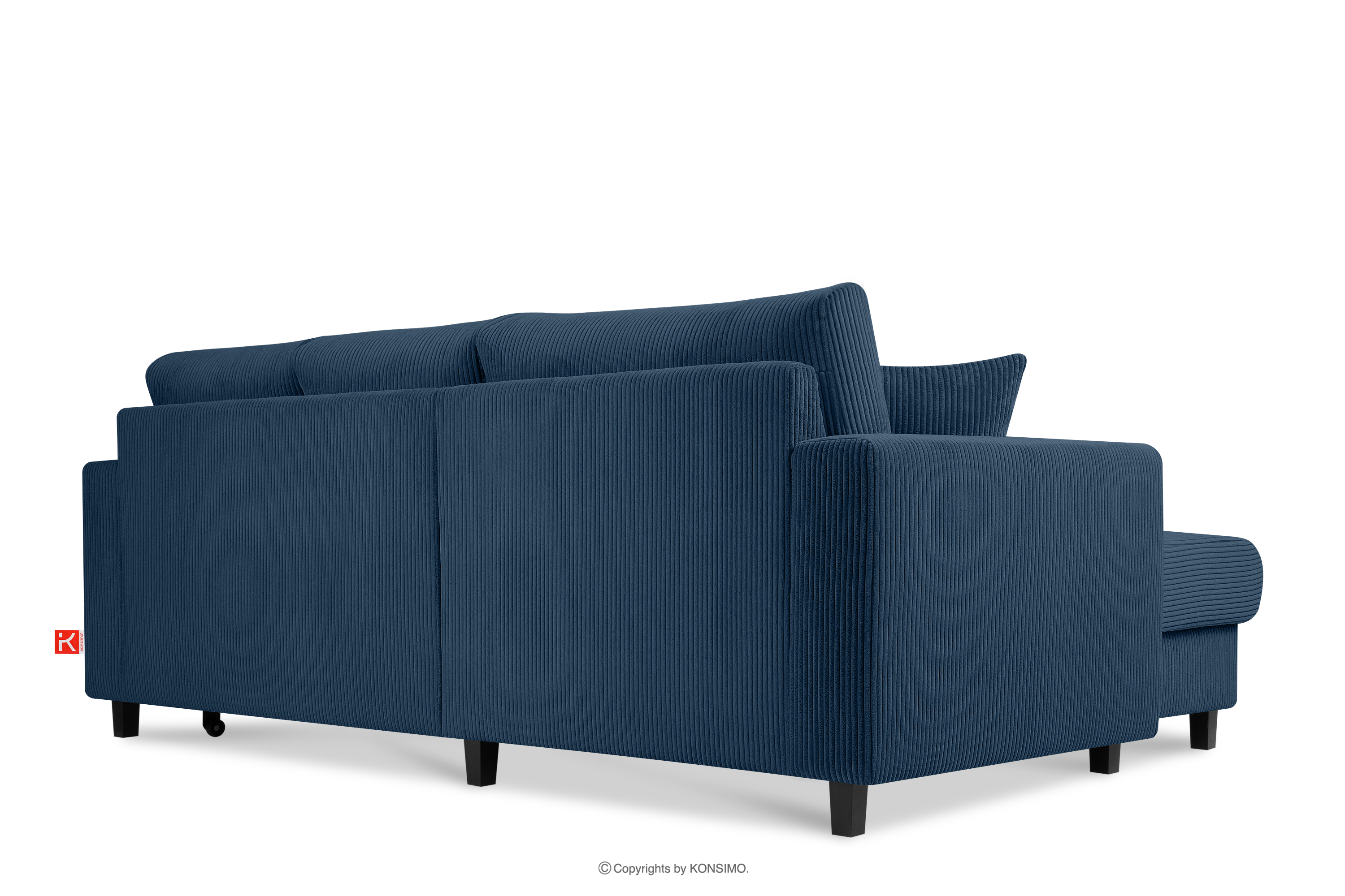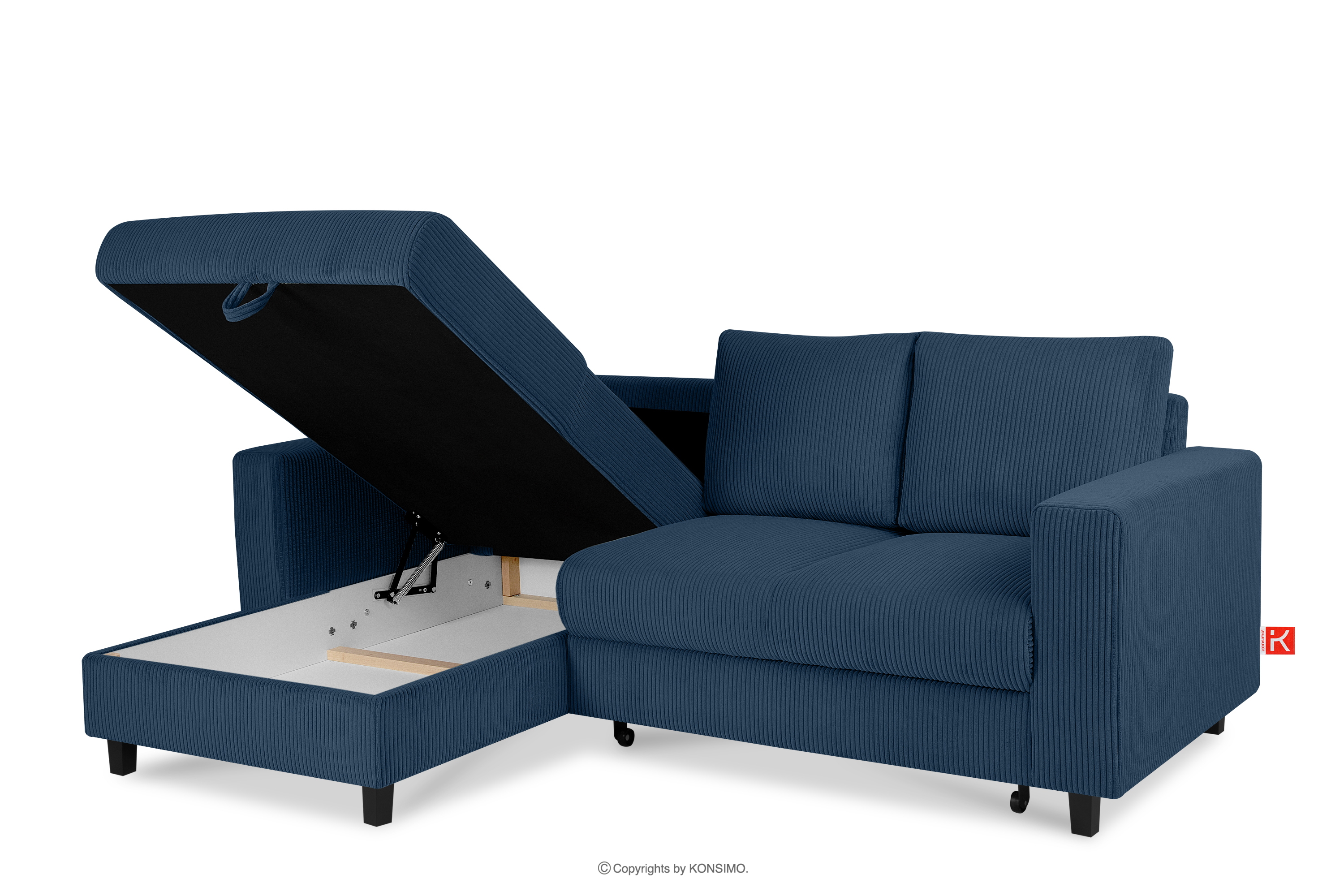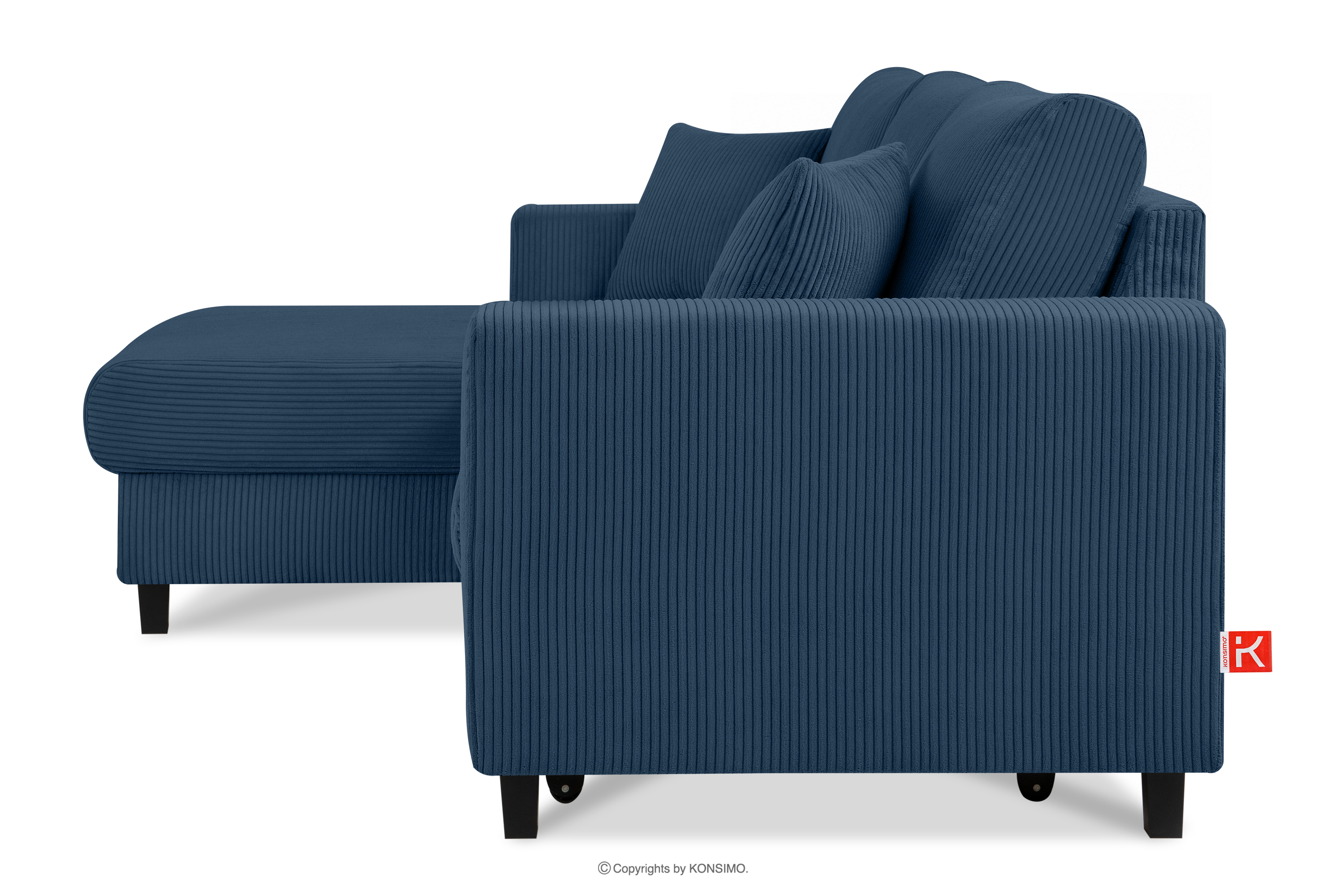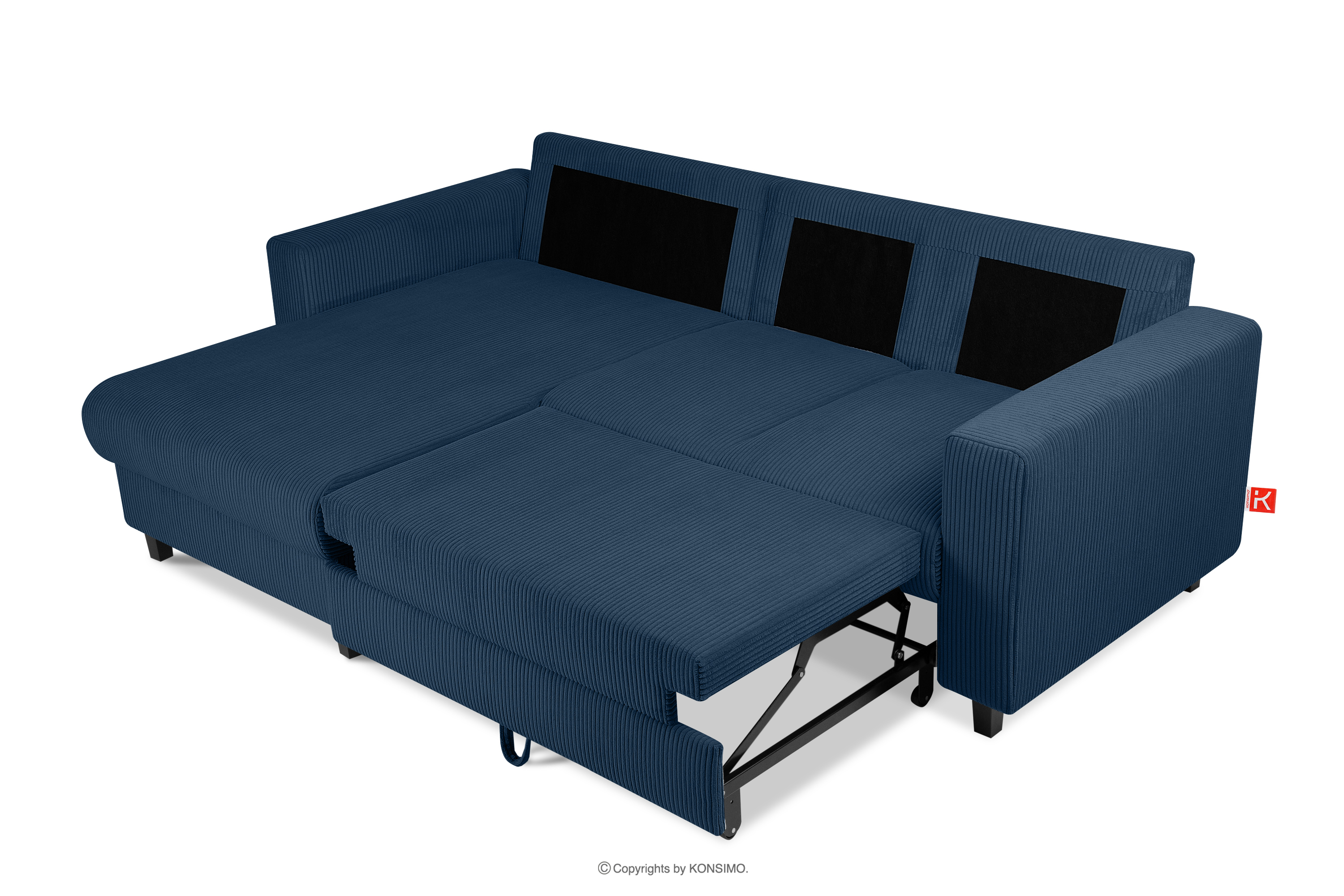EGRET Manšestrová rozkladacia rohová pohovka na nožičkách tmavomodrá vľavo