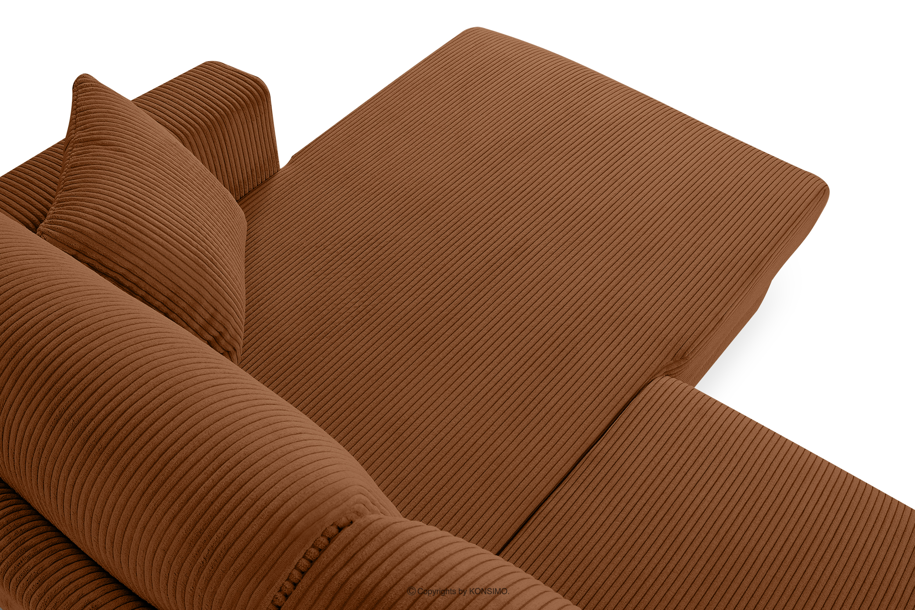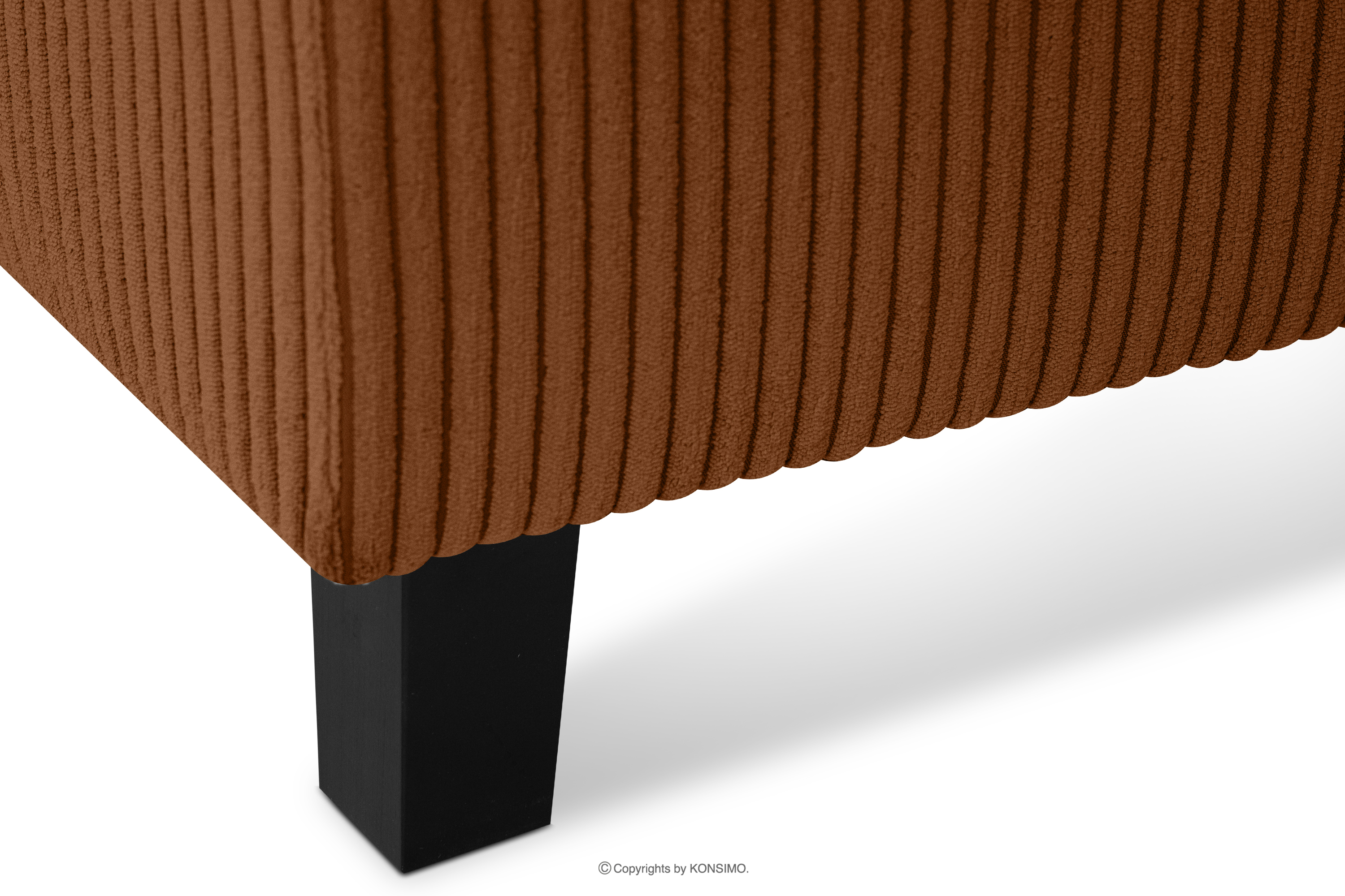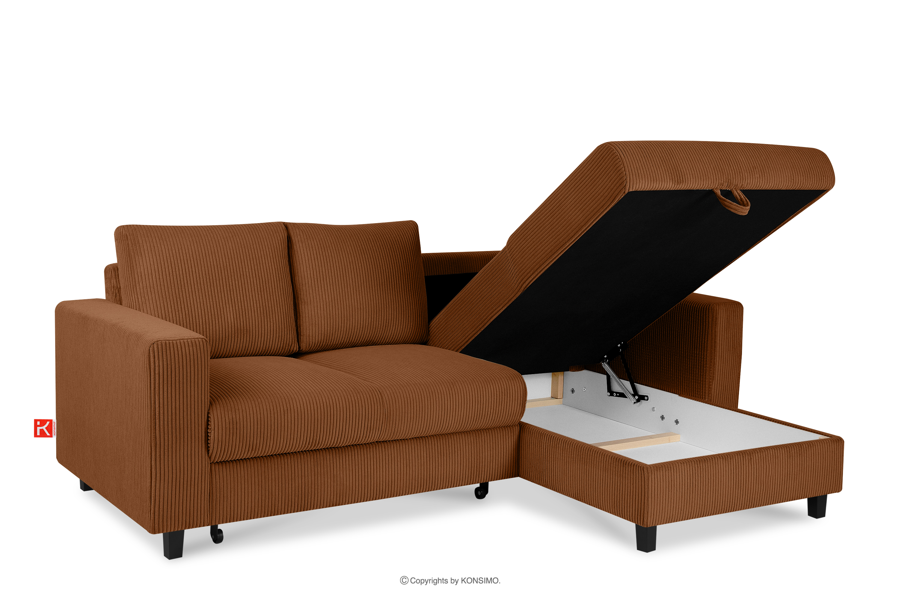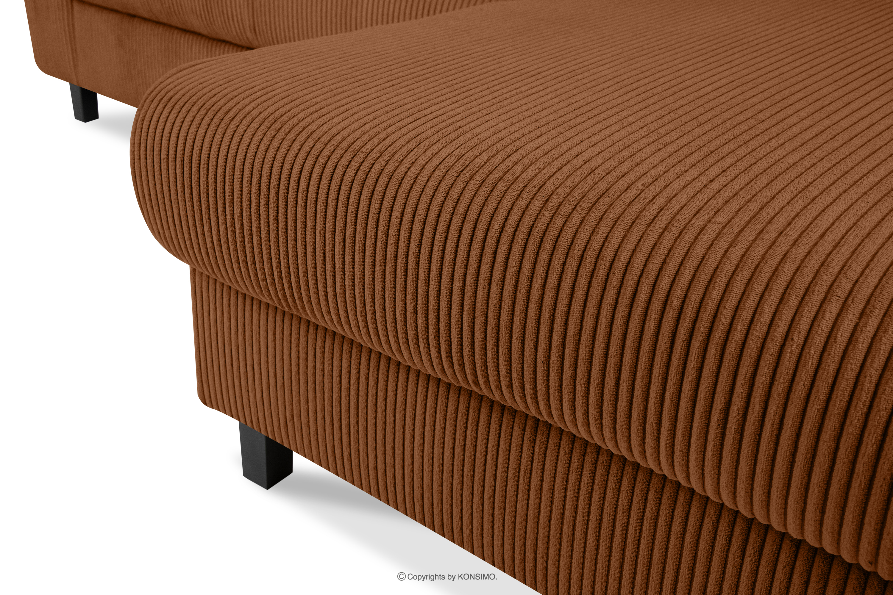 Rozkladacia rohová pohovka na manšestrových nožičkách v rude vpravo je jedinečnou kombináciou funkčnosti, pohodlia a elegancie. Rám z borovicového a bukového dreva zaručuje odolnosť a pevnosť konštrukcie, vďaka čomu je nábytok ideálny na každodenné používanie. Materiály použité pri výrobe, ako sú drevotrieskové a drevovláknité dosky, boli starostlivo vybrané, aby sa zabezpečila ich dlhodobá použiteľnosť.