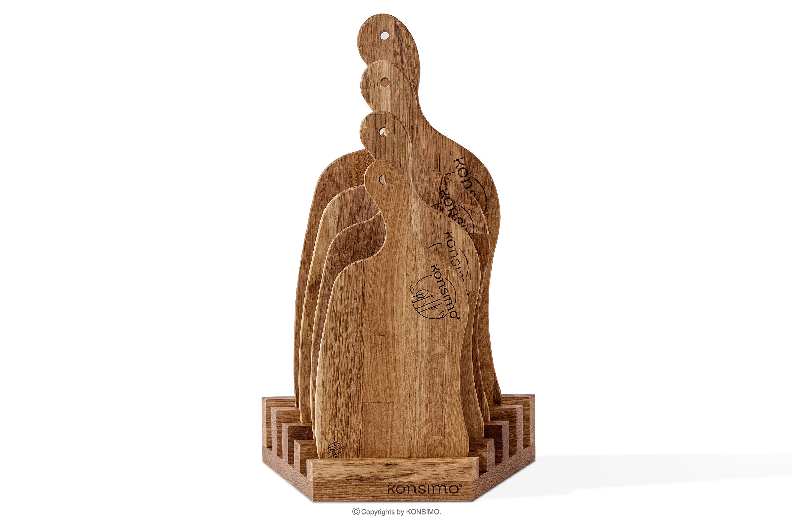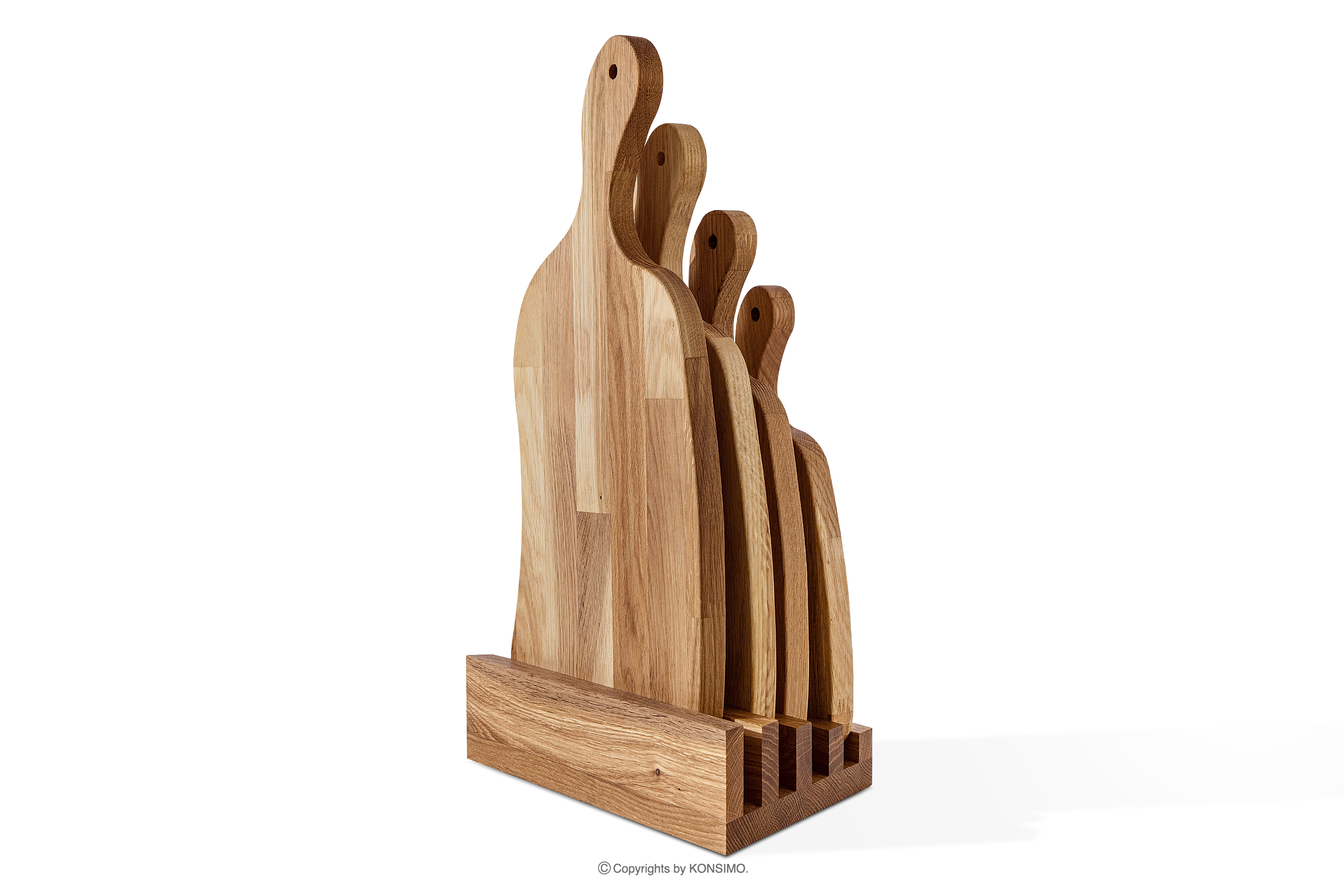 Súprava 4 kuchynských dosiek s dubovým stojanom je nielen funkčným kusom kuchynského vybavenia, ale aj štýlovým doplnkom na servírovanie občerstvenia alebo pokrmov. Je vyrobená z najkvalitnejšieho dubového dreva, takže nielenže vyzerá elegantne, ale poskytuje aj odolnosť a pevnosť. Vďaka hrúbke 2 cm je robustný a stabilný pri krájaní rôznych produktov. Olejované dubové drevo dodáva doske prirodzený, teplý vzhľad, ktorý dokonale zapadne do každého interiéru.
