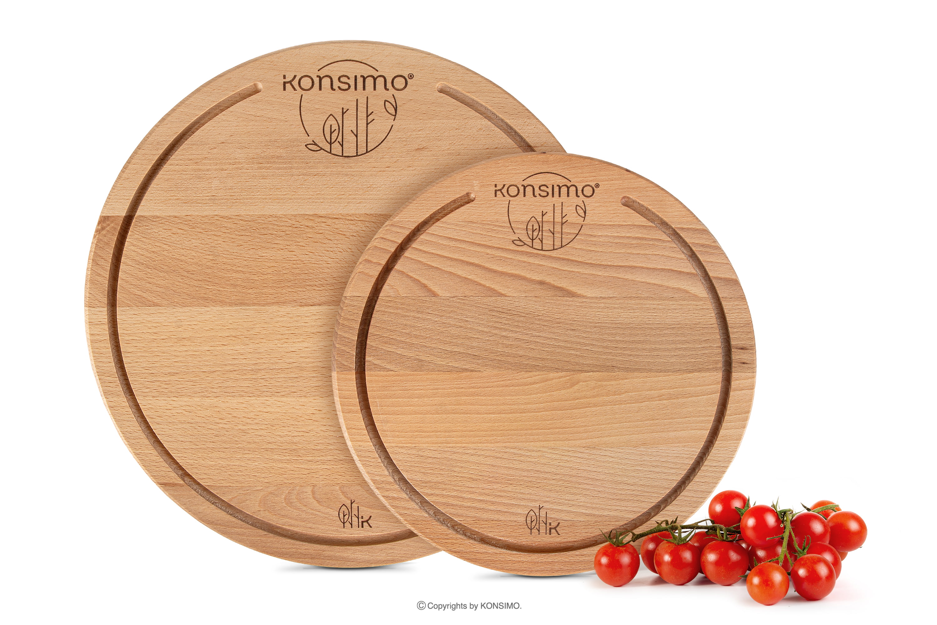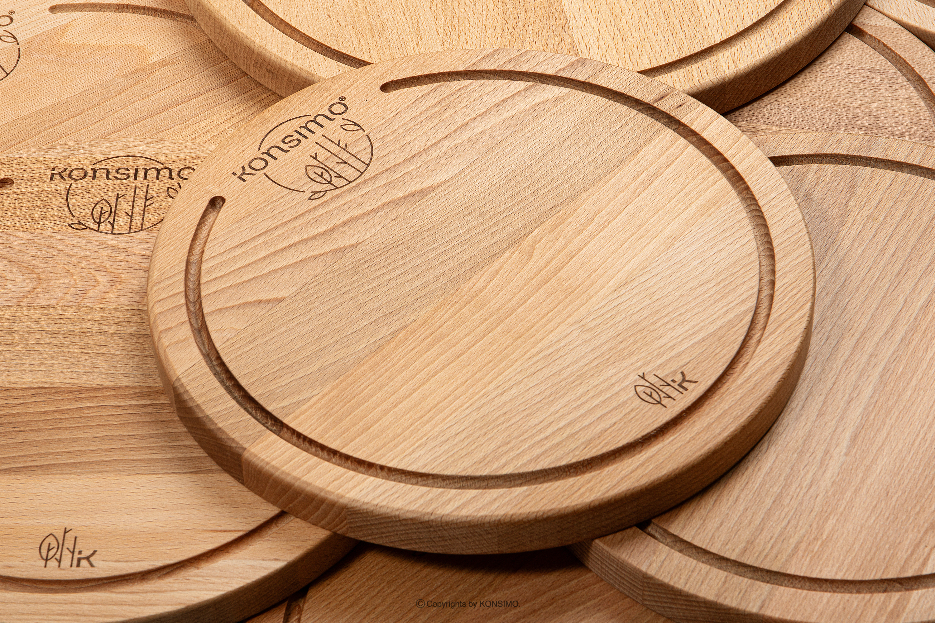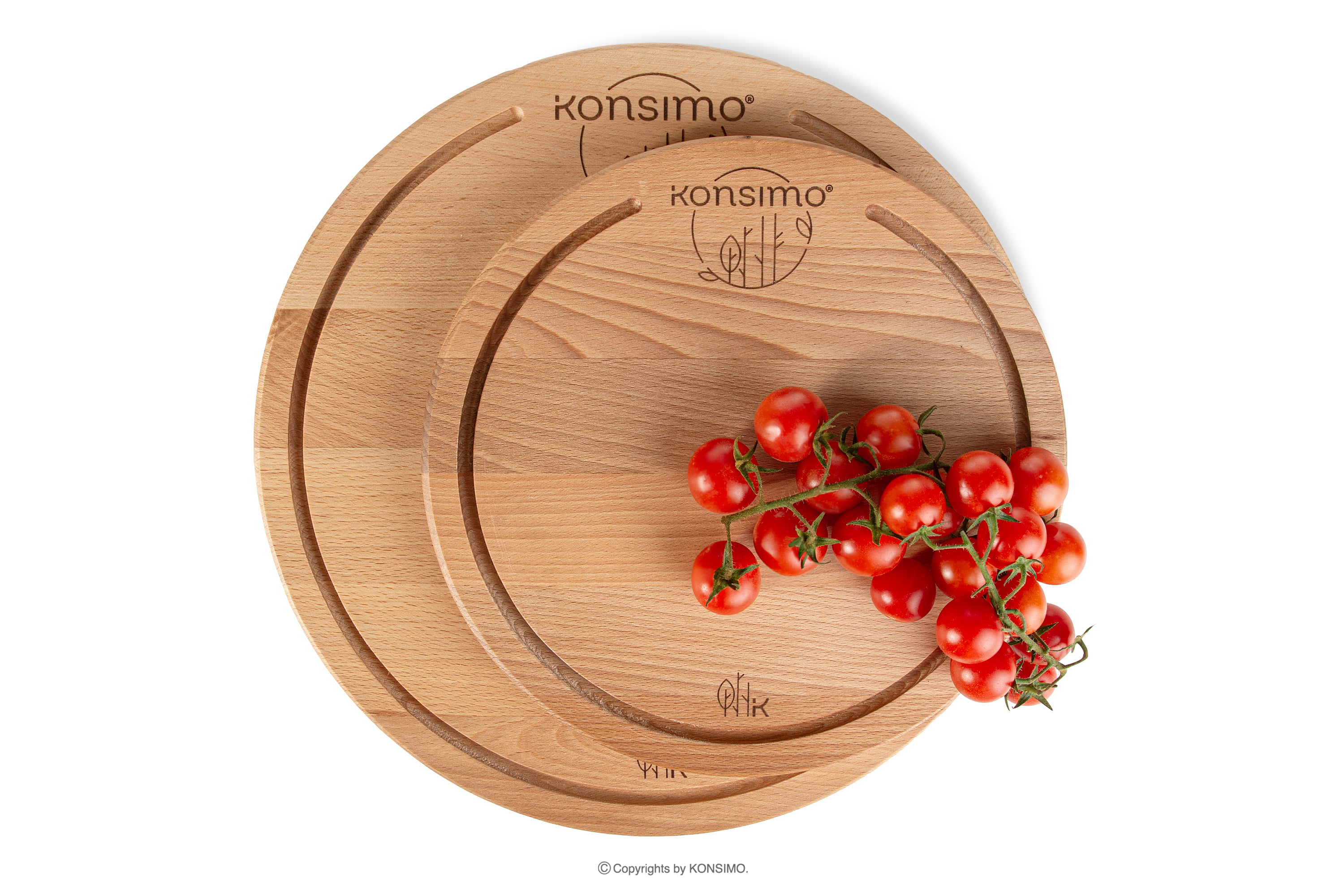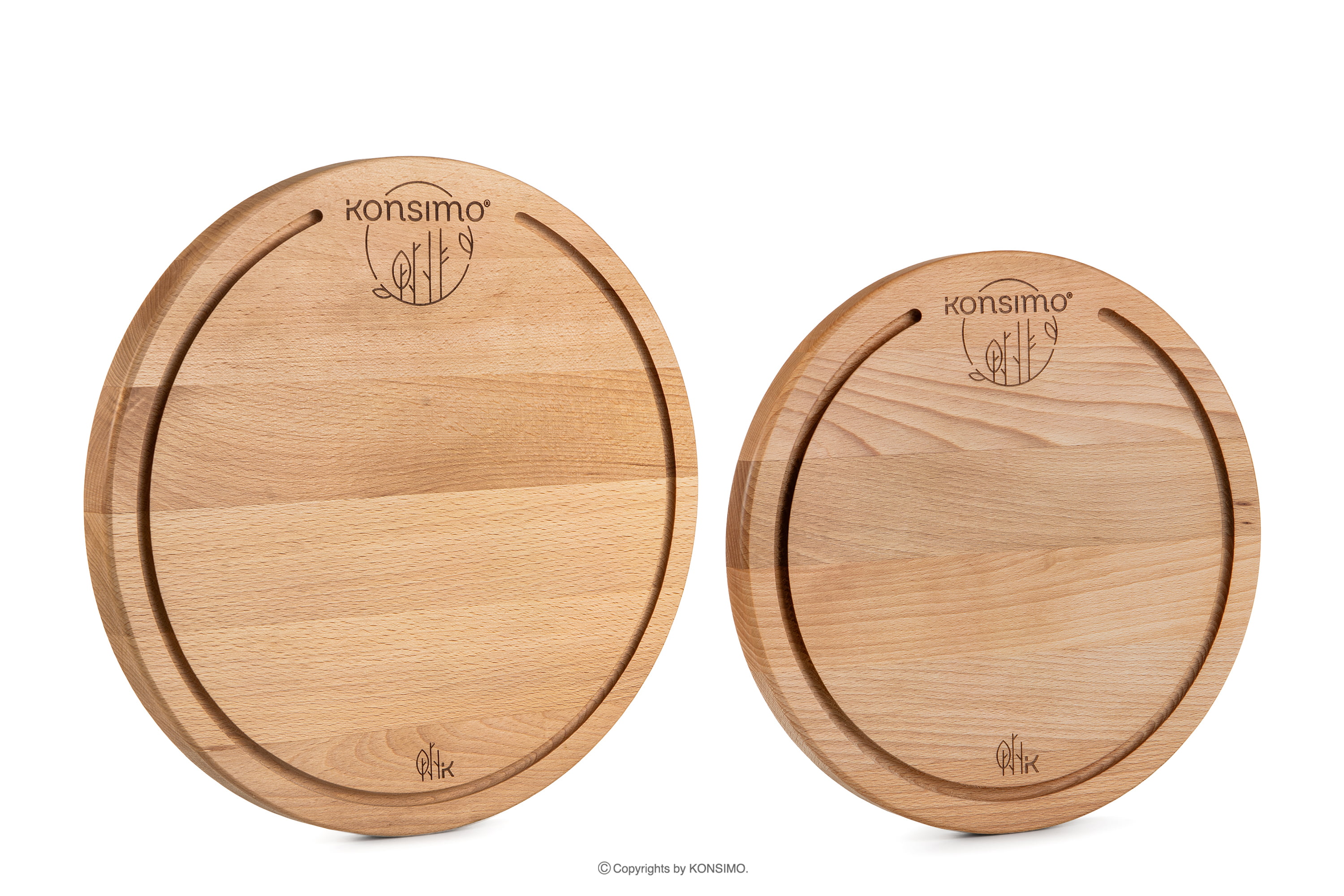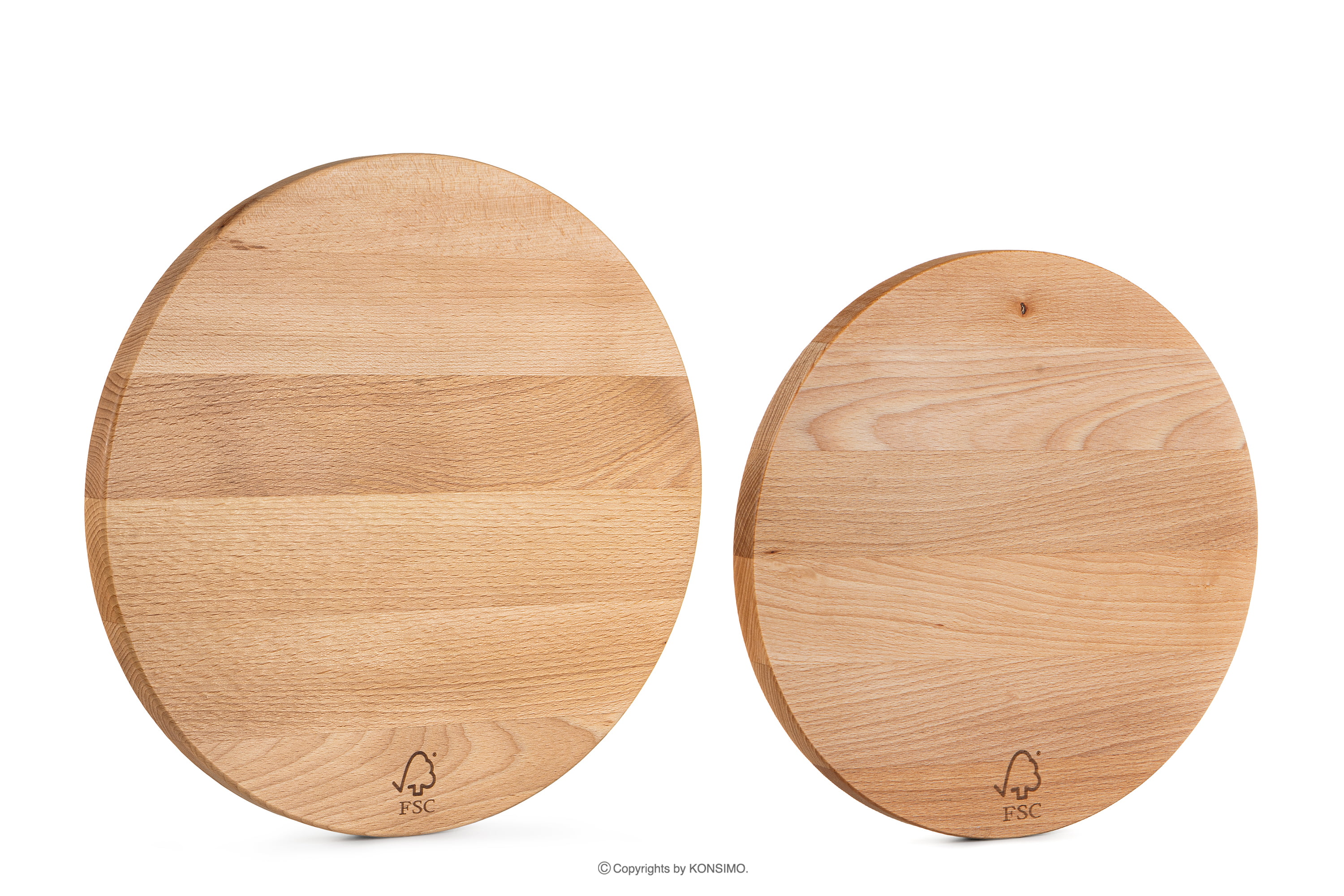 Súprava 2 ks dosiek na krájanie z bukového dreva je nielen praktická na používanie, ale slúži aj ako dizajnový doplnok na servírovanie občerstvenia alebo pokrmov. Jej okrúhly tvar vyrobený z prvotriedneho bukového dreva jej dodáva eleganciu, ako aj odolnosť a pevnosť. Vďaka tomu je ideálna na krájanie rôznych produktov bez otupenia nožov.