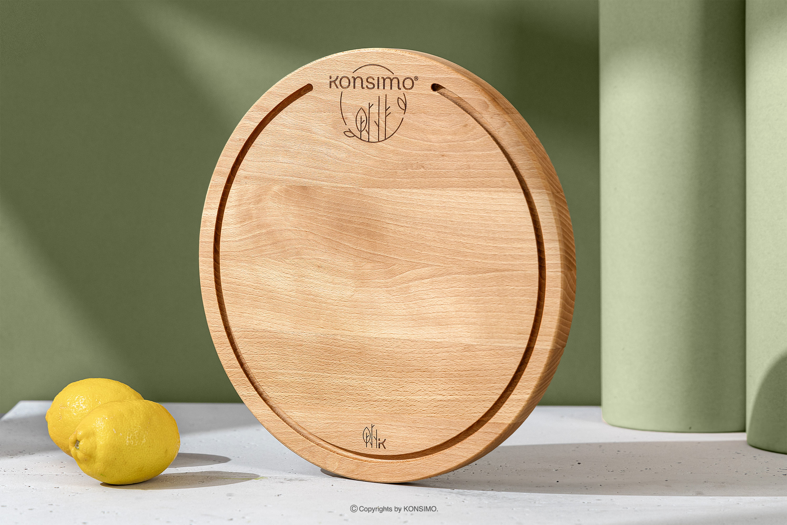 Doska na krájanie nielen uľahčuje každodennú prácu v kuchyni, ale môže pôsobiť aj ako estetický dekoratívny prvok v kuchyni alebo na stole ako elegantný podnos na občerstvenie. Je vyrobená z bukového dreva, zaujme svojím prírodným vzhľadom a poskytne jedinečný akcent každému kuchynskému zariadeniu. Po každom použití ho stačí umyť prostriedkom na umývanie riadu a pravidelne ho chrániť jedlým olejom, aby si zachoval svoju krásu na dlhé roky.