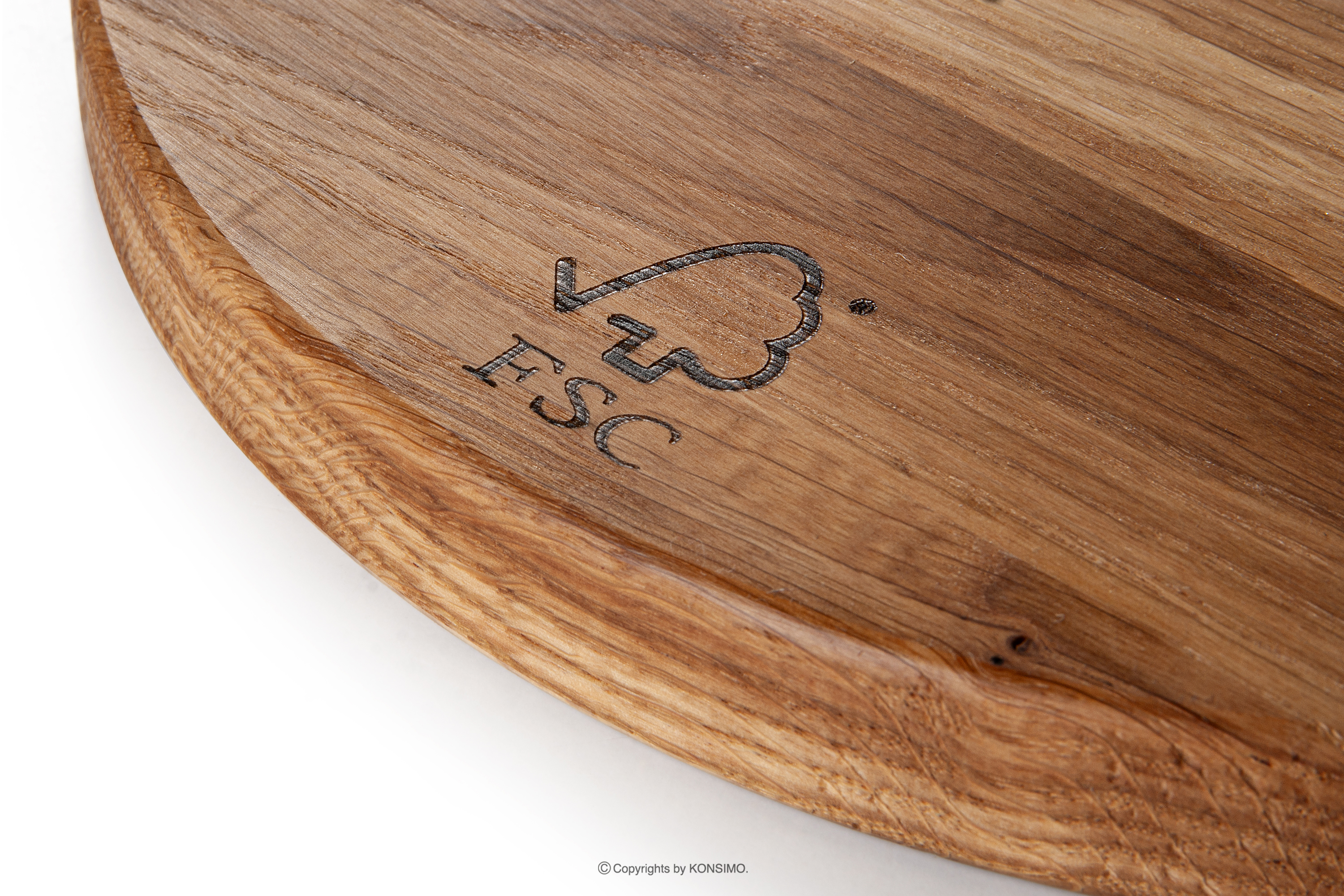 Olejované dubové drevo dodáva doske prirodzený, teplý vzhľad, ktorý dokonale zapadne do každého interiéru. Dubové drevo pochádzajúce zo zdrojov s certifikátom FSC zaručuje, že je nielen estetické, ale aj ekologické. A laky použité pri výrobe sa vyrábajú na báze vody. Vyfrézovaná drážka na okraji slúži na zachytávanie šťavy, aby nekvapkala na dosku stola.