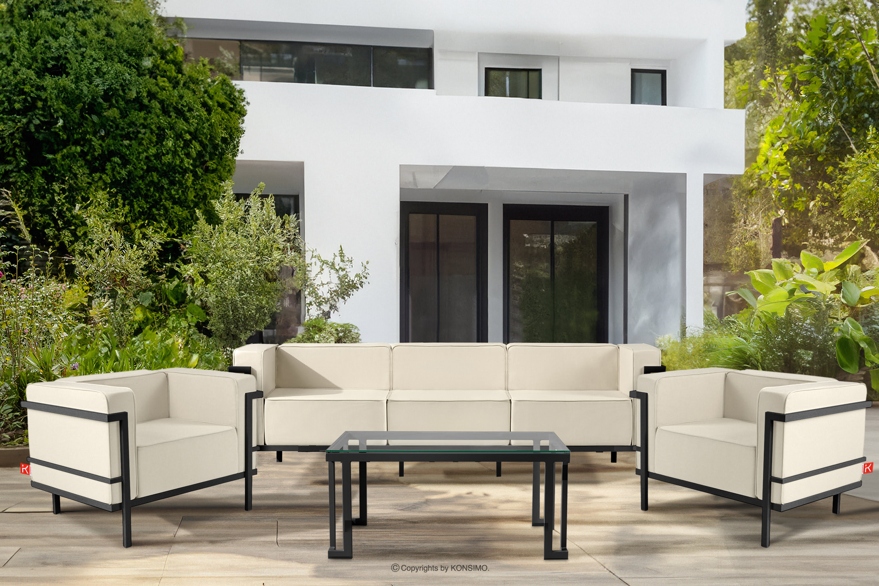 TRIGLO Objav celú kolekciu Moderná záhradná pohovka 3 na kovových nohách tmavosivá/krémová- farba tmavosivá/krémová