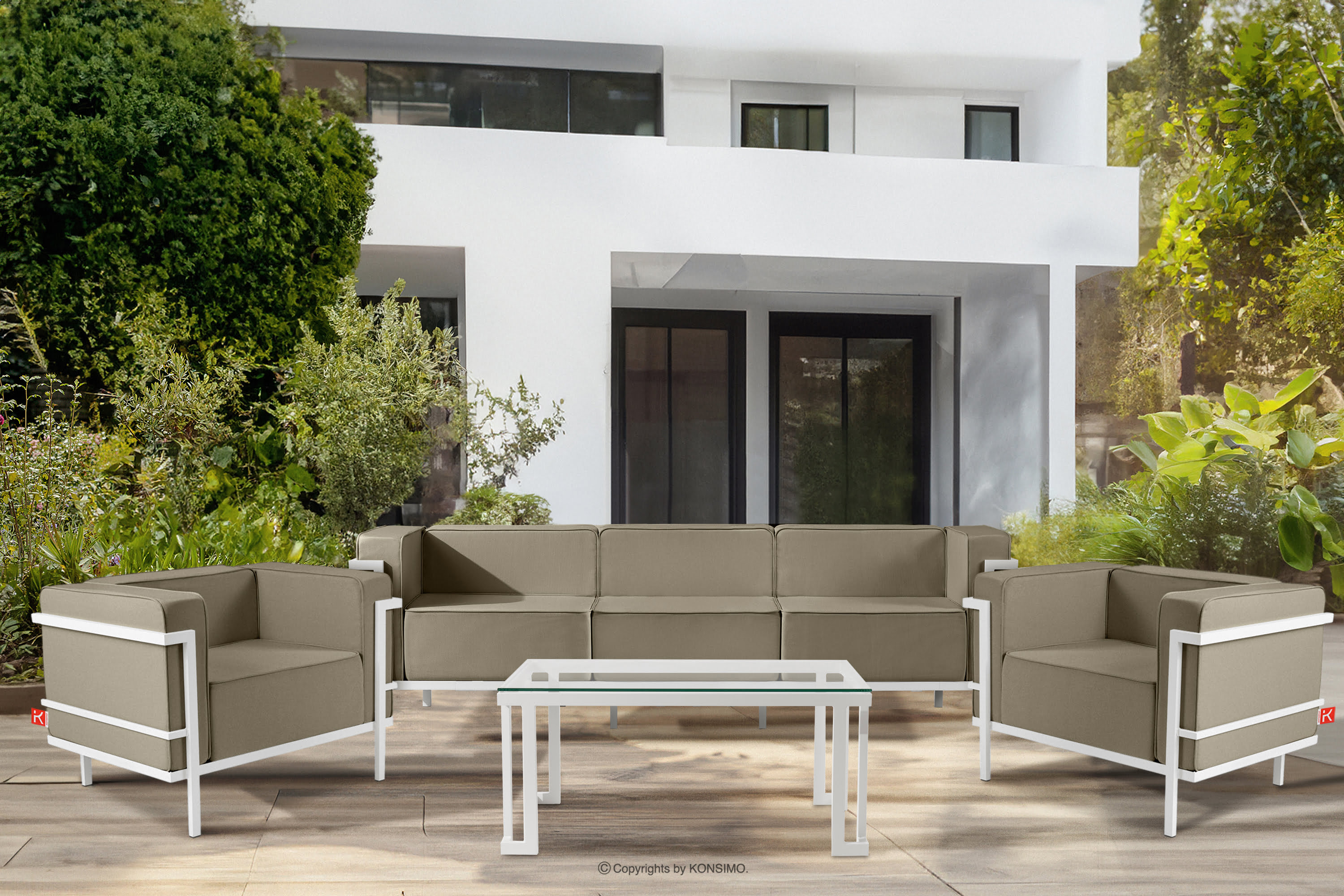 TRIGLO Objav celú kolekciu Moderná záhradná pohovka 3 na kovových nožičkách biela/béžová- farba biela/béžová