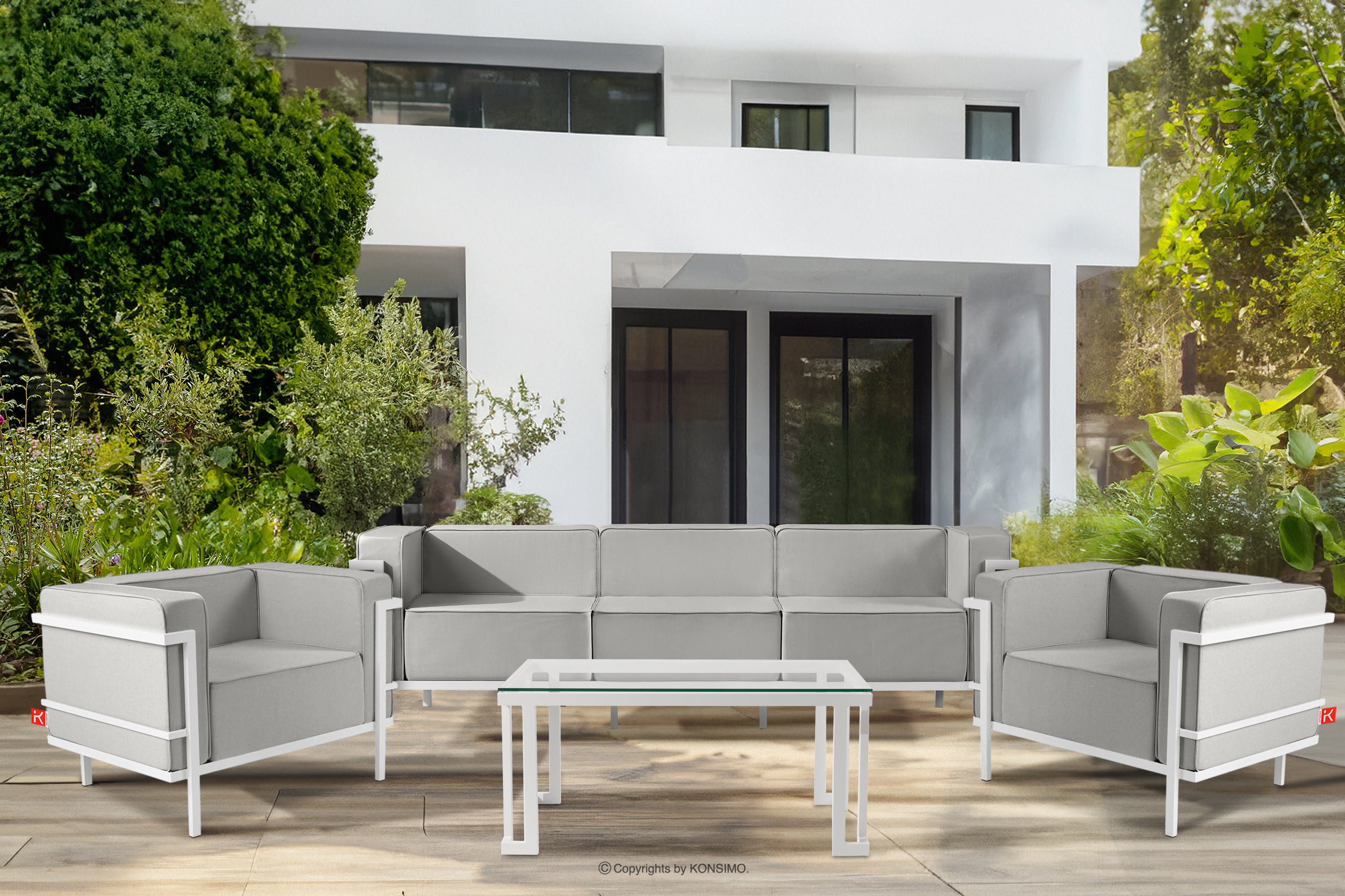 TRIGLO Objav celú kolekciu Moderná záhradná pohovka 3 na kovových nožičkách biela/svetlosivá- farba biela/svetlosivá