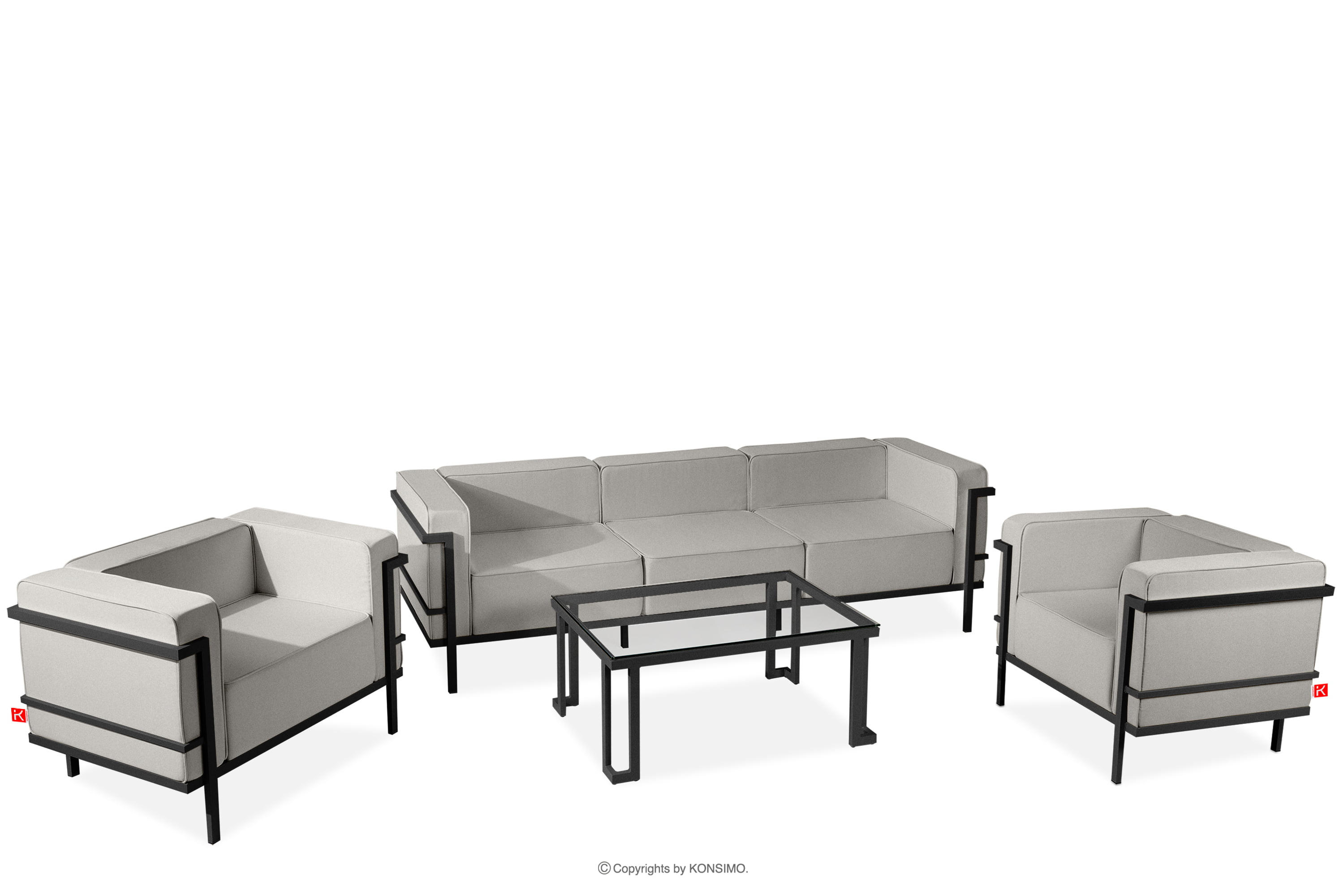 Moderná tmavosivá/svetlosivá súprava záhradného nábytku (1.1.3.1) vyrobená z odolnej tmavosivej/svetlosivej ocele a umiestnená na kovových nohách dodáva priestoru nielen eleganciu, ale poskytuje aj výnimočné pohodlie. Vďaka mäkkej pene sedadla a operadla sa relaxovanie vonku stane skutočným pôžitkom. Nábytok umiestnený na pevných oceľových nohách s práškovým nástrekom zostáva stabilný aj pri intenzívnom používaní.