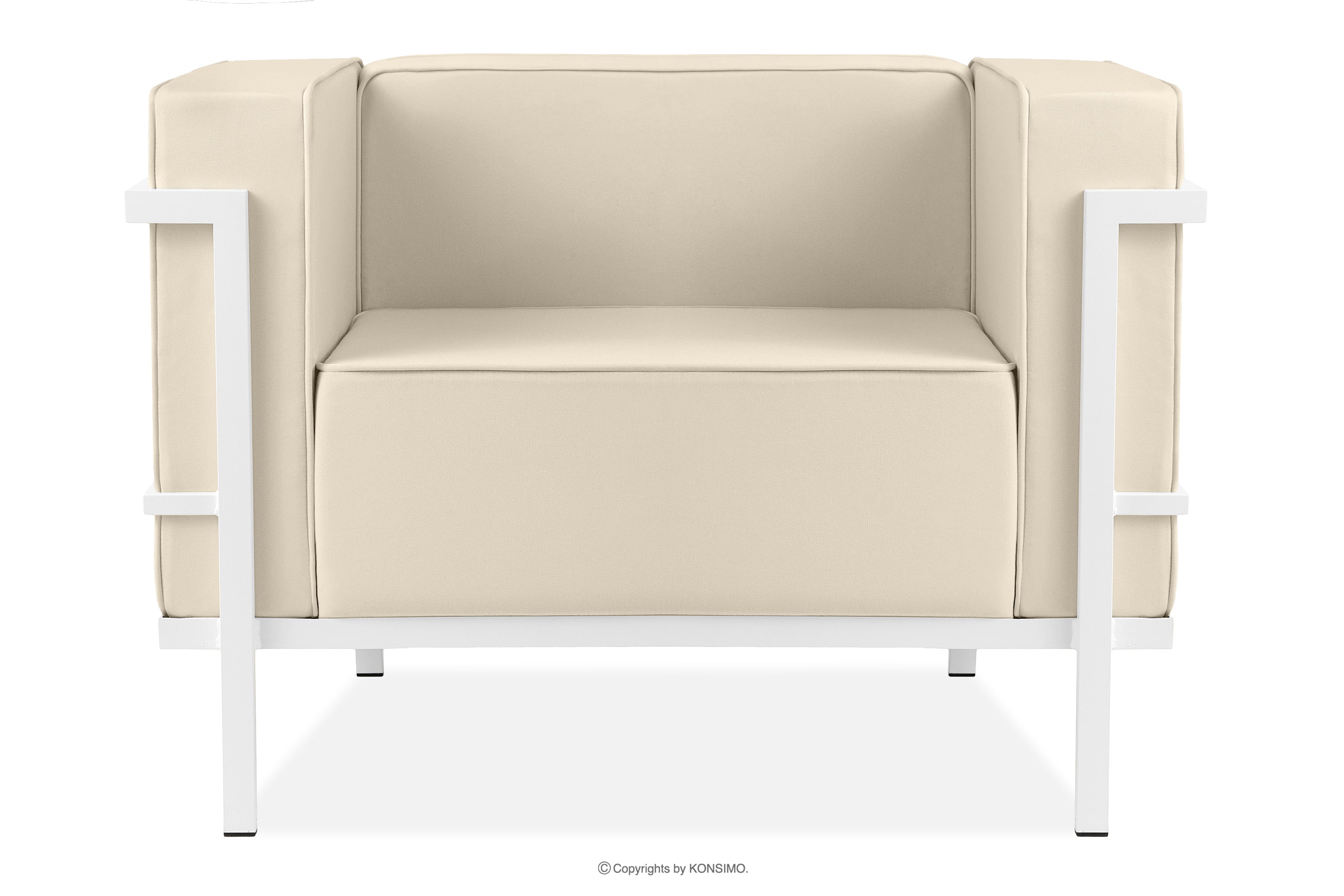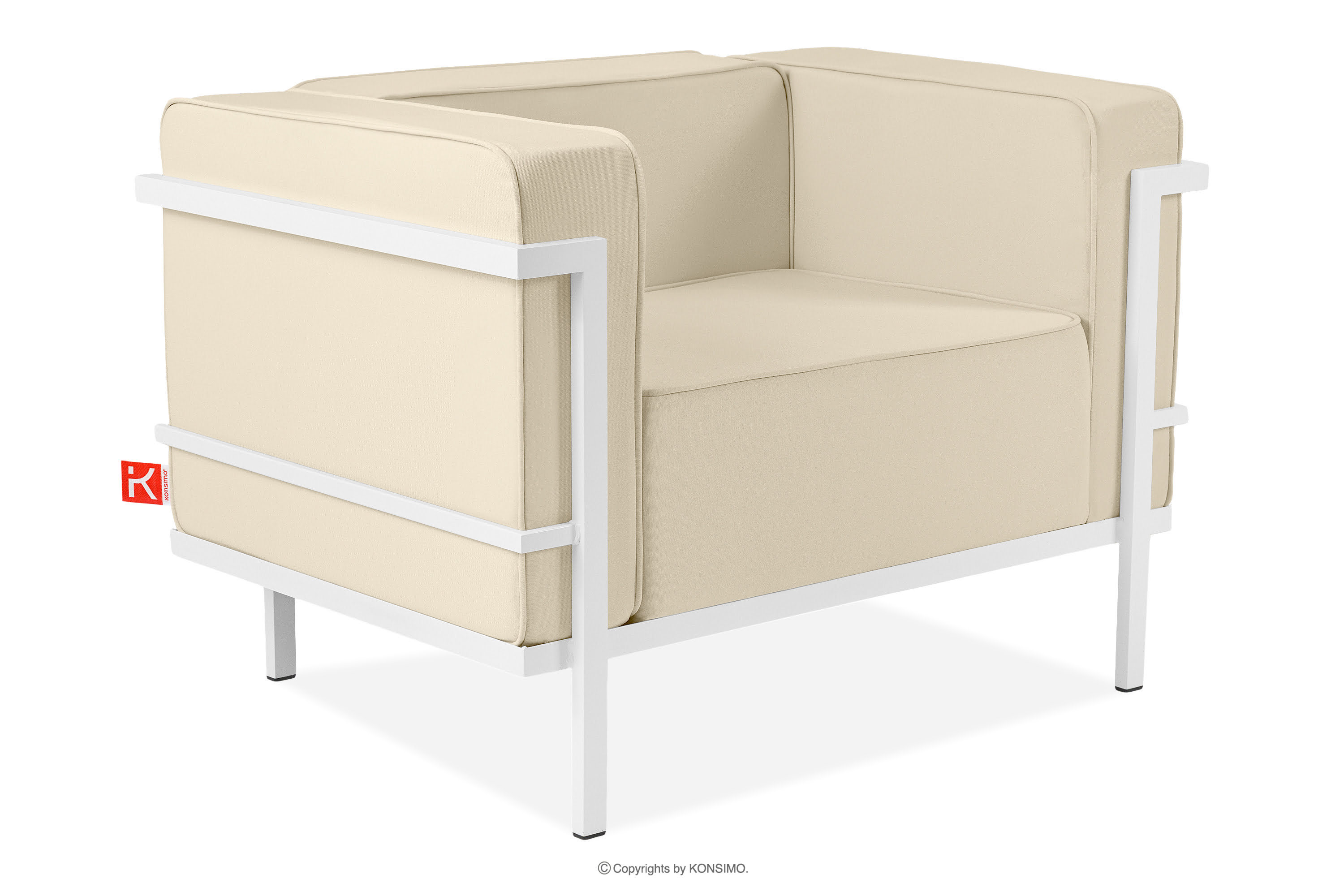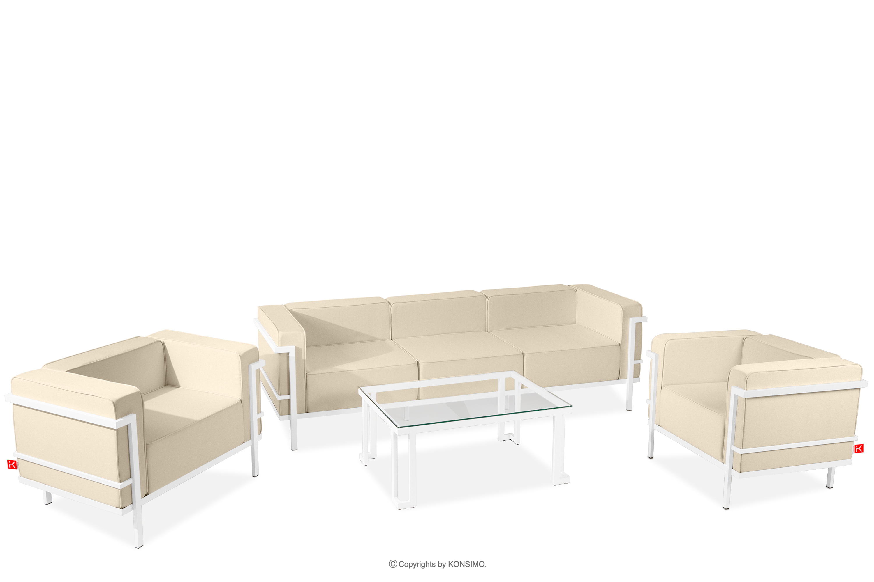 Moderná bielo-krémová súprava záhradného nábytku (1.1.3.1) vyrobená z robustnej tmavosivej/svetlosivej ocele a umiestnená na kovových nohách dodáva priestoru nielen eleganciu, ale poskytuje aj výnimočné pohodlie. Vďaka mäkkej pene sedadla a operadla sa relaxovanie vonku stane skutočným pôžitkom. Nábytok umiestnený na pevných oceľových nohách s práškovým nástrekom zostáva stabilný aj pri intenzívnom používaní.
