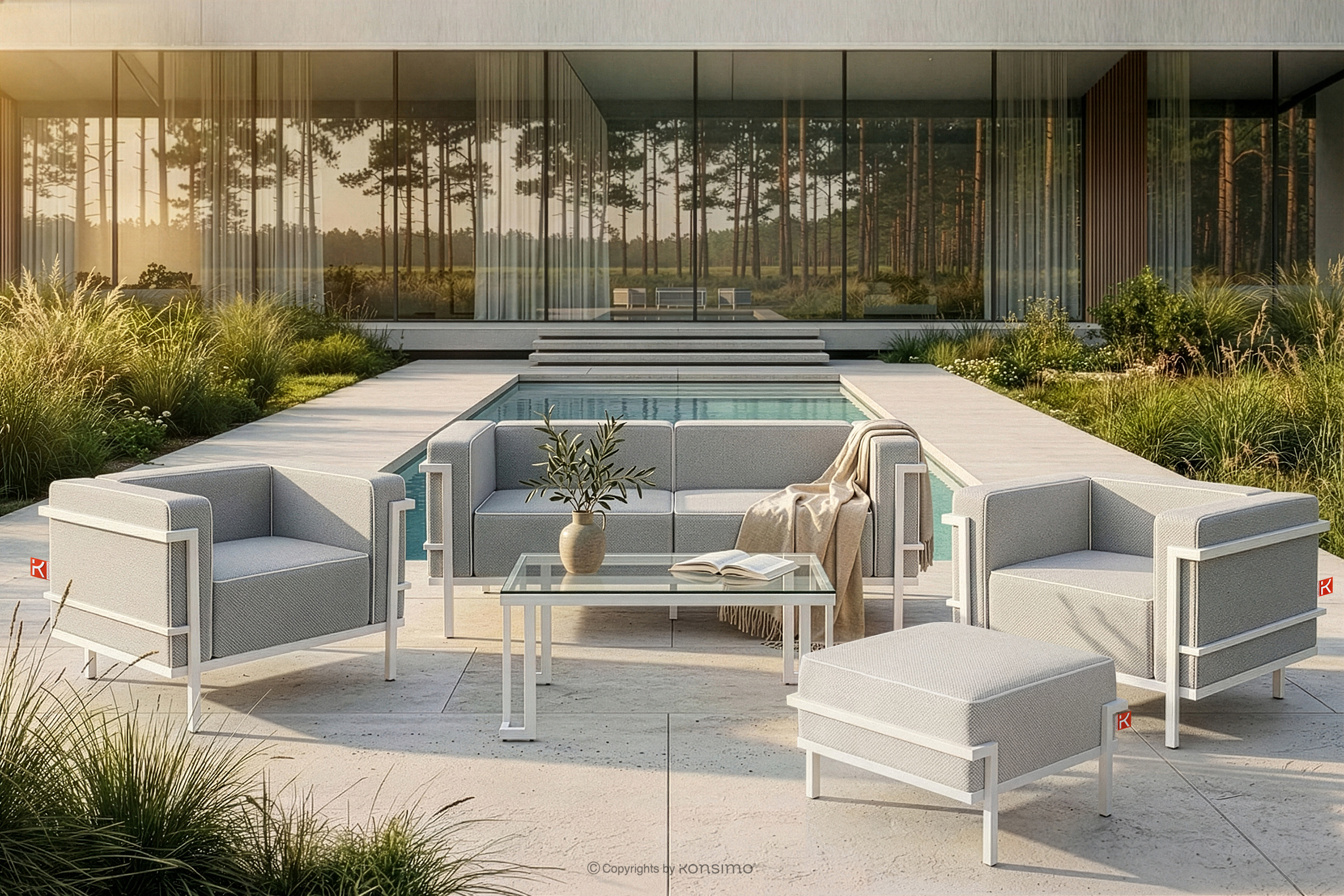 Záhradný taburet na kovových nohách, biely/tmavo sivý/biely je vyrobená z odolnej ocele, ktorá nielen dodáva priestoru eleganciu, ale poskytuje aj výnimočný komfort. Vďaka mäkkému penovému sedadlu a operadlu sa relaxovanie vonku stáva skutočným potešením. Nábytok je umiestnený na pevných oceľových nohách s práškovým náterom, ktoré zaisťujú stabilitu aj pri intenzívnom používaní.