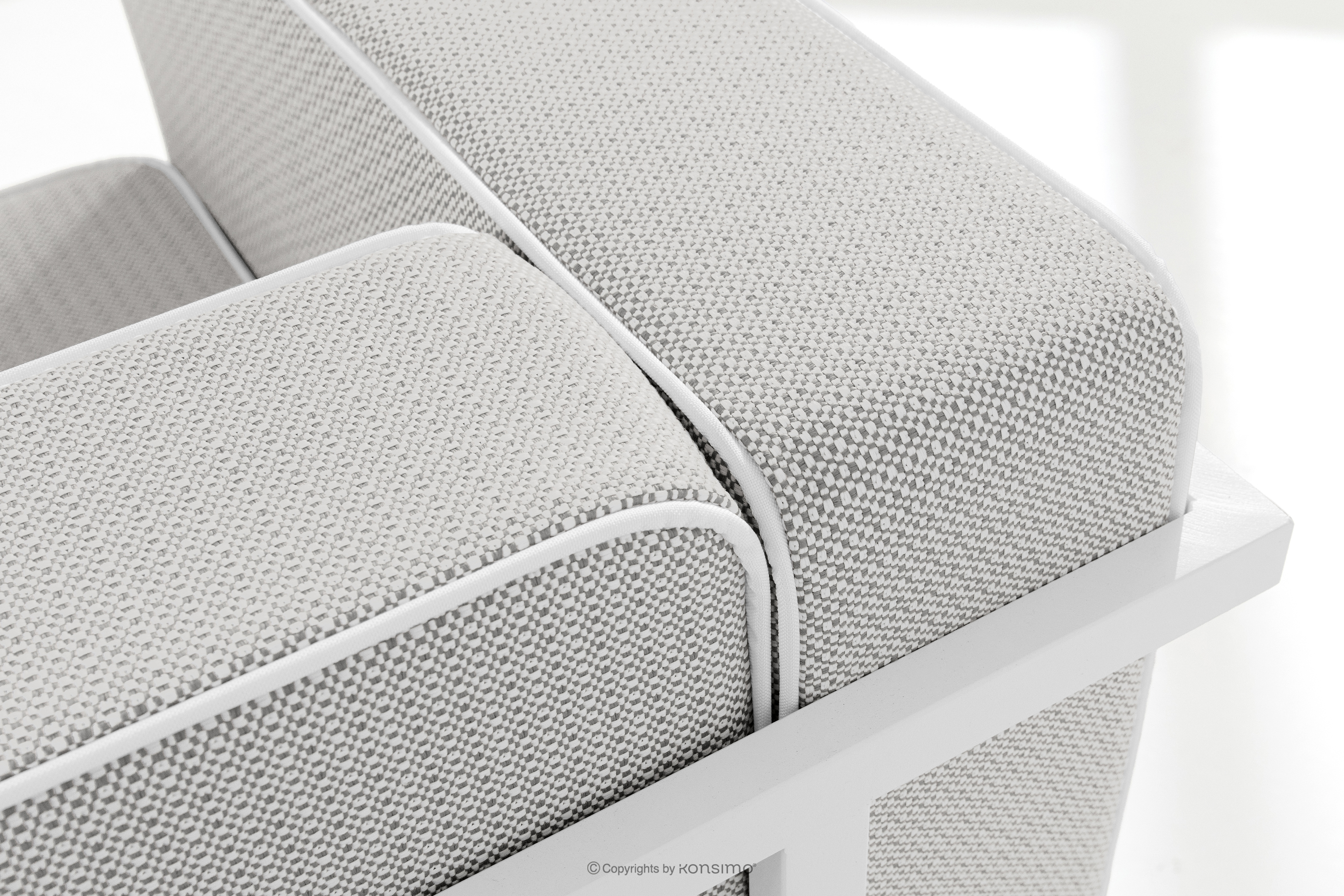 TRIGLO Objav celú kolekciu Moderné záhradné kreslo na kovových nohách, biele/tmavo šedé/biele- farba biela/tmavo sivá/biela