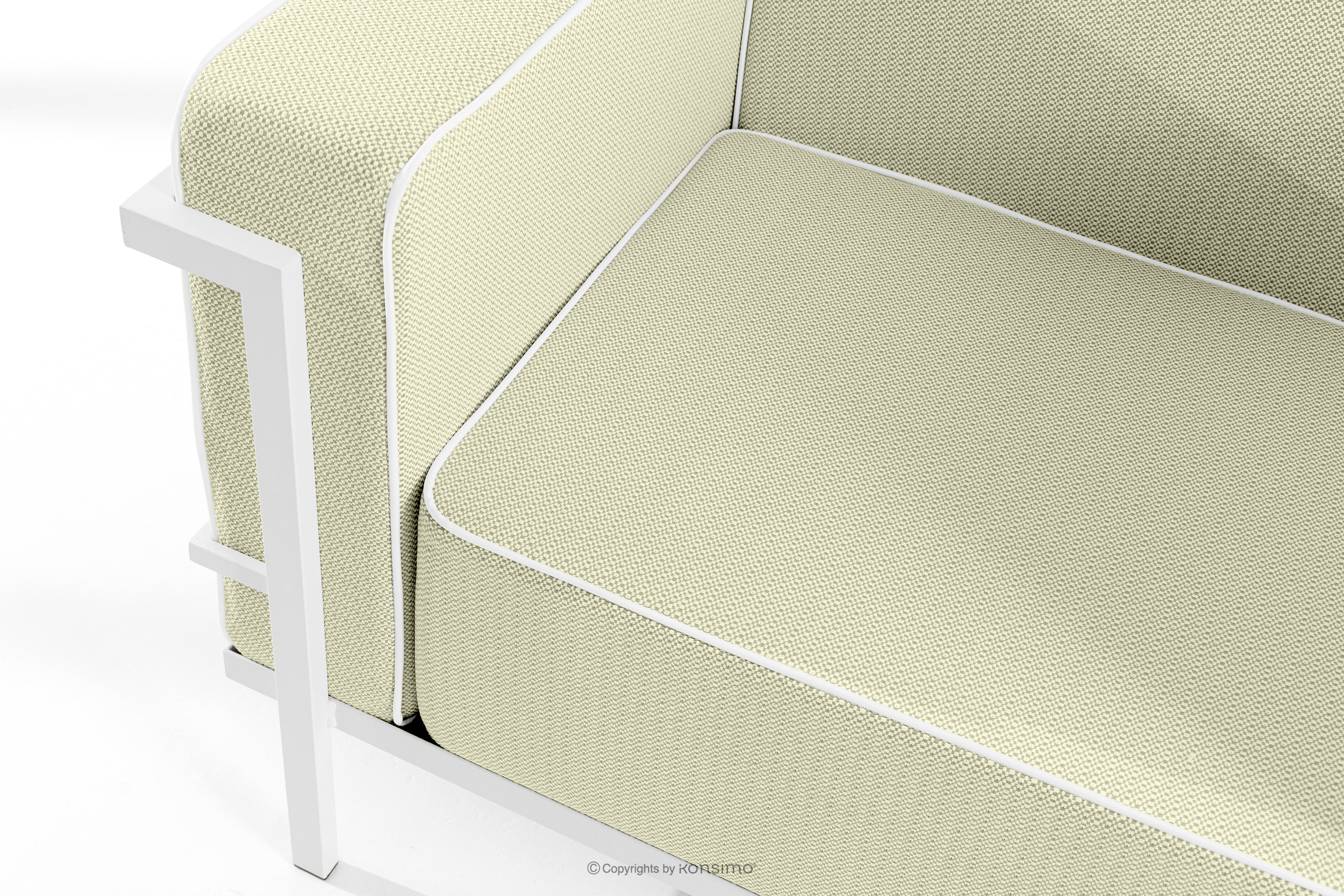 TRIGLO Objav celú kolekciu Moderná záhradná pohovka 2 na kovových nohách, biela/svetlo zelená/biela- farba biela/svetlozelená/biela