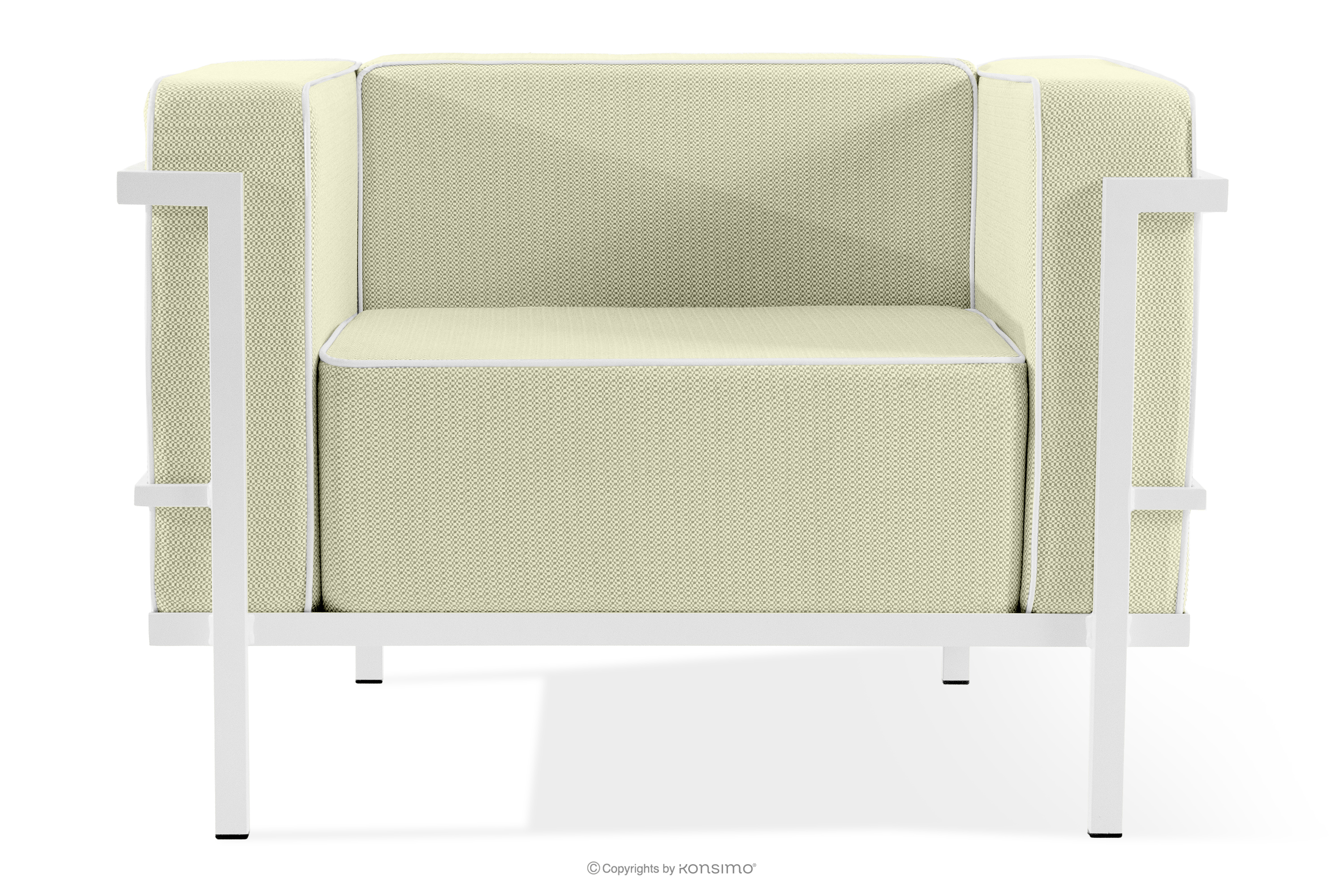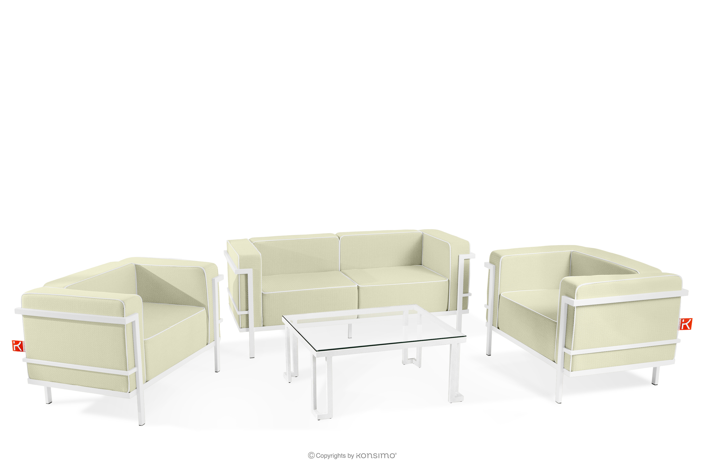 Záhradný nábytok: 2 kreslá, dvojmiestna pohovka, konferenčný stolík v bielej/svetlo zelenej/bielej farbe je vyrobená z odolnej ocele, ktorá nielen dodáva priestoru eleganciu, ale poskytuje aj výnimočný komfort. Vďaka mäkkému penovému sedadlu a operadlu sa relaxovanie vonku stáva skutočným potešením. Nábytok je umiestnený na pevných oceľových nohách s práškovým náterom, ktoré zaisťujú stabilitu aj pri intenzívnom používaní.
