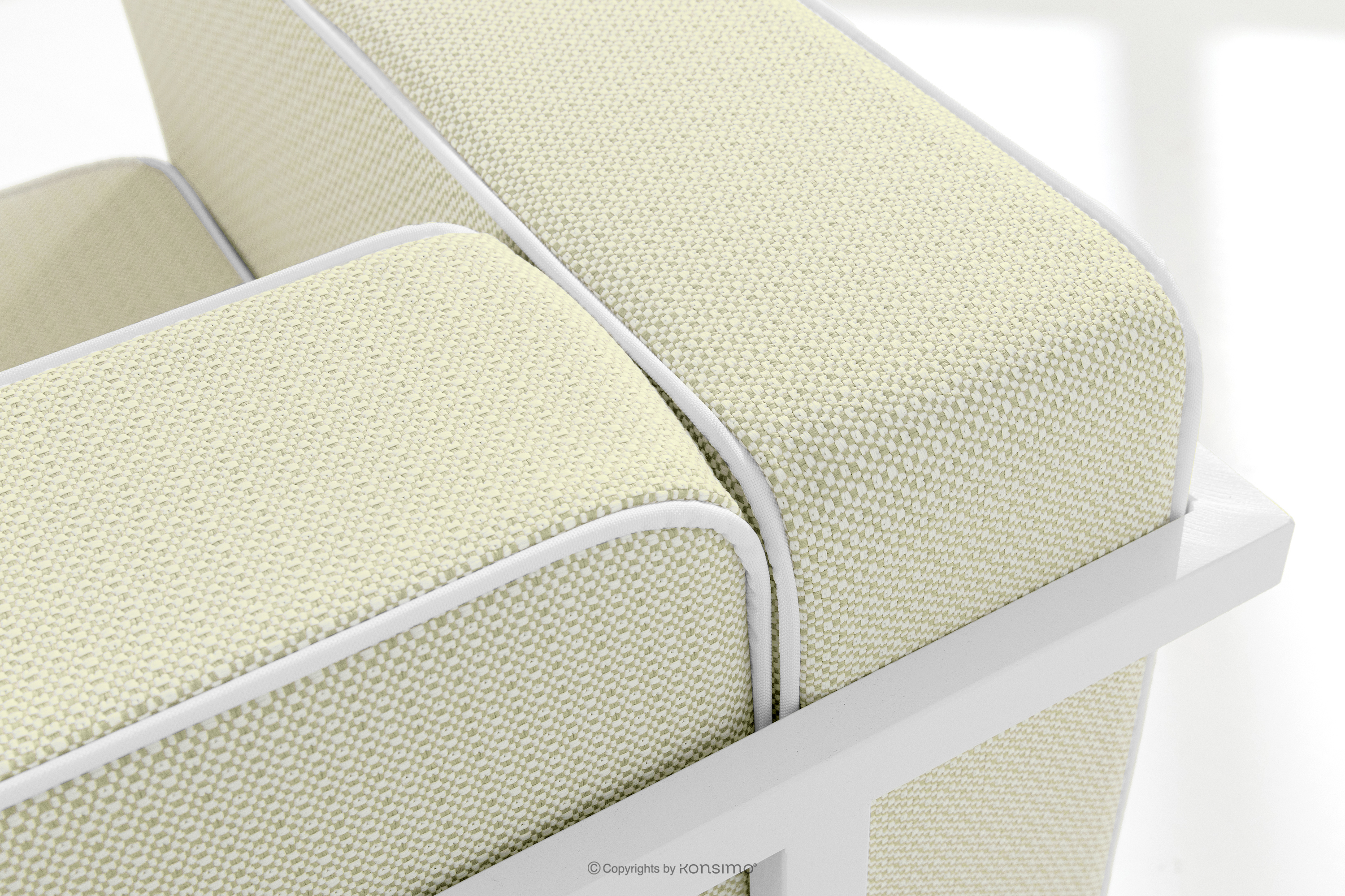 TRIGLO Objav celú kolekciu Záhradný nábytok: 2 kreslá, dvojmiestna pohovka, konferenčný stolík v bielej/svetlo zelenej/bielej farbe- farba biela/svetlo zelená/biela