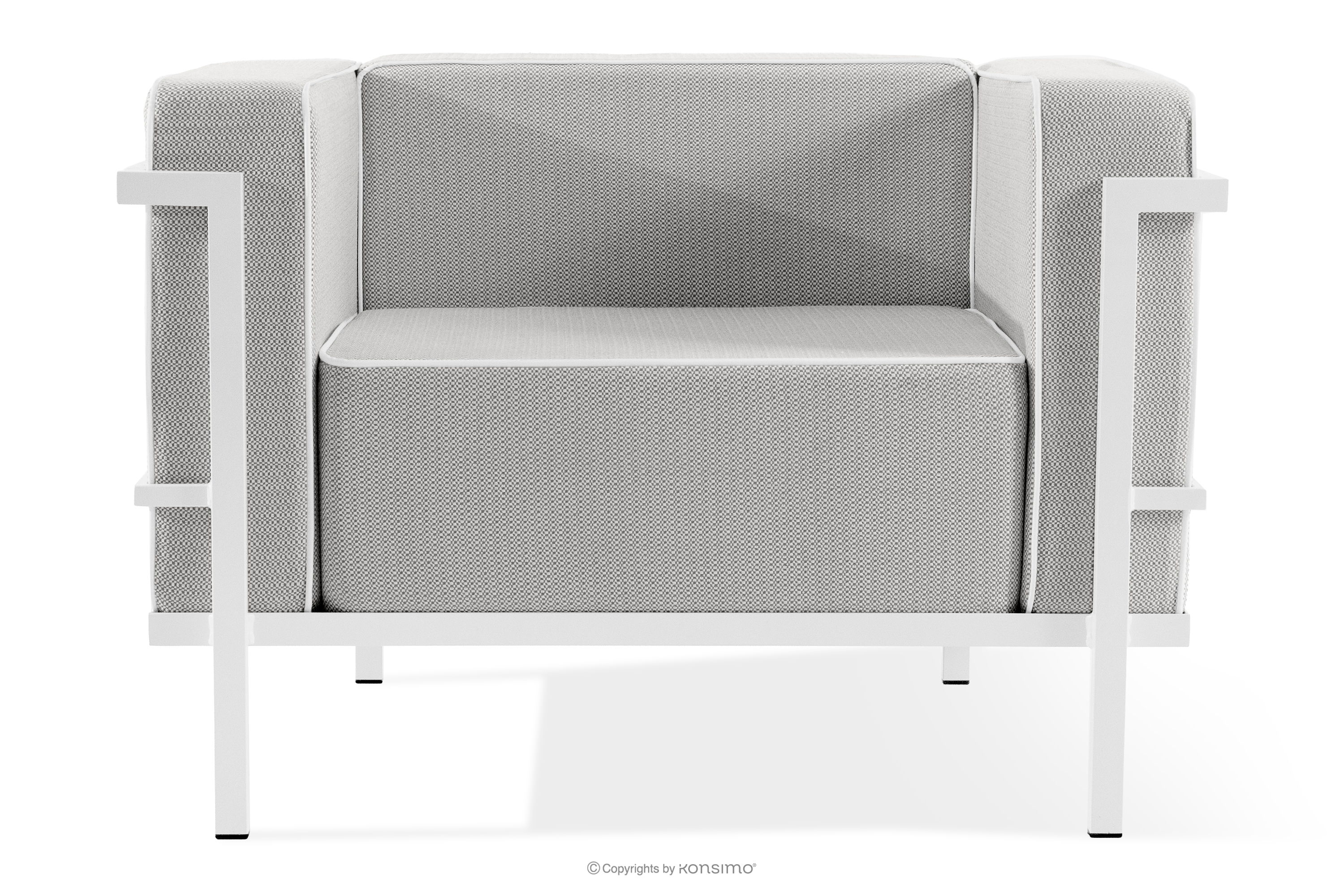 TRIGLO Objav celú kolekciu Záhradný nábytok: 2 kreslá, dvojmiestna pohovka, konferenčný stolík v bielej/tmavo šedej/bielej farbe- farba biela/tmavo sivá/biela