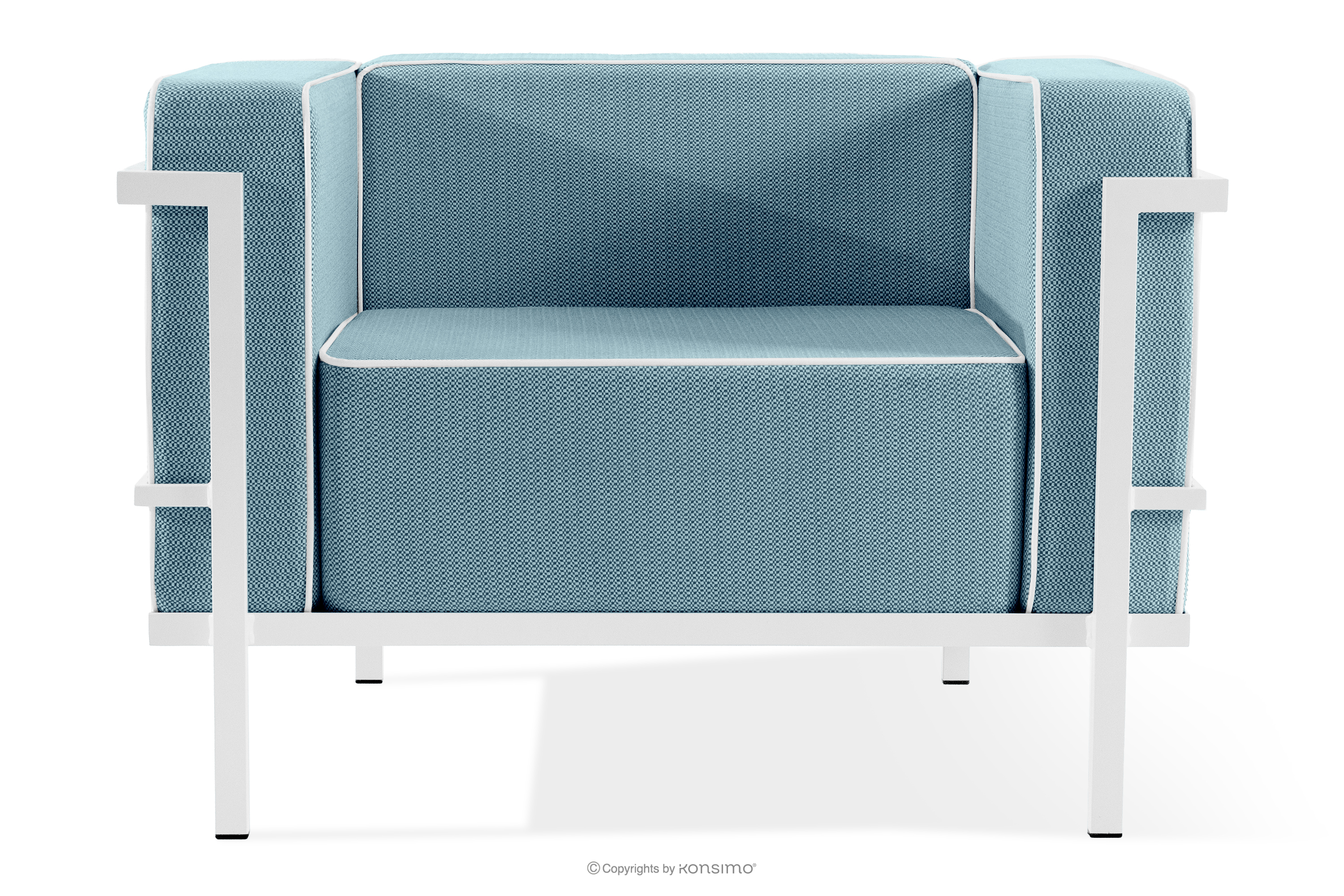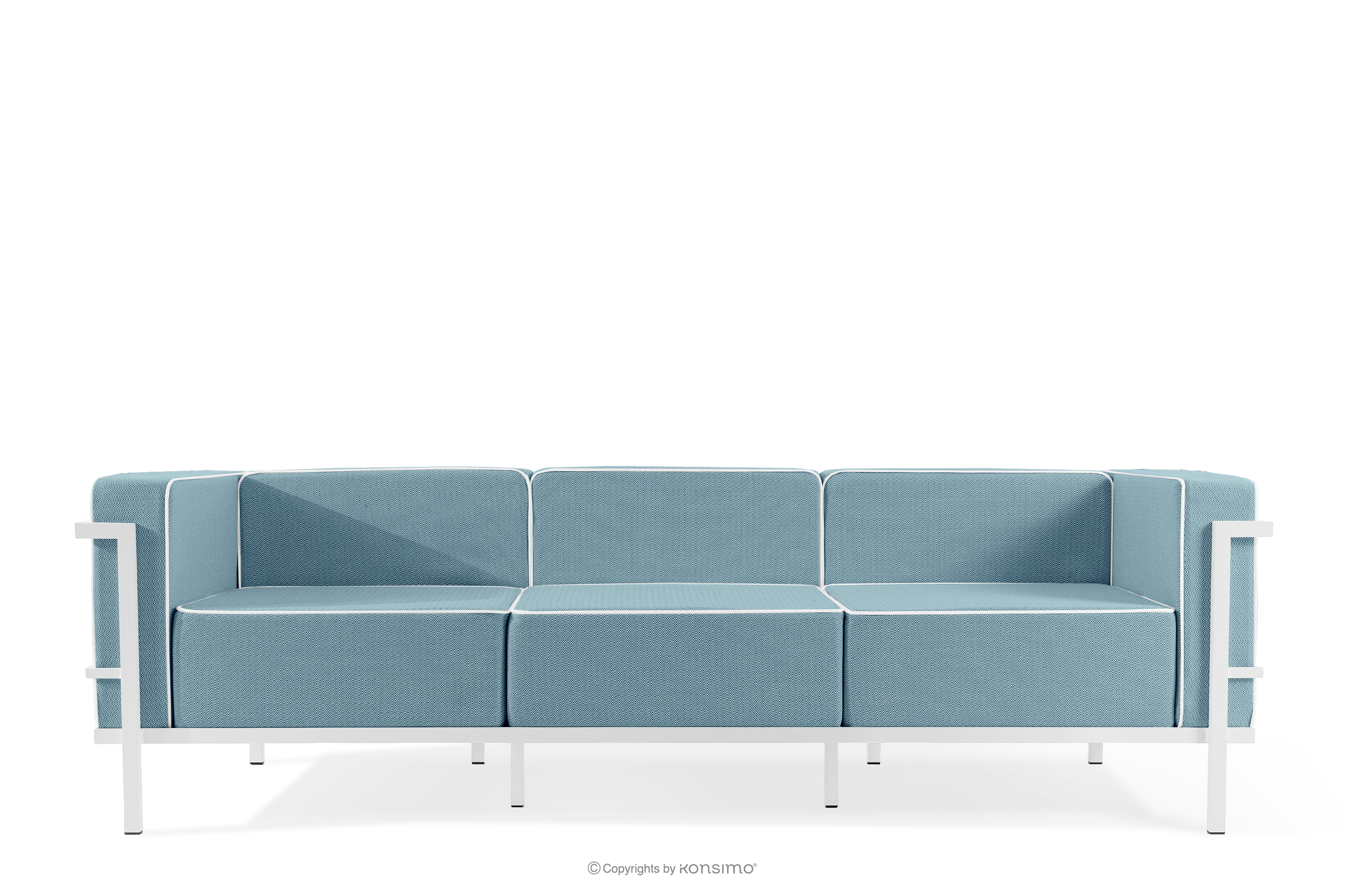 TRIGLO Objav celú kolekciu Záhradný nábytok: 2 kreslá, trojmiestna pohovka, konferenčný stolík v bielej/morskej modrej/bielej farbe- farba biela/morská modrá/biela