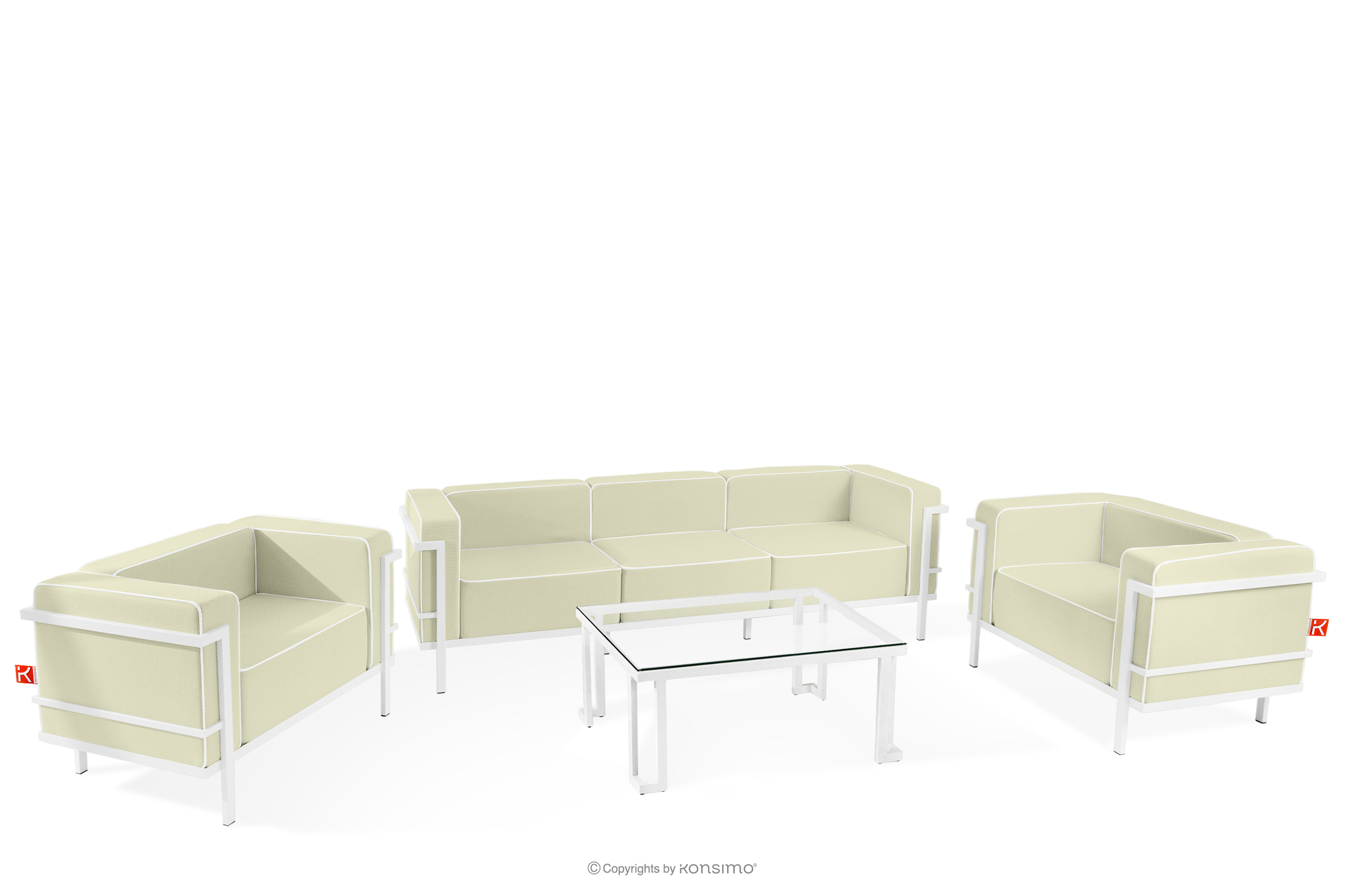 TRIGLO Objav celú kolekciu Súprava záhradného nábytku: 2 kreslá, trojmiestna pohovka, stôl v bielej/svetlo zelenej/bielej farbe- farba biela/svetlo zelená/biela
