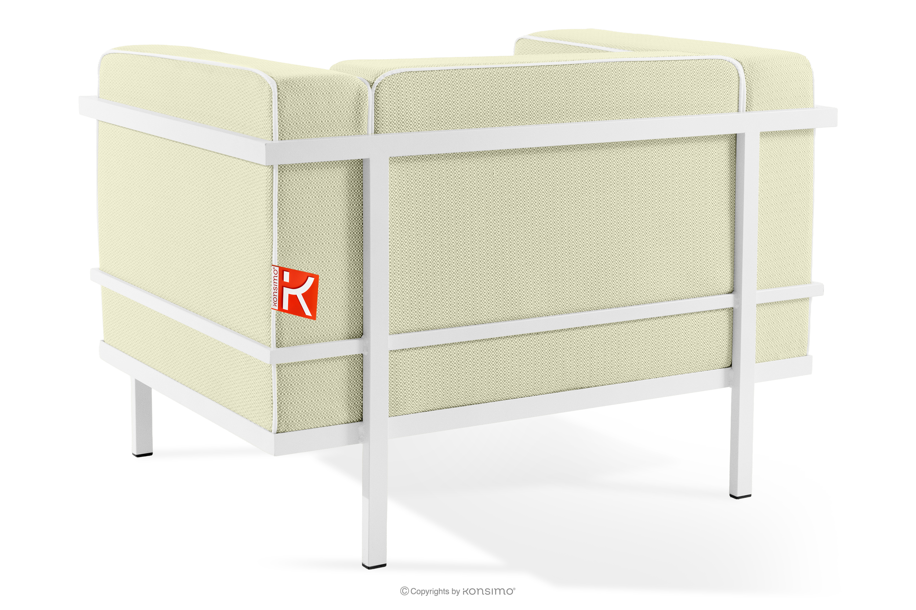 Súprava záhradného nábytku: 2 kreslá, trojmiestna pohovka, stôl v bielej/svetlo zelenej/bielej farbe je vyrobená z odolnej ocele, ktorá nielen dodáva priestoru eleganciu, ale poskytuje aj výnimočný komfort. Vďaka mäkkému penovému sedadlu a operadlu sa relaxovanie vonku stáva skutočným potešením. Nábytok je umiestnený na pevných oceľových nohách s práškovým náterom, ktoré zaisťujú stabilitu aj pri intenzívnom používaní.