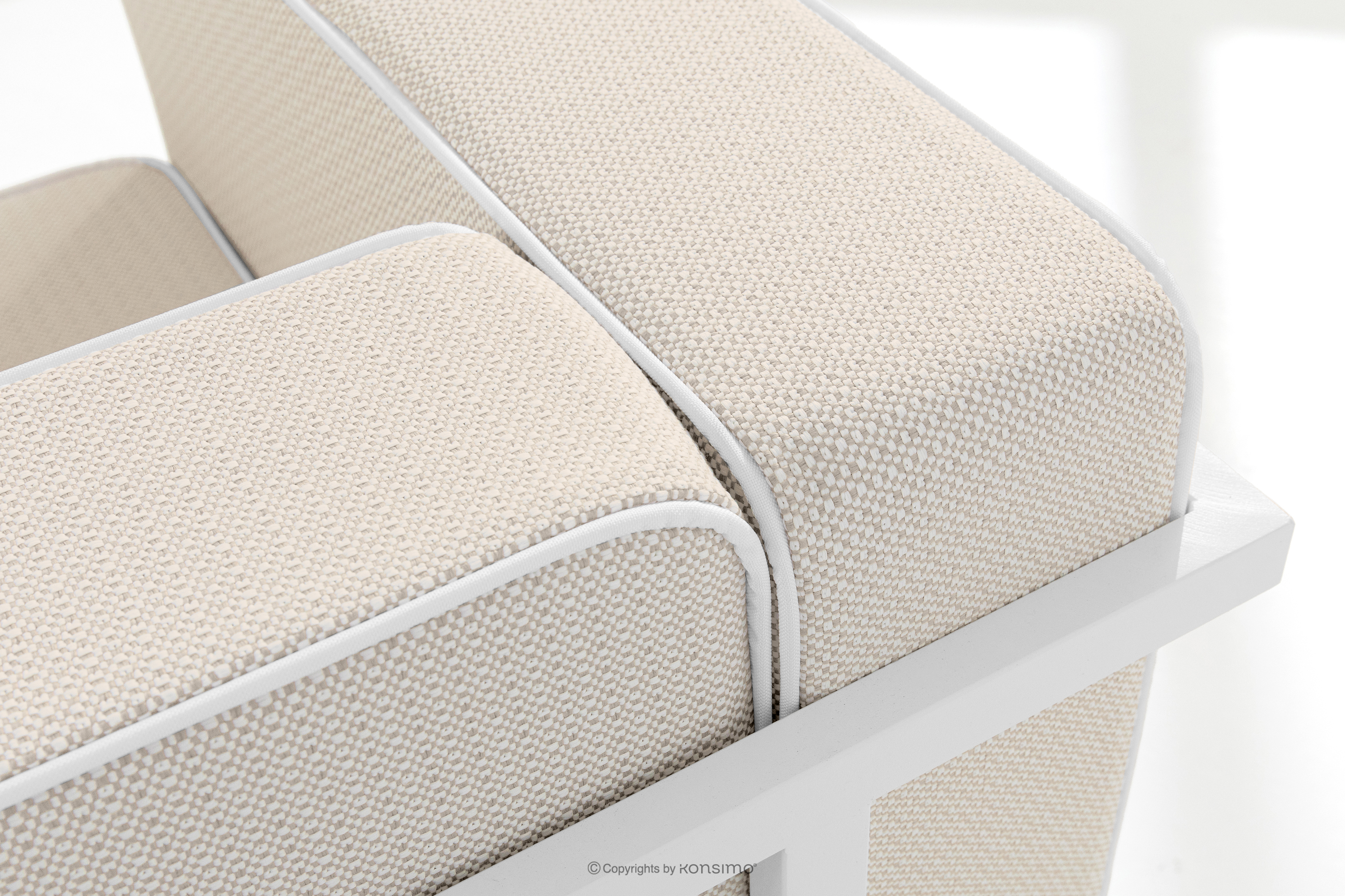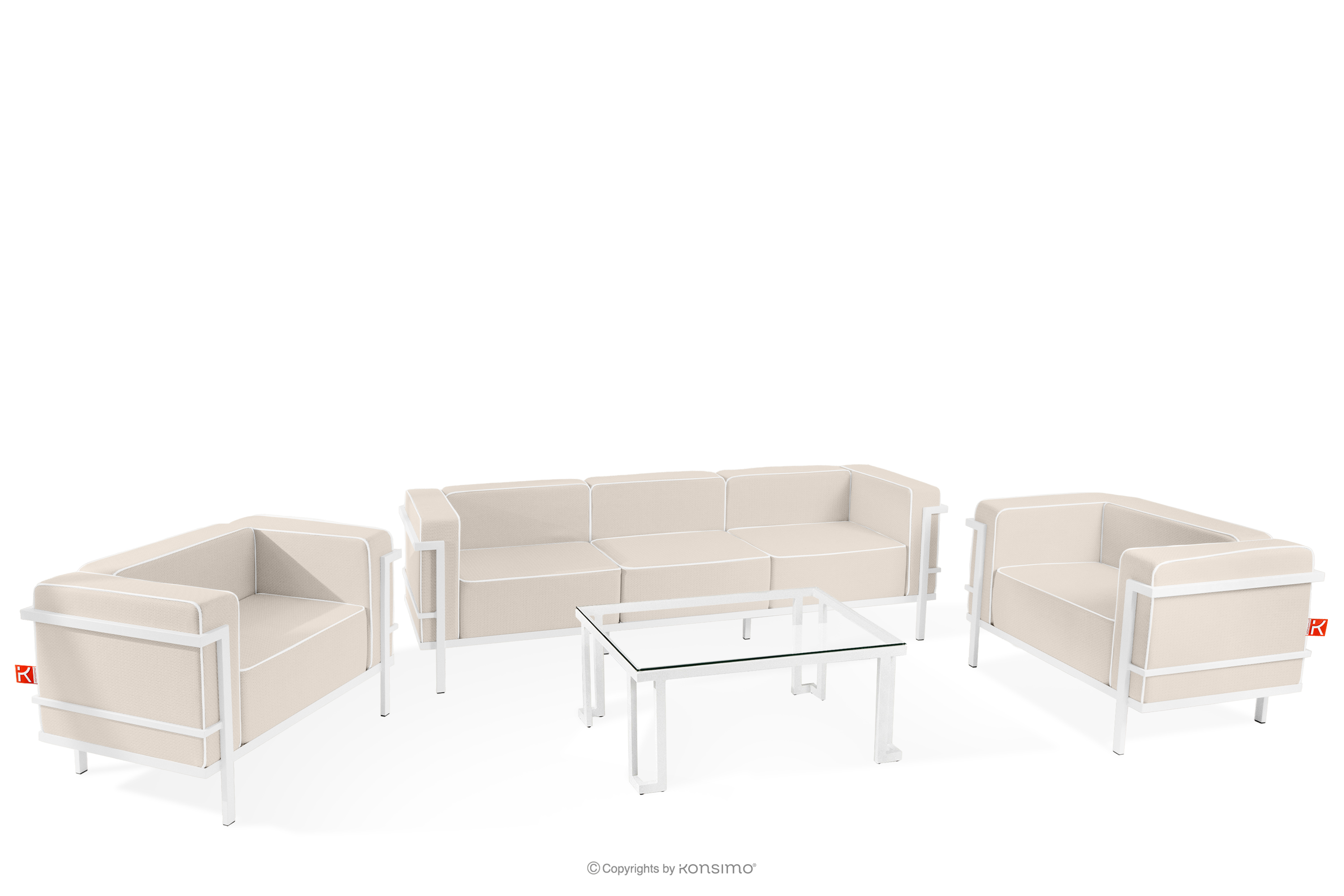 TRIGLO Objav celú kolekciu Súprava záhradného nábytku: 2 kreslá, trojmiestna pohovka, stôl v bielej/tmavo béžovej/bielej farbe- farba biela/tmavá béžová/biela