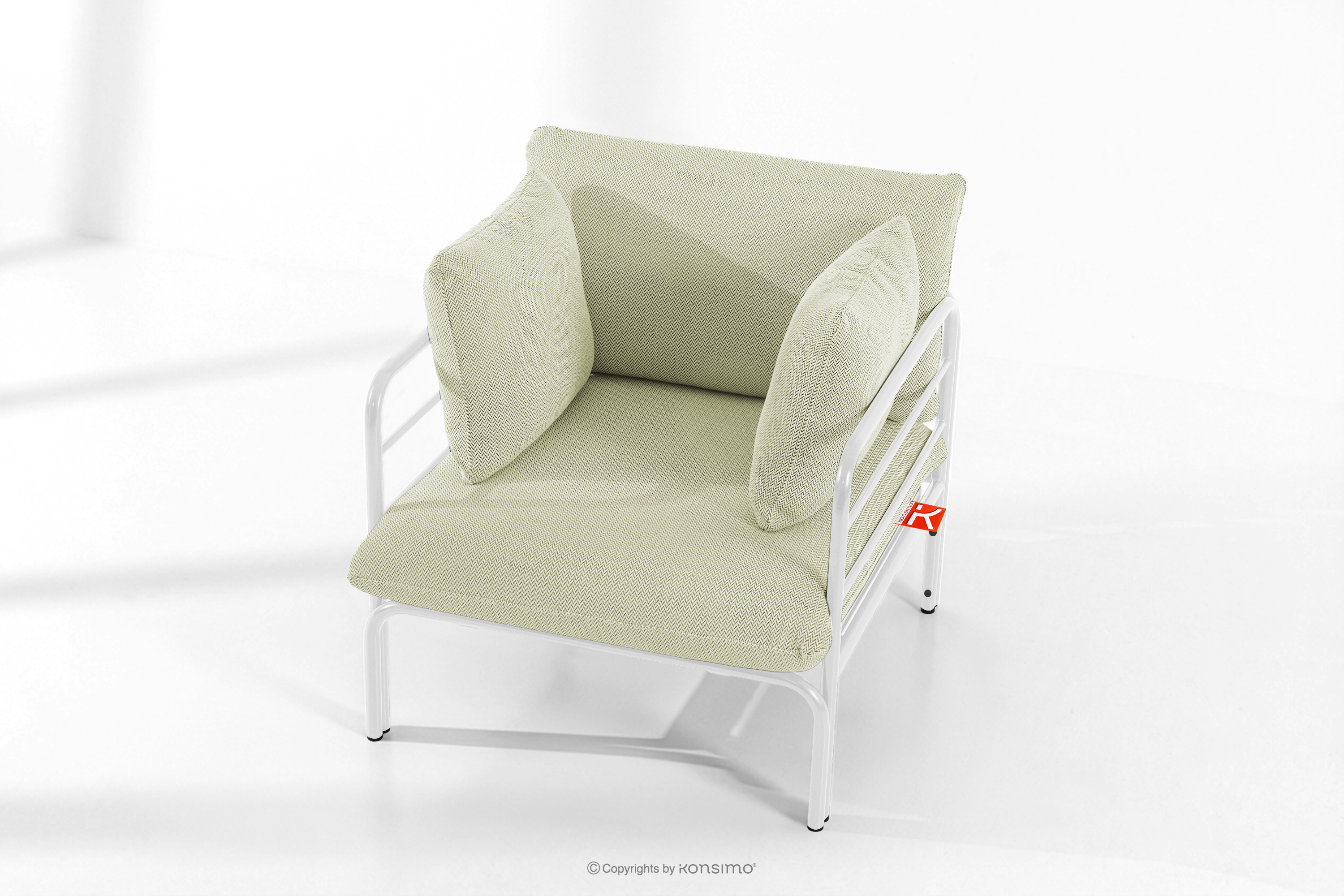 RAMBE Objav celú kolekciu Záhradný nábytok: 2 kreslá, trojmiestna pohovka, biely/svetlo zelený/biely stôl- farba biela/svetlo zelená/biela