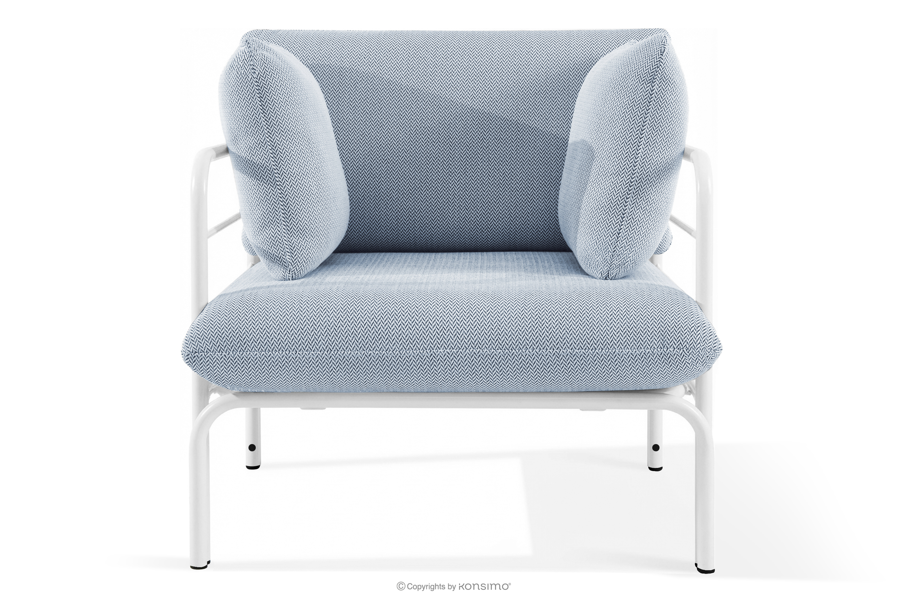 RAMBE Objav celú kolekciu Záhradný nábytok: 2 kreslá, trojmiestna pohovka, biely/svetlo modrý/biely stôl- farba biela/svetlo modrá/biela