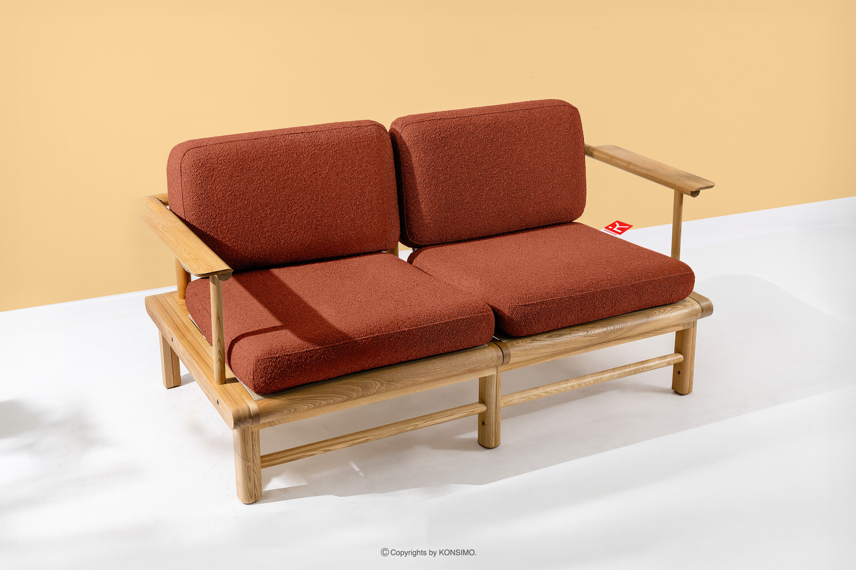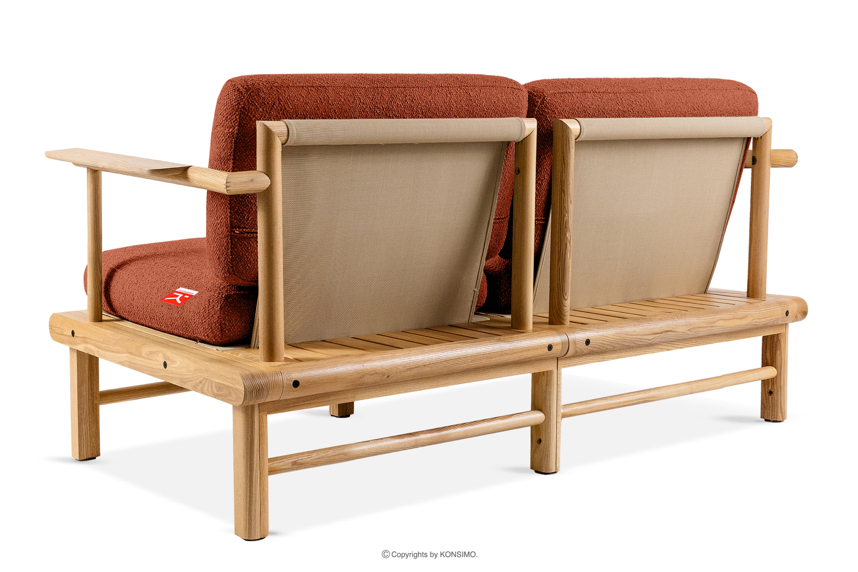 Záhradná pohovka z jaseňového dreva v boho štýle oranžovej farby je jedinečný výrobok, ktorý ozdobí váš priestor. Sedáky a operadlá sú vyplnené kvalitnou PU penou pre jedinečné pohodlie. Poťahová látka obsahujúca 93 % recyklovaného polypropylénu a 7 % polyesteru je nielen šetrná k životnému prostrediu, ale aj jednoduchá na údržbu - stačí ju utrieť vlhkou handričkou.