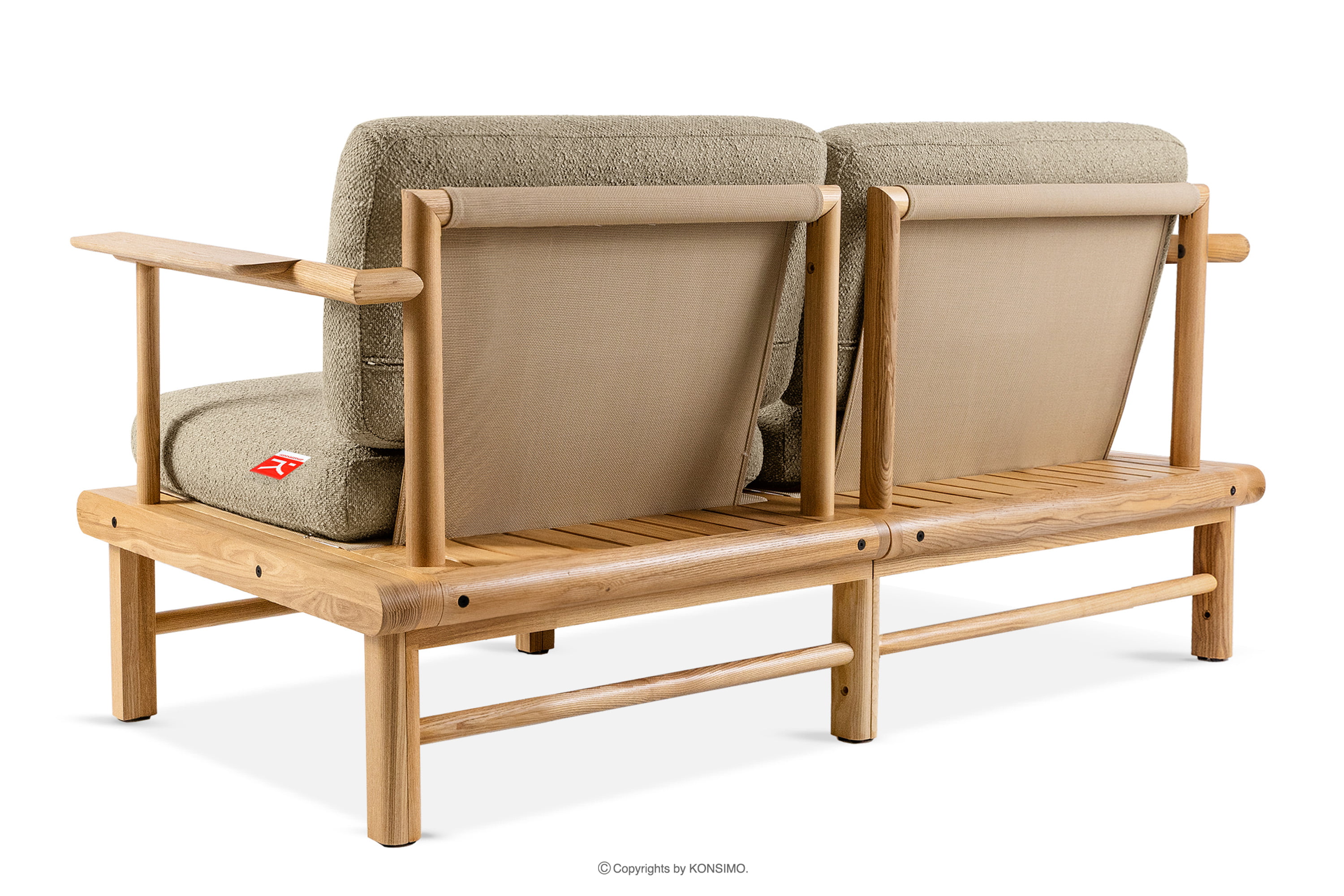 Záhradná pohovka z jaseňového dreva v béžovej farbe boho je jedinečný výrobok, ktorý ozdobí váš priestor. Vankúše sedadla a operadla sú vyplnené vysokokvalitnou PU penou pre jedinečné pohodlie. Poťahová látka obsahujúca 93 % recyklovaného polypropylénu a 7 % polyesteru je nielen šetrná k životnému prostrediu, ale aj jednoduchá na údržbu - stačí ju utrieť vlhkou handričkou.