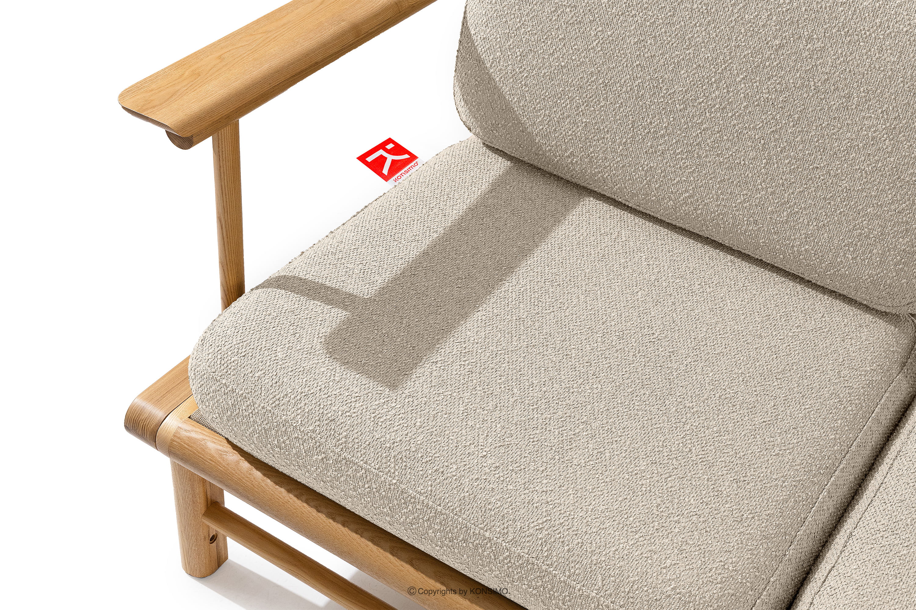 Záhradná pohovka 2 z masívneho krémového jaseňového dreva je jedinečný výrobok, ktorý ozdobí váš priestor. Vankúše sedadla a operadla sú vyplnené vysokokvalitnou PU penou pre jedinečné pohodlie. Poťahová látka obsahujúca 93 % recyklovaného polypropylénu a 7 % polyesteru je nielen šetrná k životnému prostrediu, ale aj jednoduchá na údržbu - stačí ju utrieť vlhkou handričkou.