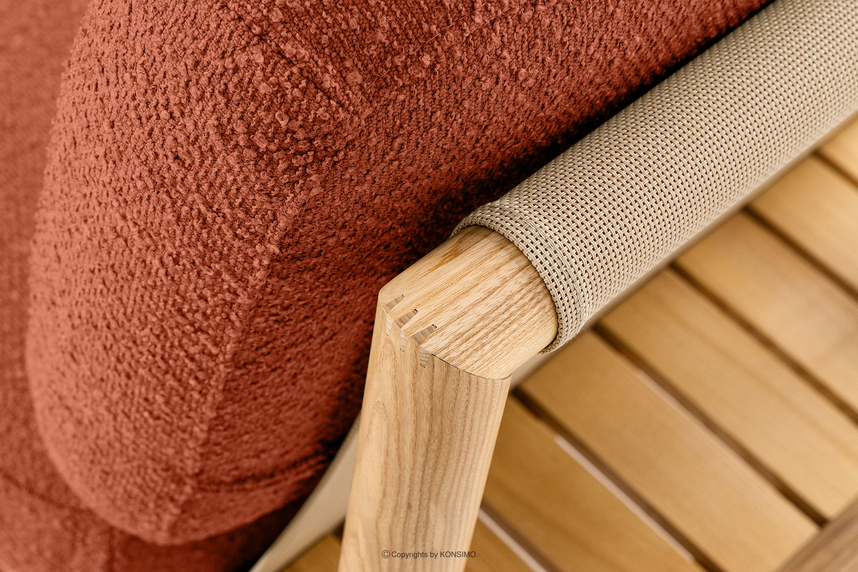 Záhradná pohovka 2 z masívneho jaseňového dreva oranžovej farby je jedinečný výrobok, ktorý ozdobí váš priestor. Vankúše sedadla a operadla sú vyplnené vysokokvalitnou PU penou pre jedinečné pohodlie. Poťahová látka obsahujúca 93 % recyklovaného polypropylénu a 7 % polyesteru je nielen šetrná k životnému prostrediu, ale aj jednoduchá na údržbu - stačí ju utrieť vlhkou handričkou.