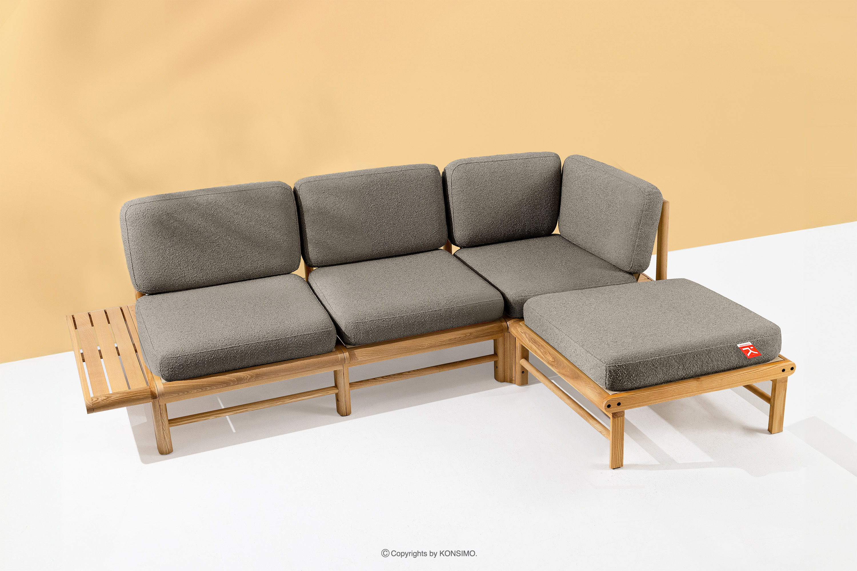 Drevený záhradný roh sivý/prírodný jaseň pravý je jedinečný výrobok, ktorý ozdobí váš priestor. Sedáky a operadlá sú vyplnené vysokokvalitnou PU penou pre jedinečné pohodlie. Poťahová látka obsahujúca 93 % recyklovaného polypropylénu a 7 % polyesteru je nielen šetrná k životnému prostrediu, ale aj jednoduchá na údržbu - stačí ju utrieť vlhkou handričkou.