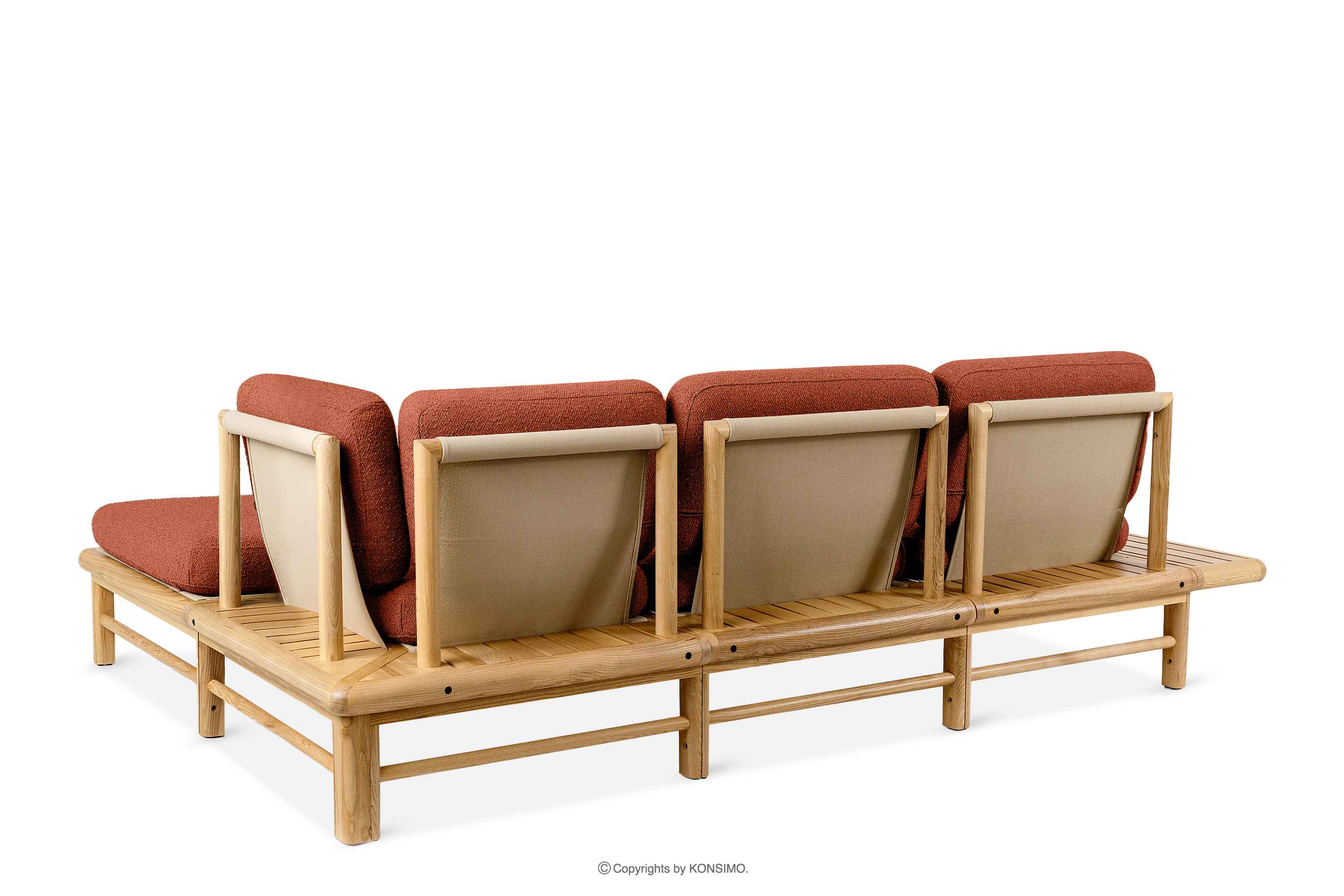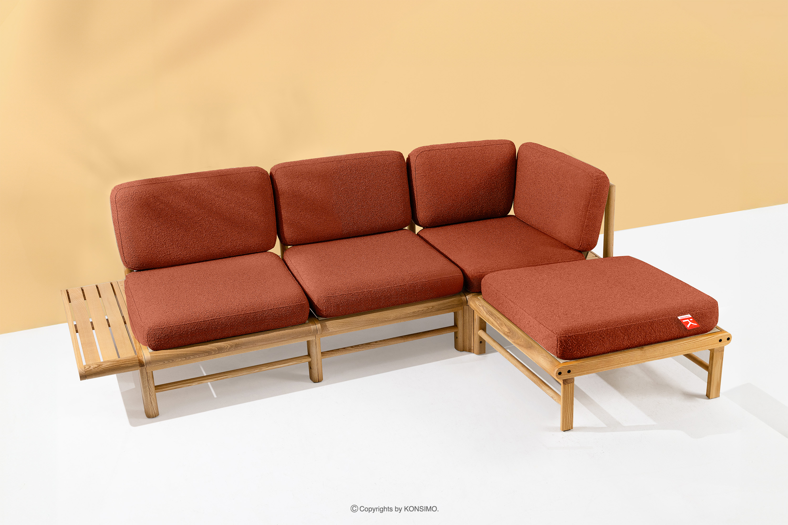 Drevený záhradný roh oranžový/prírodný jaseň pravý je jedinečný výrobok, ktorý ozdobí váš priestor. Sedáky a operadlá sú vyplnené kvalitnou PU penou pre jedinečné pohodlie. Poťahová látka obsahujúca 93 % recyklovaného polypropylénu a 7 % polyesteru je nielen šetrná k životnému prostrediu, ale aj jednoduchá na údržbu - stačí ju utrieť vlhkou handričkou.
