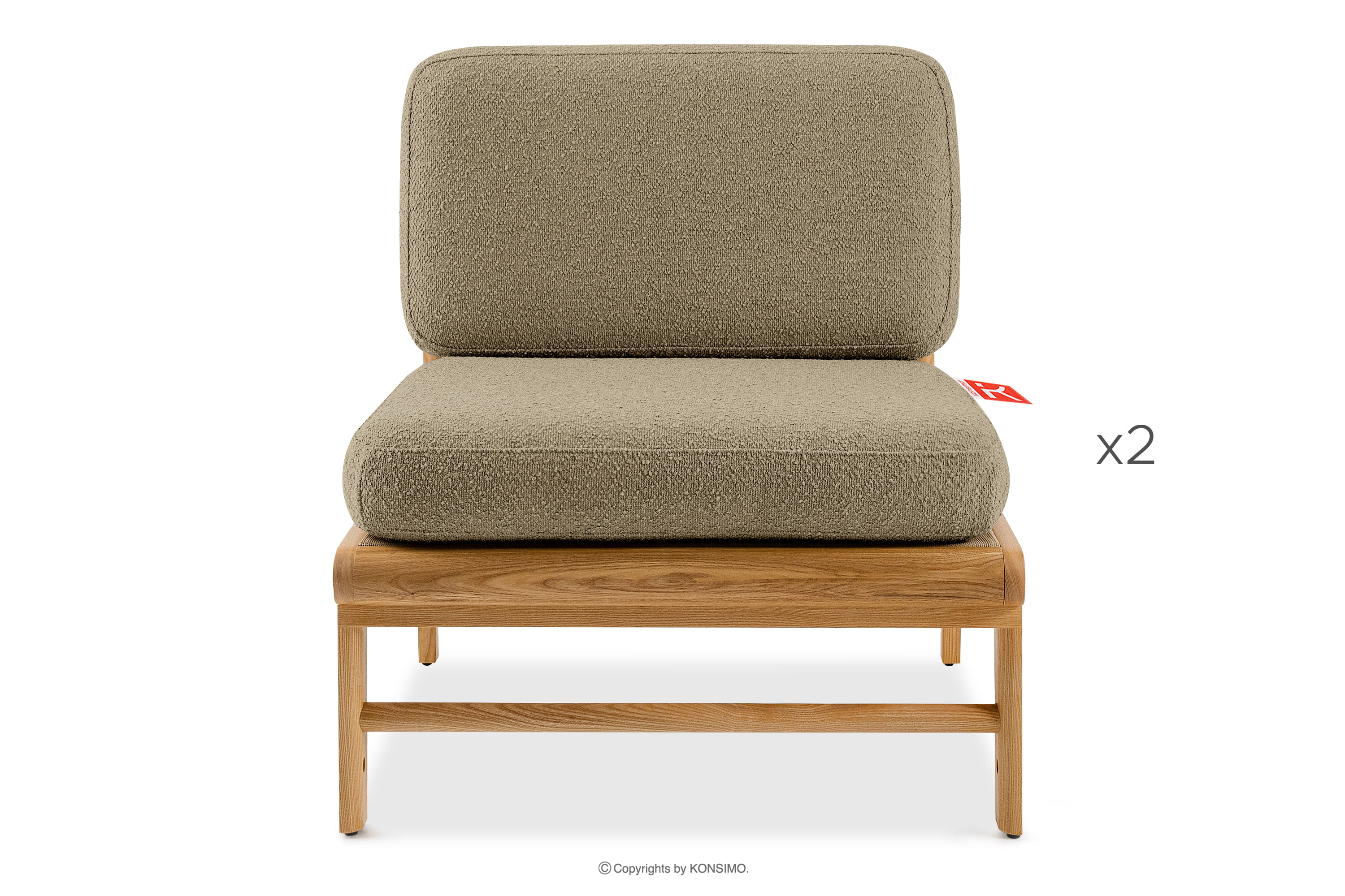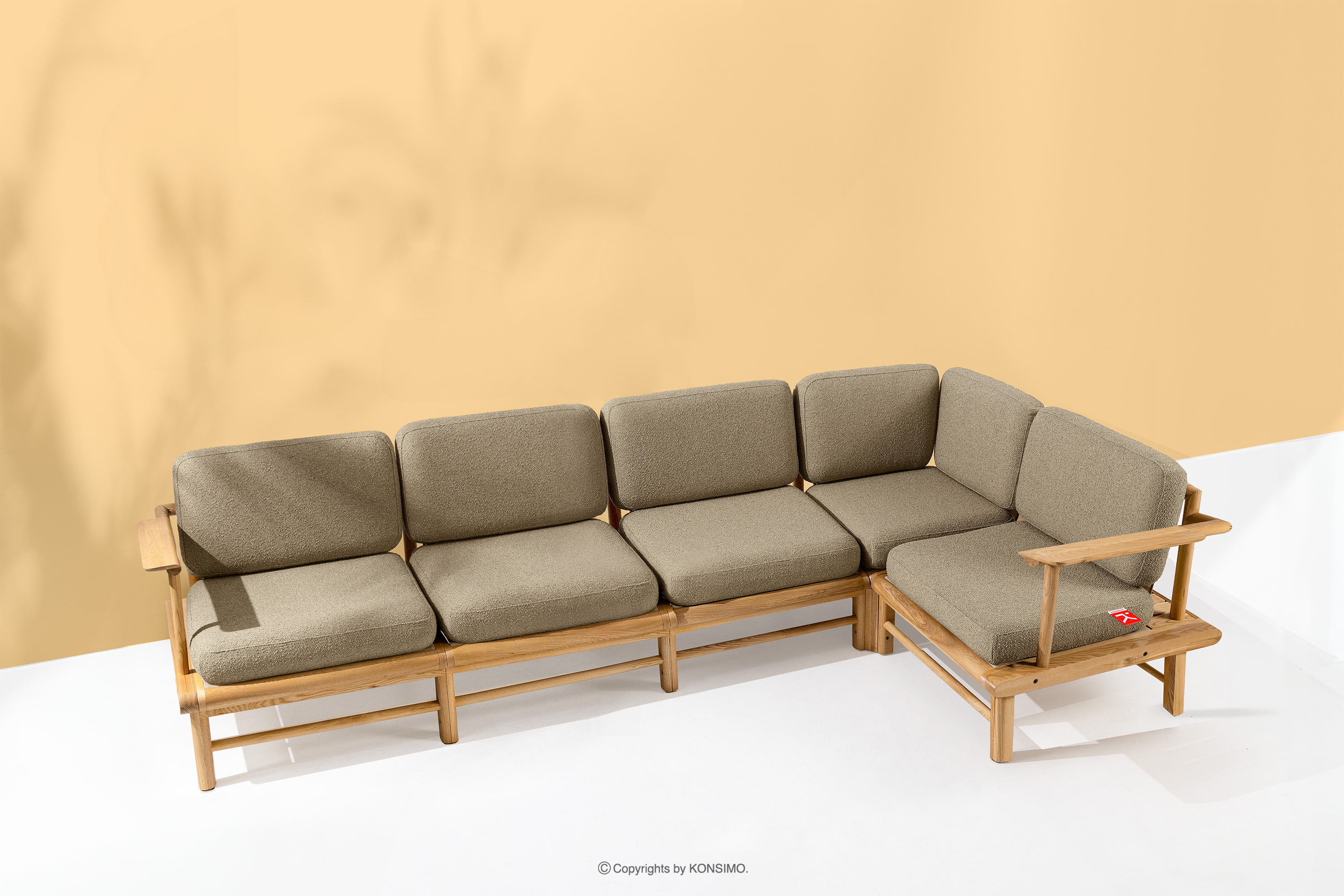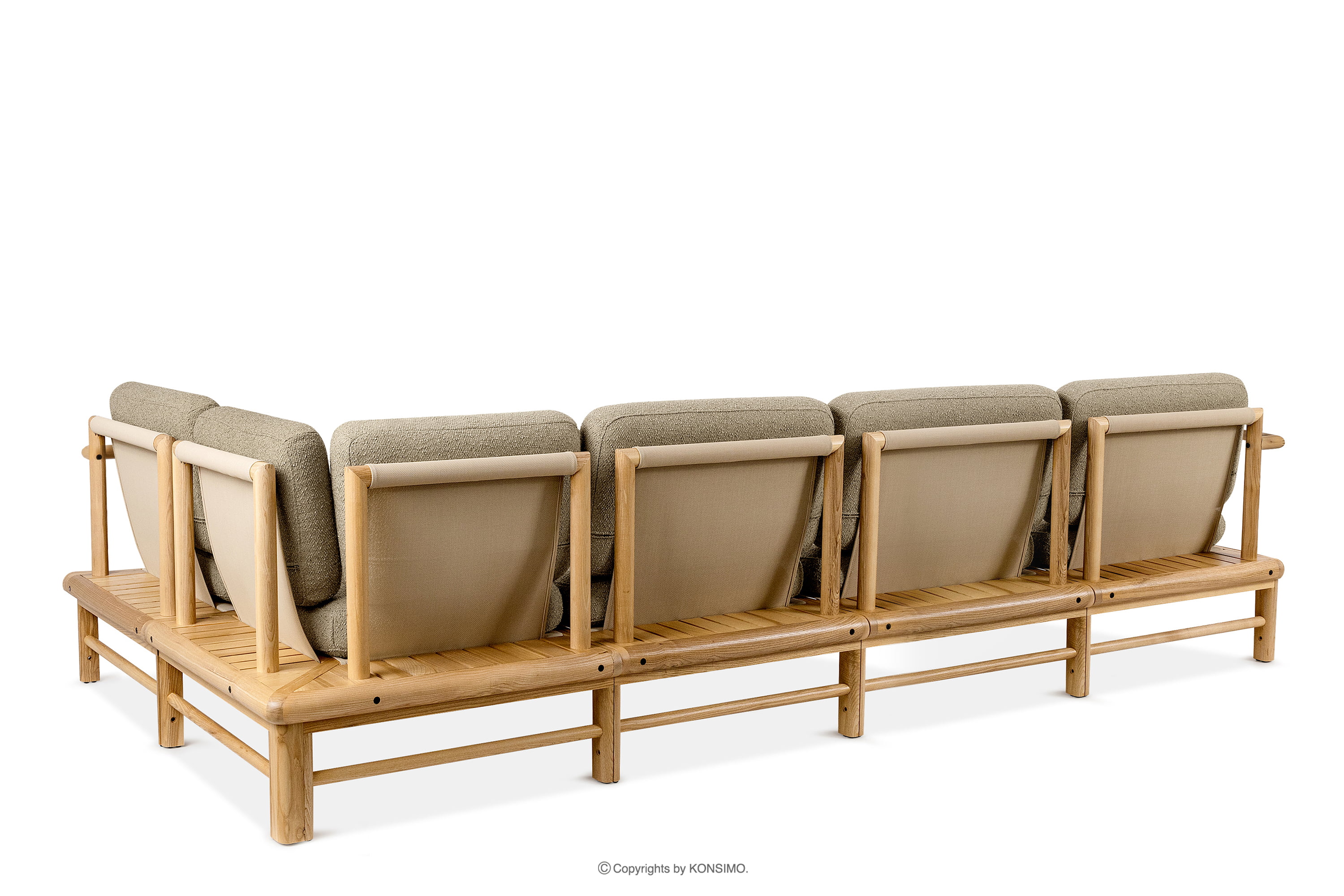 Drevený béžový záhradný kútik Boho Right je jedinečný výrobok, ktorý ozdobí váš priestor. Sedáky a operadlá sú vyplnené vysokokvalitnou PU penou pre jedinečné pohodlie. Poťahová látka obsahujúca 93 % recyklovaného polypropylénu a 7 % polyesteru je nielen šetrná k životnému prostrediu, ale aj jednoduchá na údržbu - stačí ju utrieť vlhkou handričkou.