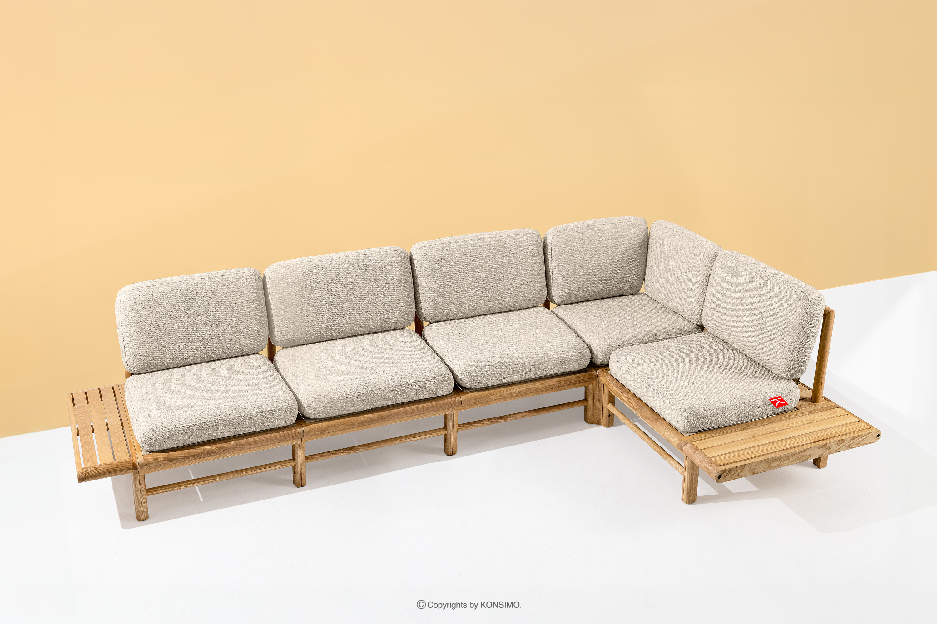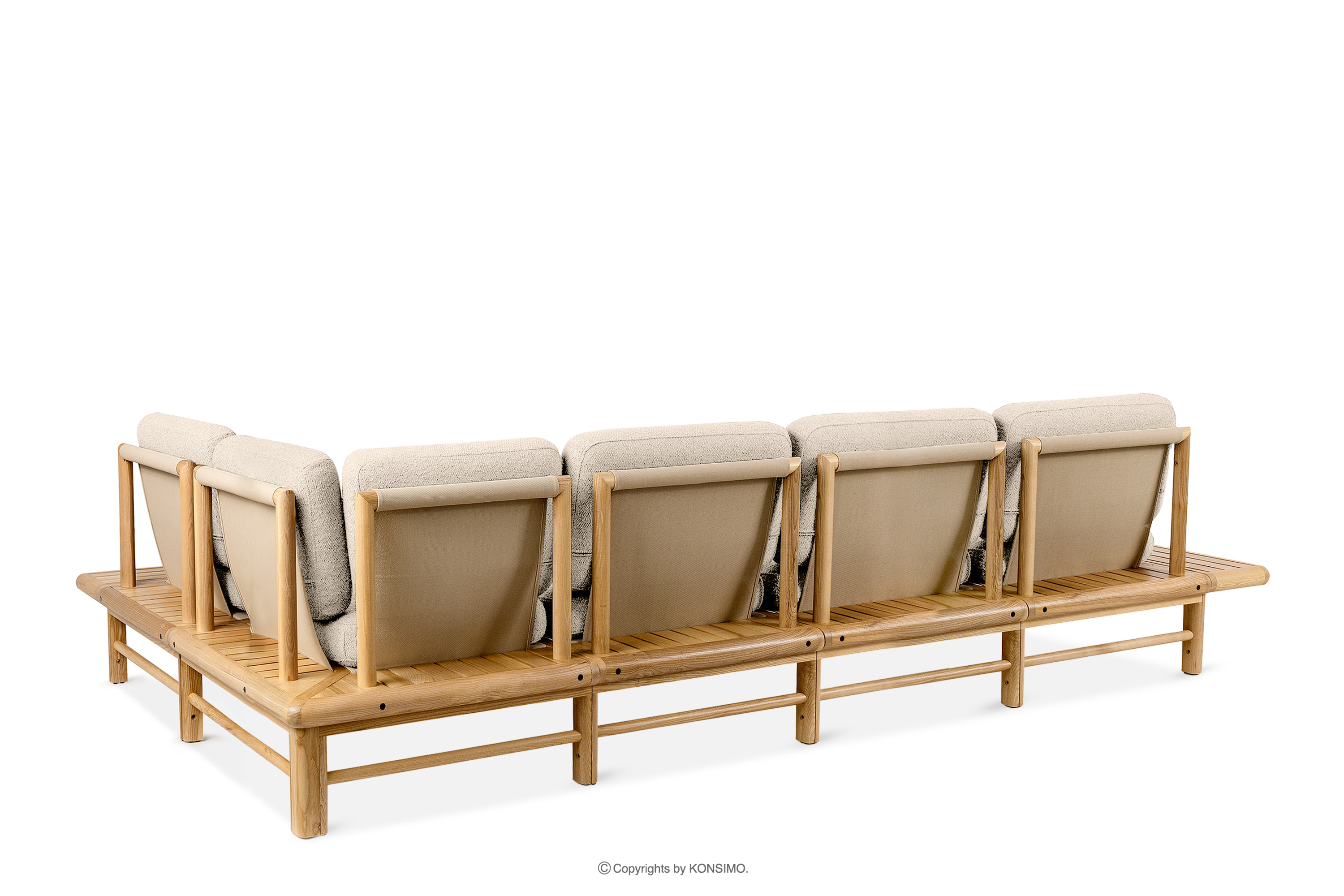 Záhradný rohový kút boho pravý krémový/prírodný jaseň pravý je jedinečný výrobok, ktorý ozdobí váš priestor. Sedáky a operadlá sú vyplnené kvalitnou PU penou pre jedinečné pohodlie. Poťahová látka obsahujúca 93 % recyklovaného polypropylénu a 7 % polyesteru je nielen šetrná k životnému prostrediu, ale aj jednoduchá na údržbu - stačí ju utrieť vlhkou handričkou.