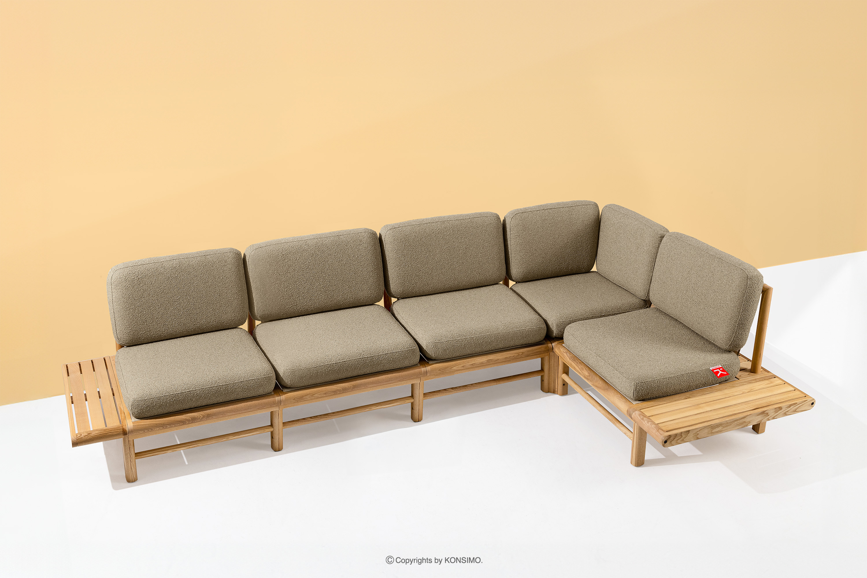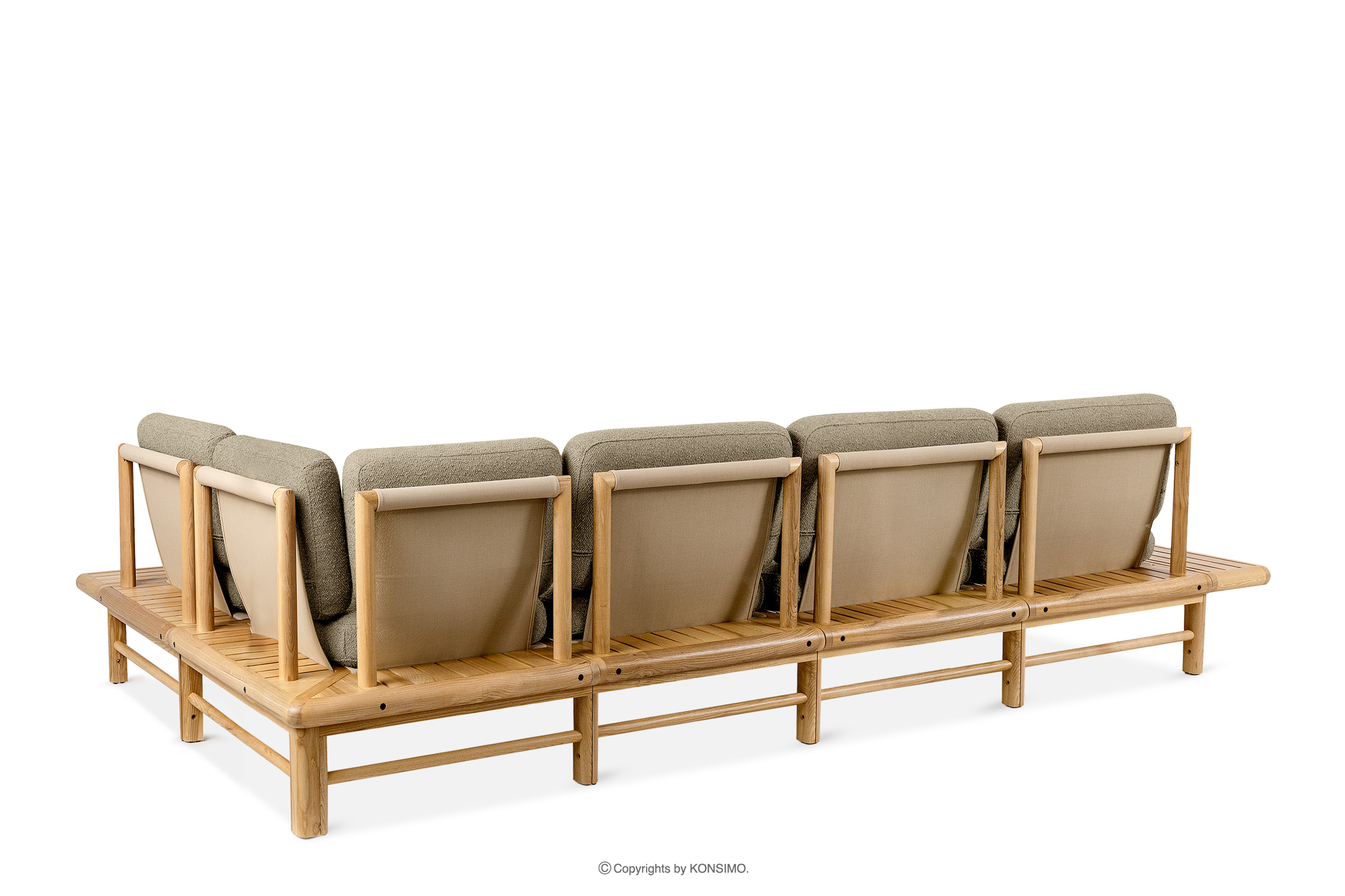 Boho záhradný rohový pravý béžový/prírodný jaseň pravý je jedinečný výrobok, ktorý ozdobí váš priestor. Sedáky a operadlá sú vyplnené vysokokvalitnou PU penou pre jedinečné pohodlie. Poťahová látka obsahujúca 93 % recyklovaného polypropylénu a 7 % polyesteru je nielen šetrná k životnému prostrediu, ale aj jednoduchá na údržbu - stačí ju utrieť vlhkou handričkou.
