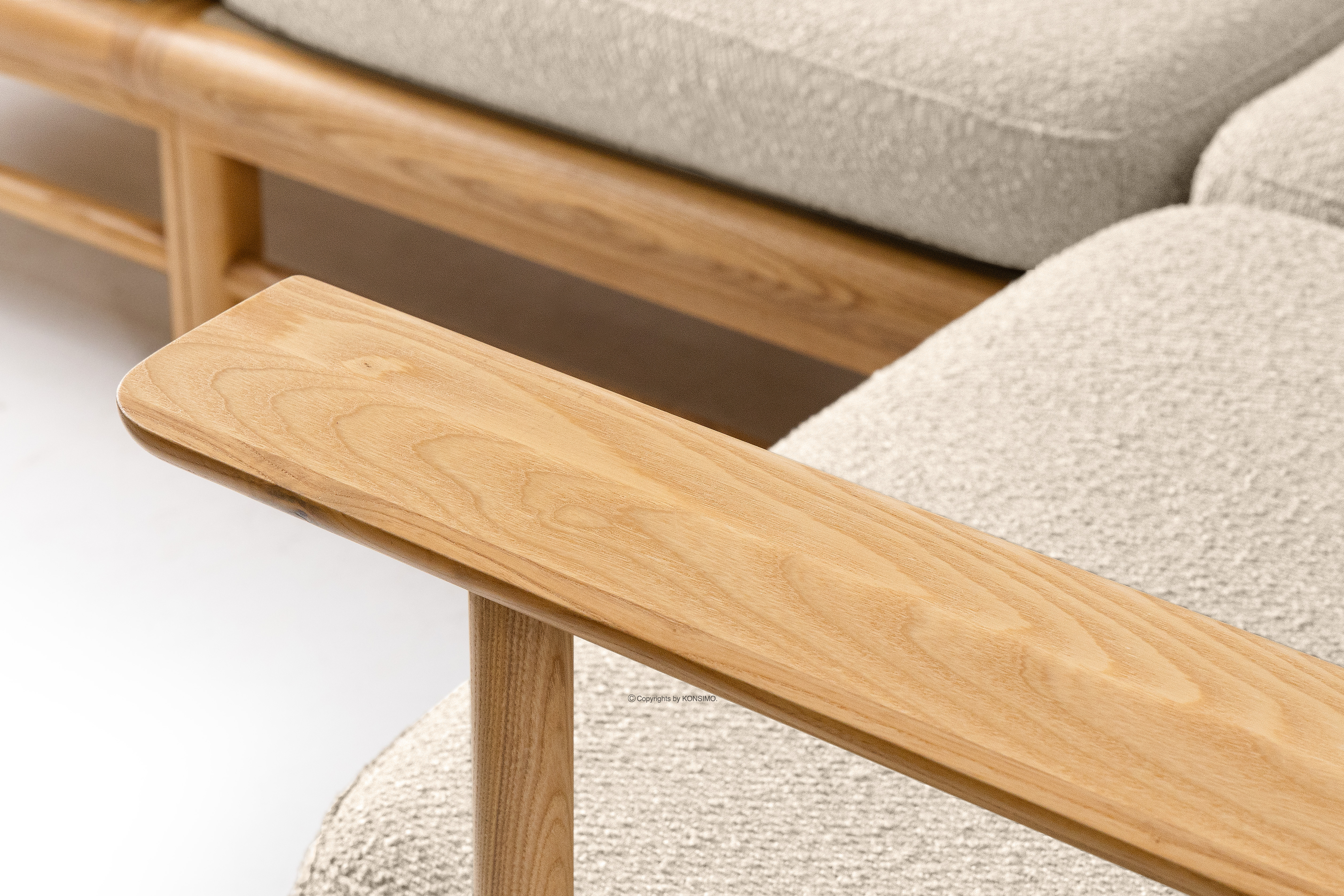 Je vyrobený z masívneho jaseňového dreva a spája v sebe prirodzenú krásu s mimoriadnou odolnosťou. Vďaka pevnej konštrukcii a starostlivo vybraným materiálom je náš nábytok nielen estetický, ale aj veľmi odolný. Vďaka použitiu ekologického oleja na báze vody je drevo účinne chránené proti hubám a plesniam, čo ešte viac predlžuje jeho životnosť. Masívne jaseňové drevo, PU pena a recyklované textílie vytvárajú nábytok, ktorý je krásny a zároveň šetrný k životnému prostrediu.