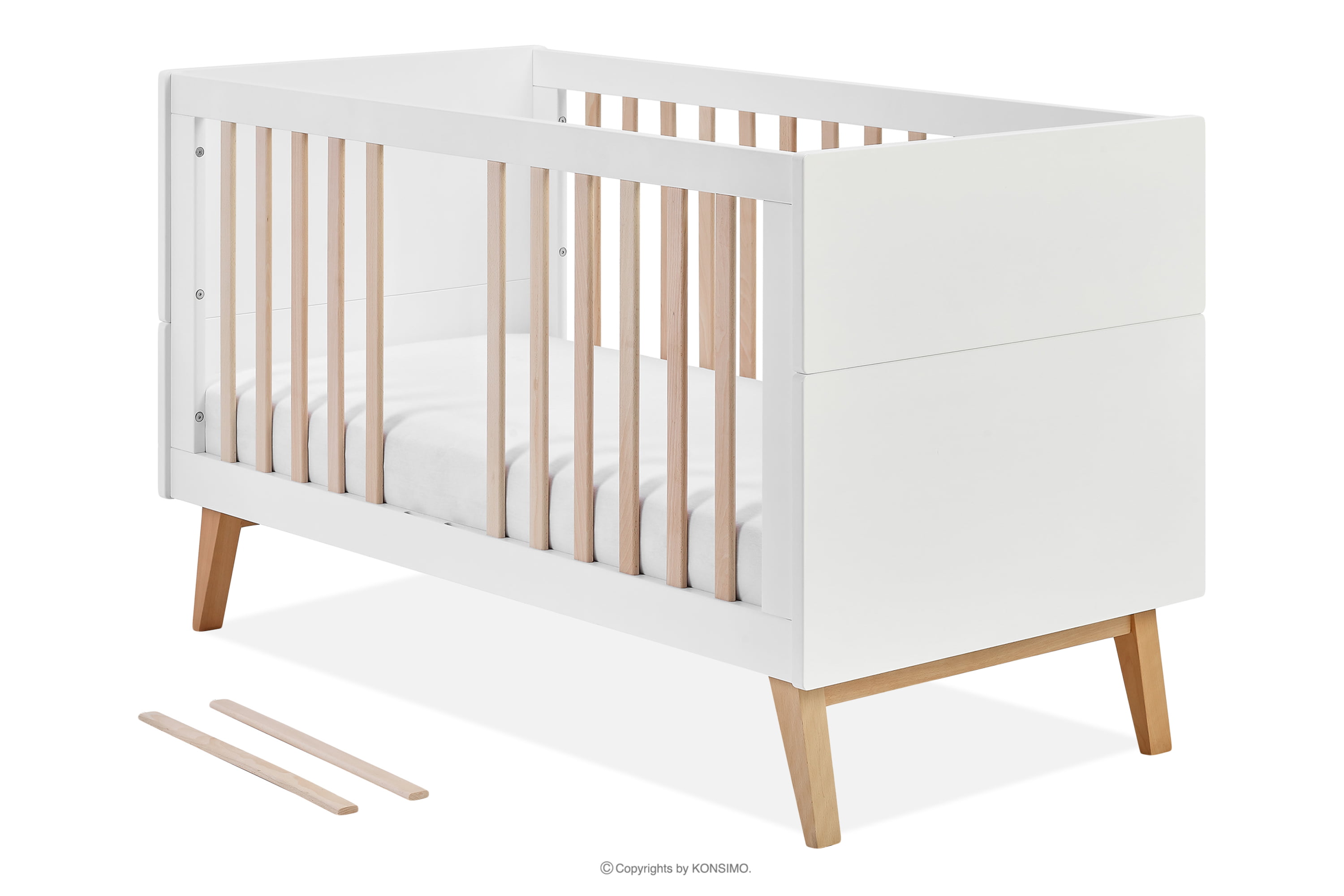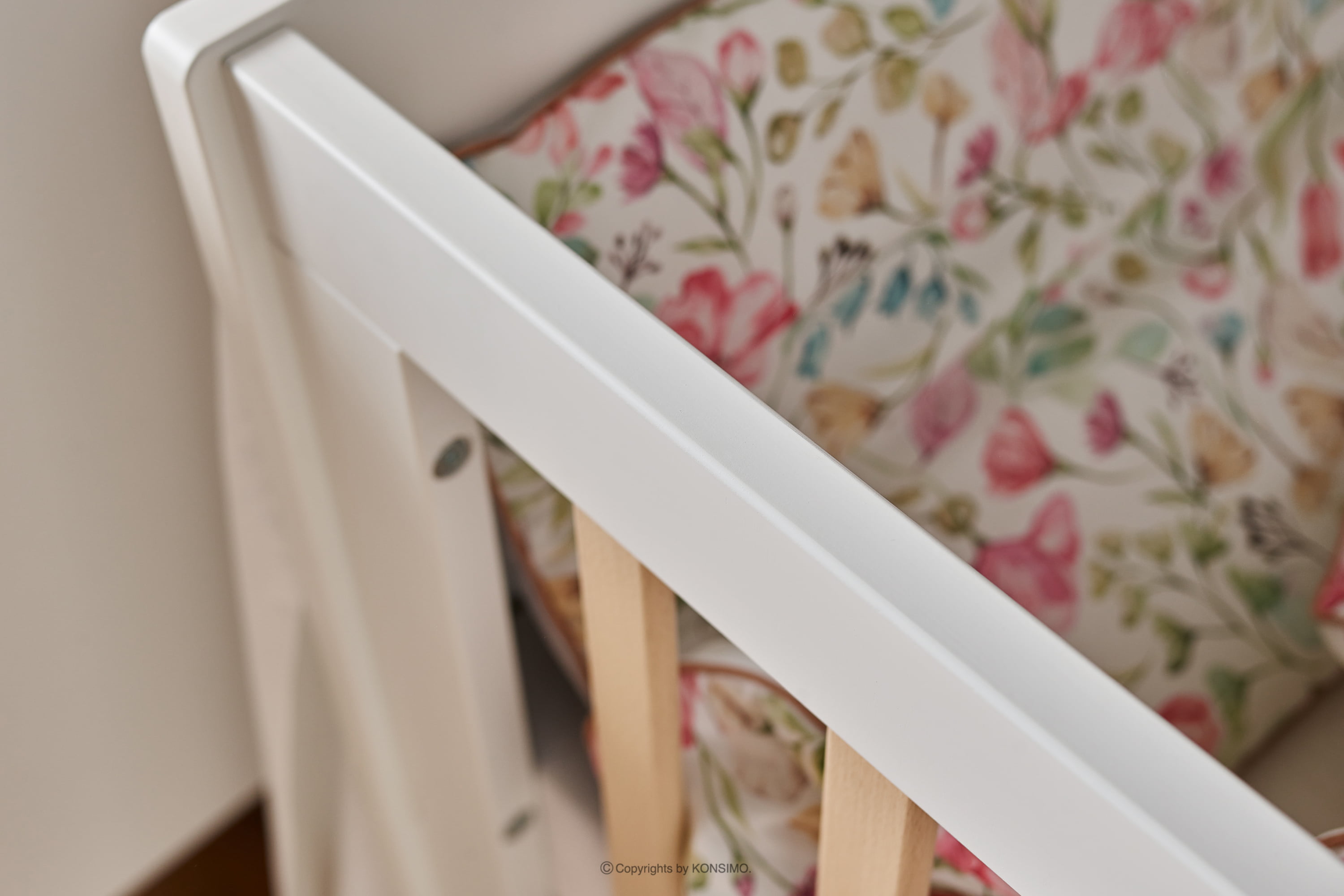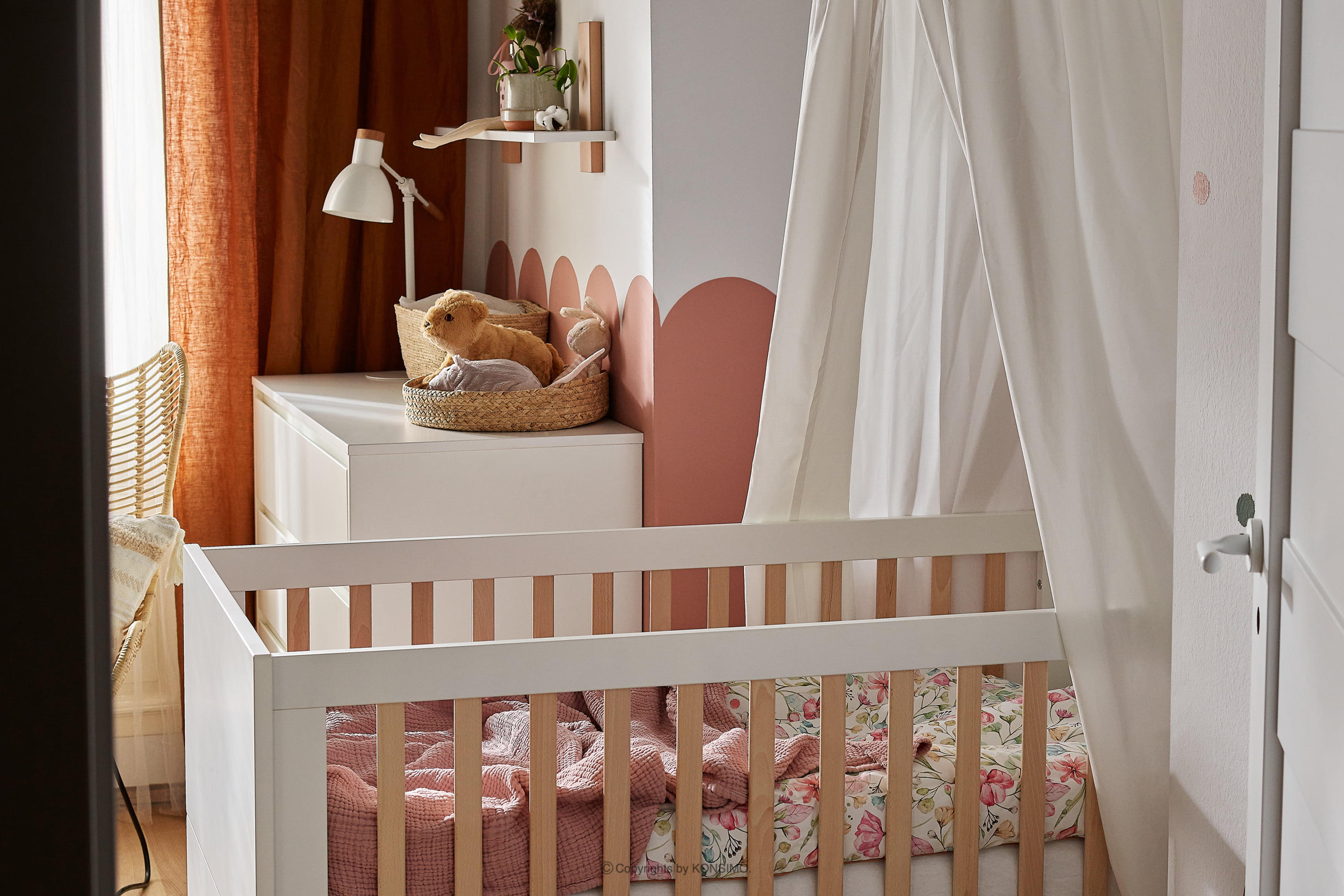 Detská posteľ je vybavená tromi úrovňami výšky matraca, čo umožňuje prispôsobiť ju vývoju a potrebám vášho dieťaťa. Tri výsuvné priečky navyše uľahčujú bezproblémové vstávanie a zostupovanie dieťaťa a ešte viac uľahčujú starostlivosť o vaše dieťatko. Jedinečná možnosť odstránenia horného krytu vám navyše umožní prispôsobiť posteľ meniacim sa potrebám a preferenciám vášho dieťaťa.