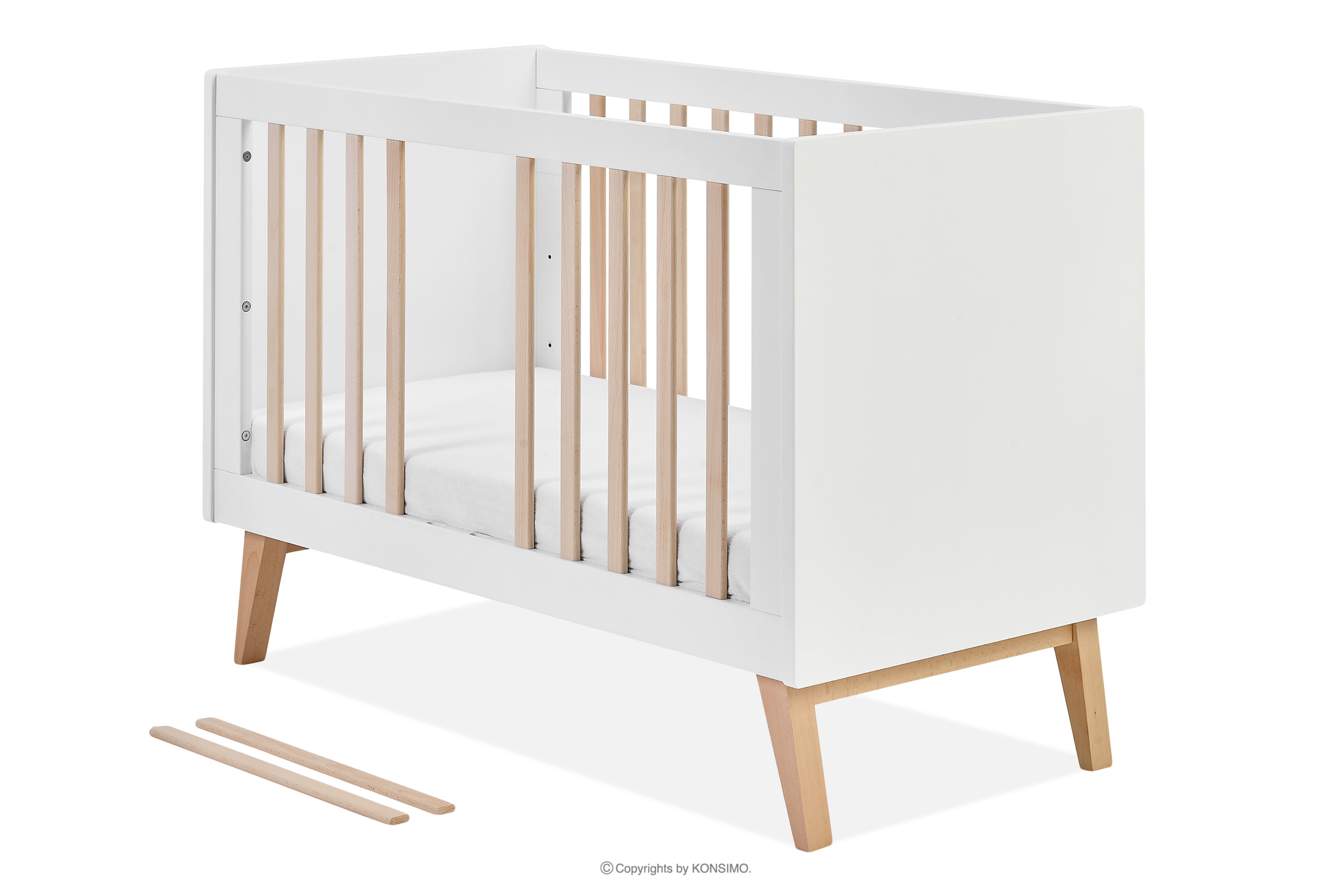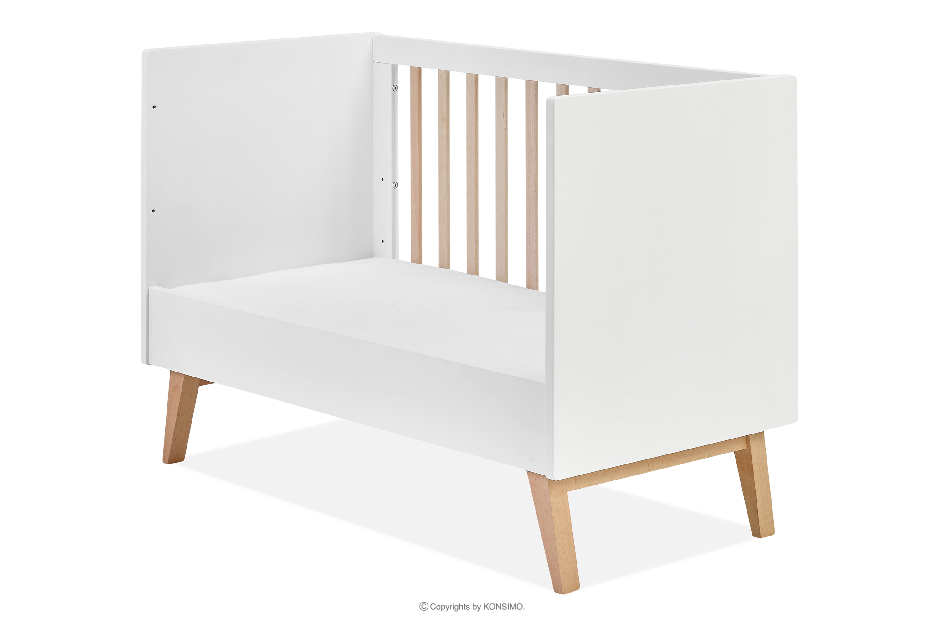 Detská posteľ je vybavená tromi výškovými úrovňami matraca, čo umožňuje prispôsobiť ho vývoju a potrebám dieťaťa. Tri výsuvné priečky navyše uľahčujú bezproblémové vstávanie a zostupovanie vášho dieťaťa a ešte viac uľahčujú starostlivosť o vaše dieťatko. Jedinečná možnosť odstránenia horného krytu vám navyše umožní prispôsobiť posteľ meniacim sa potrebám a preferenciám vášho dieťaťa.