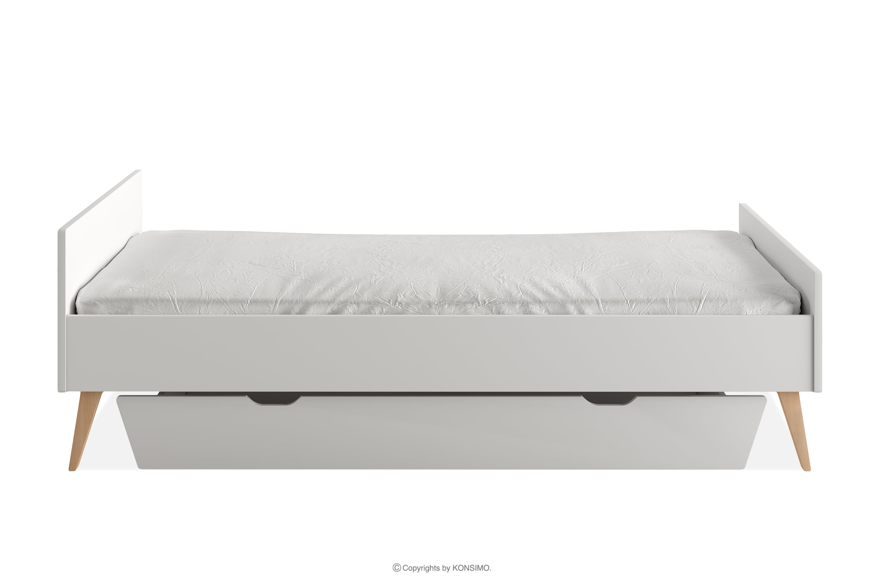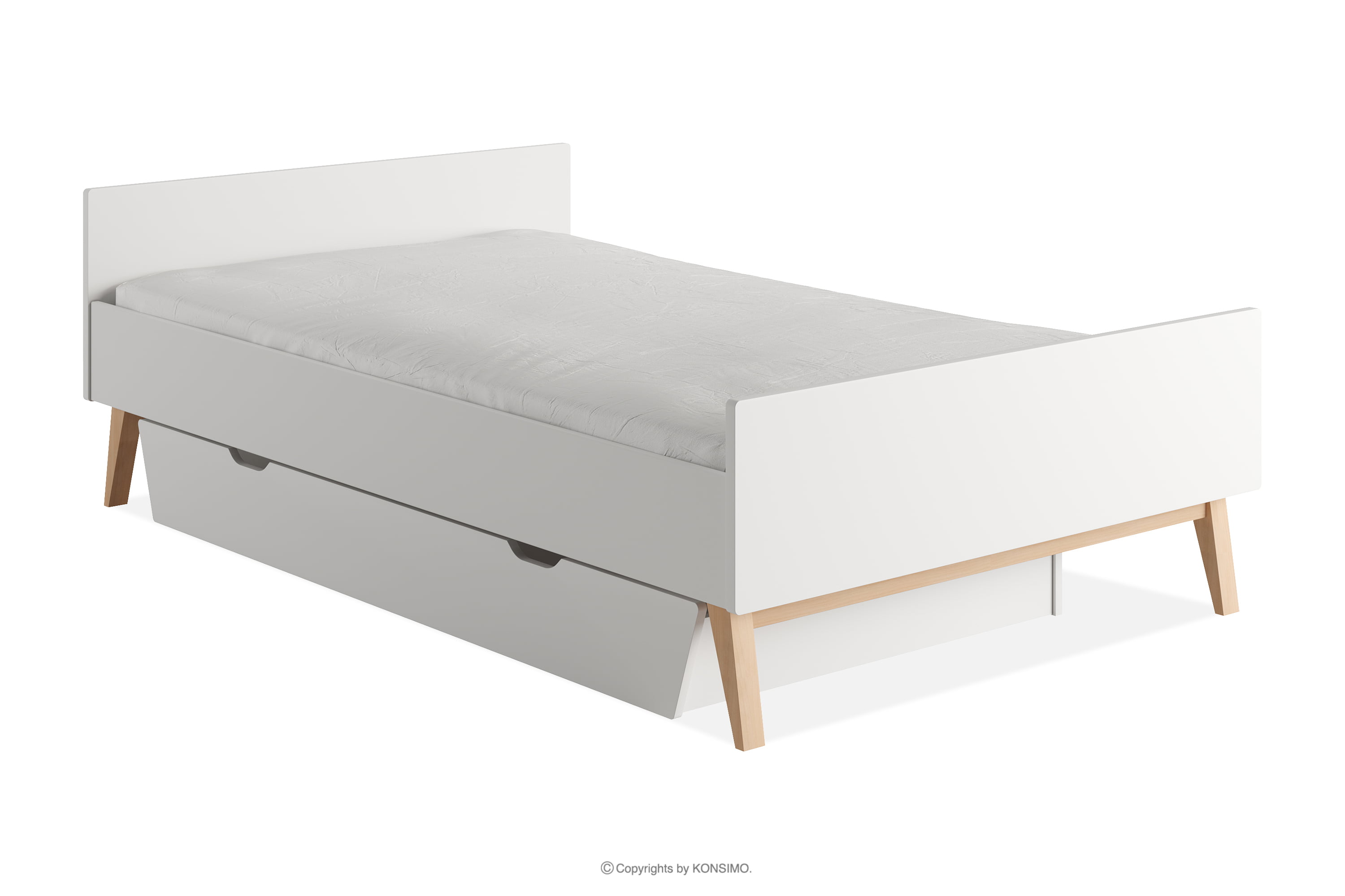 Detská posteľ je predovšetkým pohodlným miestom na odpočinok a spánok v detskej izbe. Korpus postele je vyrobený z odolnej MDF a laminovanej dosky, čo zaručuje pevnosť a odolnosť nábytku. Rám postele je vyrobený z borovicového dreva a nohy sú z masívneho bukového dreva, čo zaručuje stabilitu a pevnosť celej konštrukcie. Laminovaná doska je hladko dyhovaná, vďaka čomu je povrch postele hladký a ľahko sa udržiava v čistote.