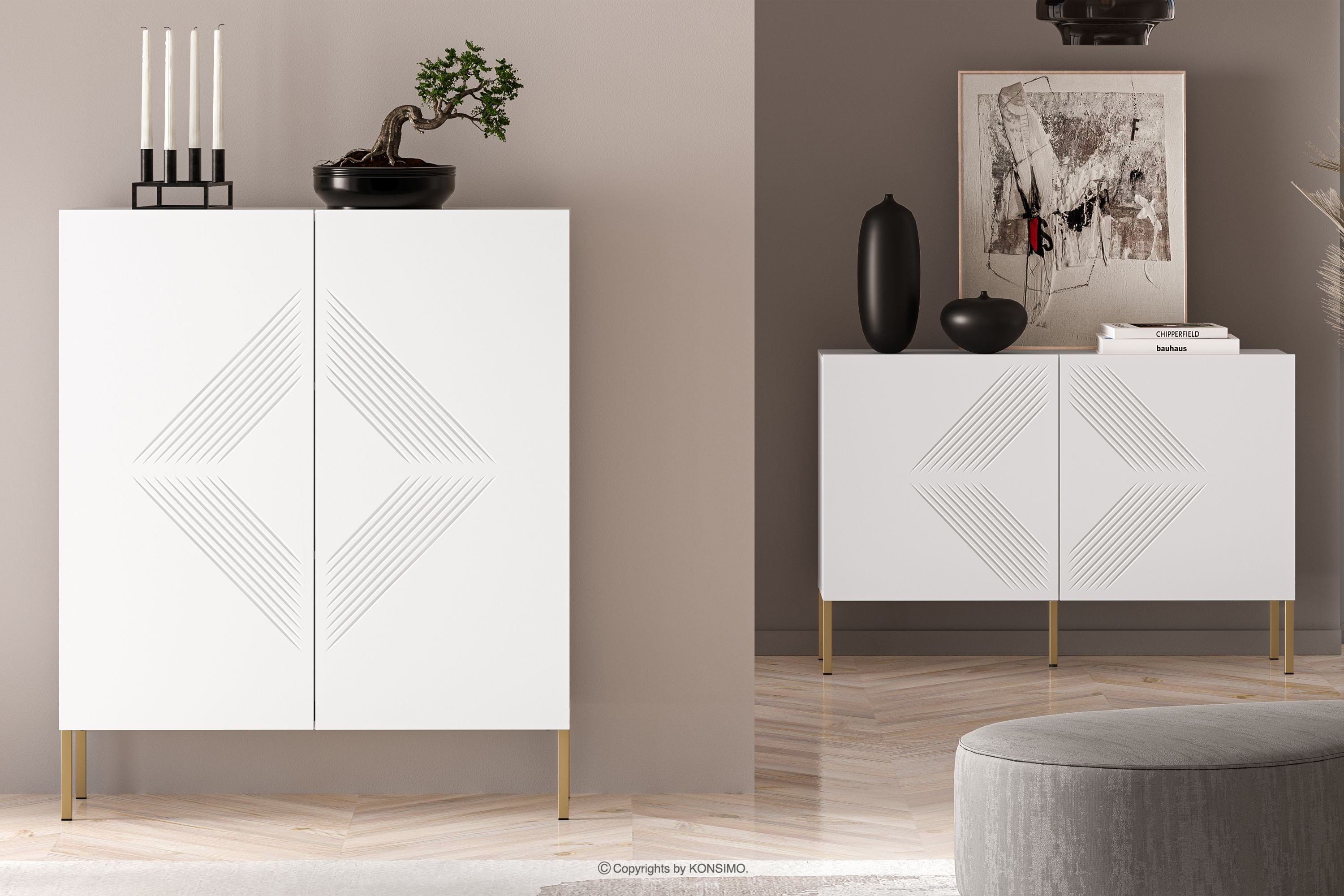 NEBRO Objav celú kolekciu Biela komoda na zlatých nožičkách- farba biela/zlatá