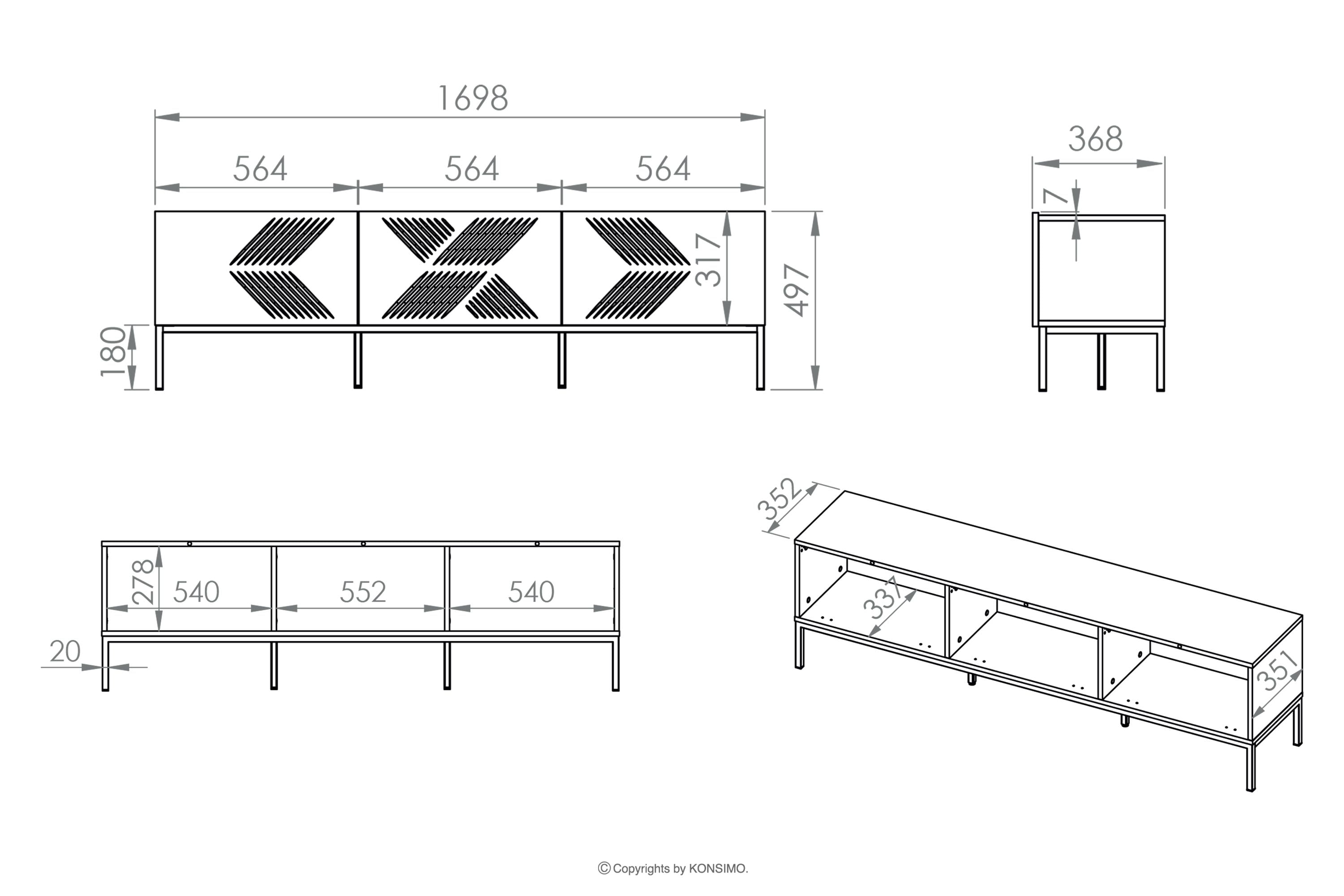 NEBRO Objav celú kolekciu RTV skrinka na čiernych elegantných nohách- farba biela/čierna